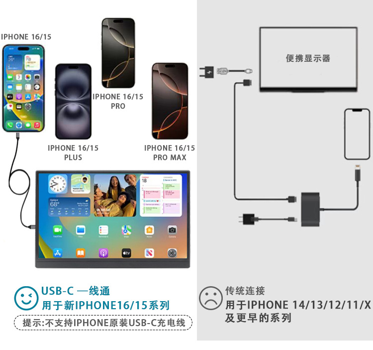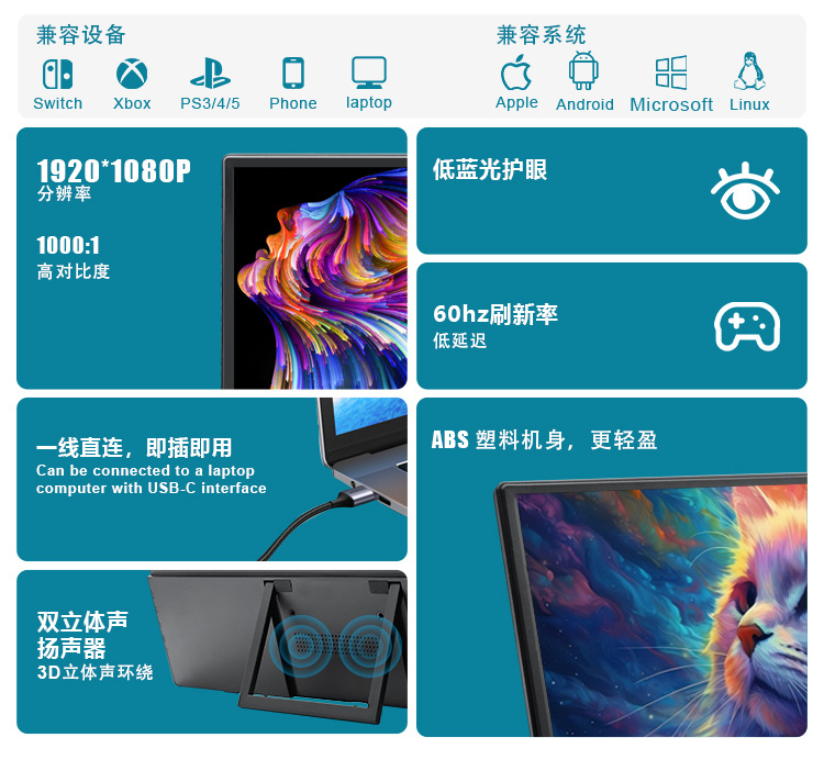 공장 재고 15.6 인치 HDMI 휴대용 모니터 휴대 전화 컴퓨터 노트북 PS4/스위치