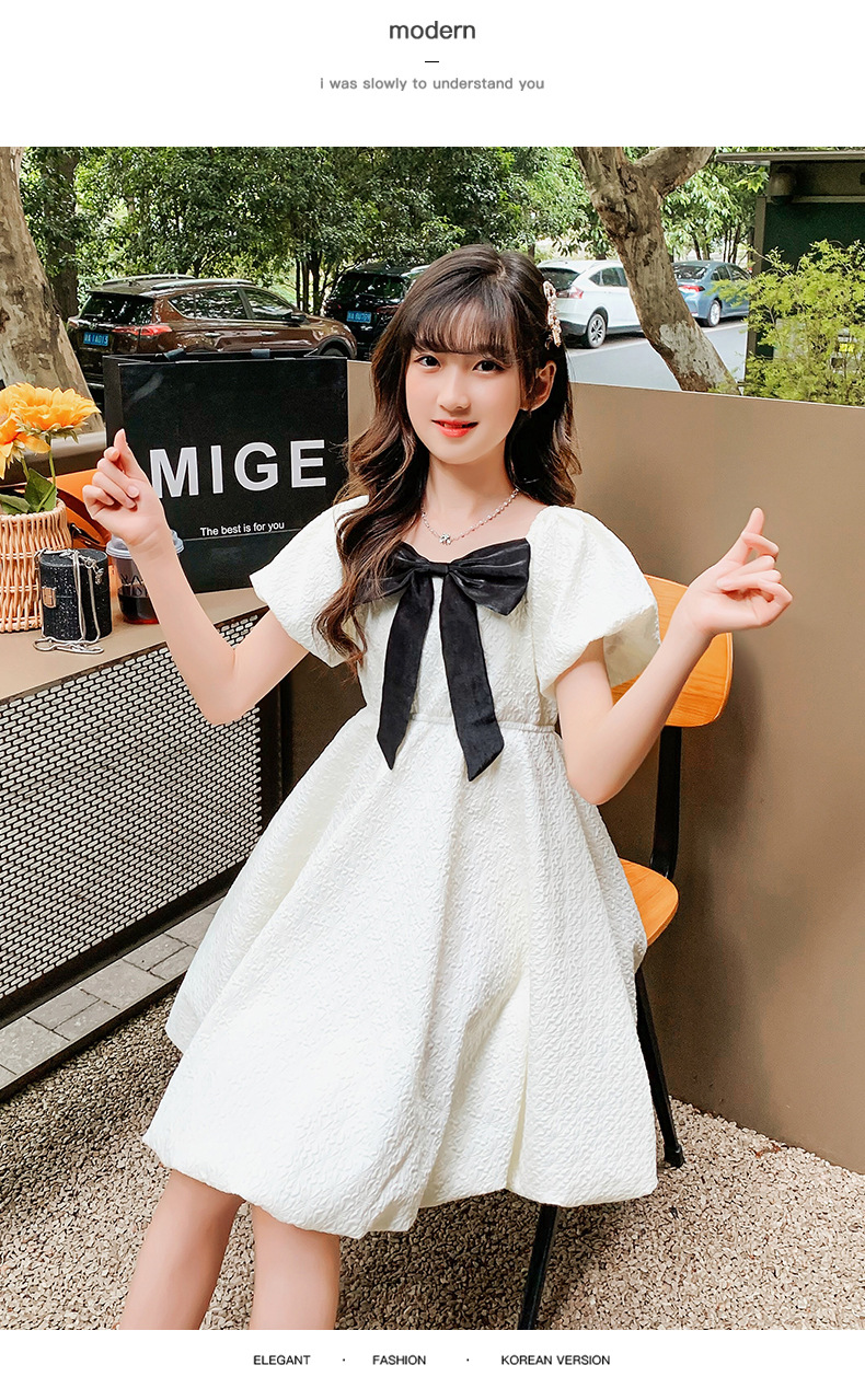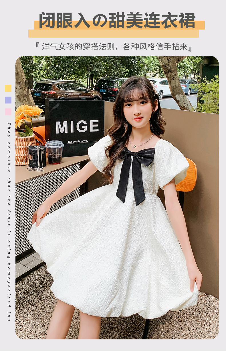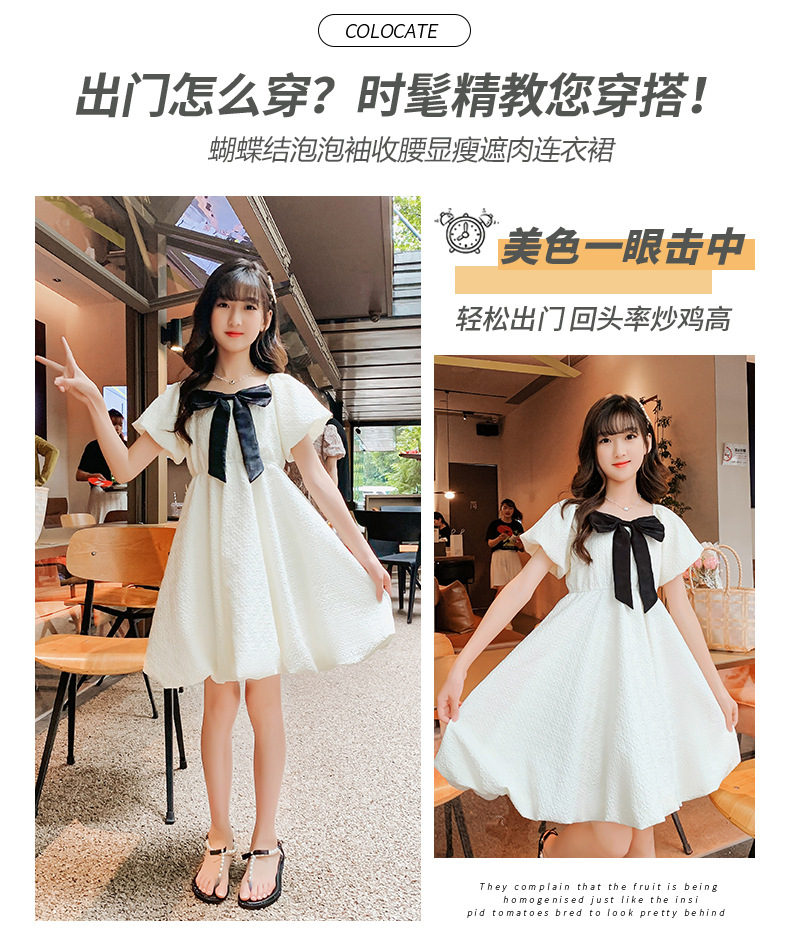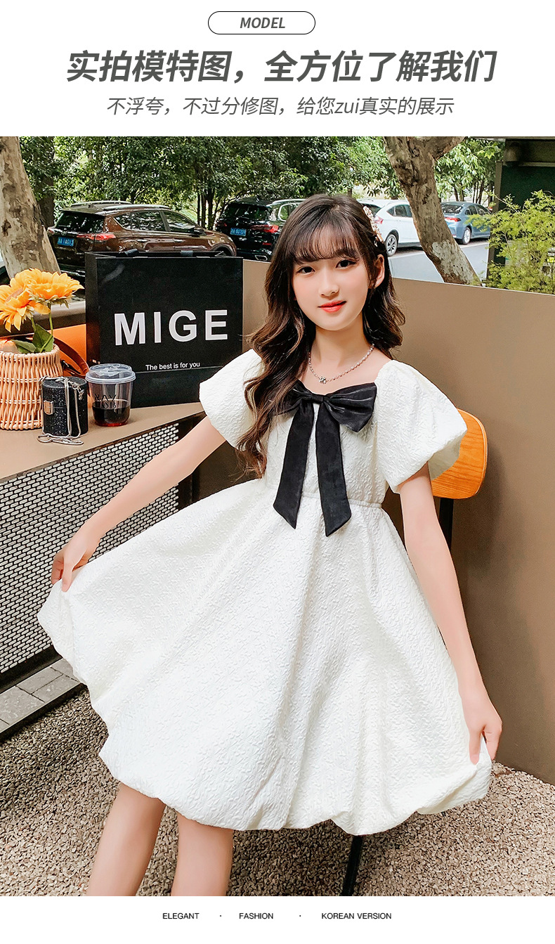 소녀 퍼프 슬리브 원피스 여름 얇은 큰 아이들 공주 스커트 2024 새로운 서양식 여름 원피스 어린이 치마스토어 가기