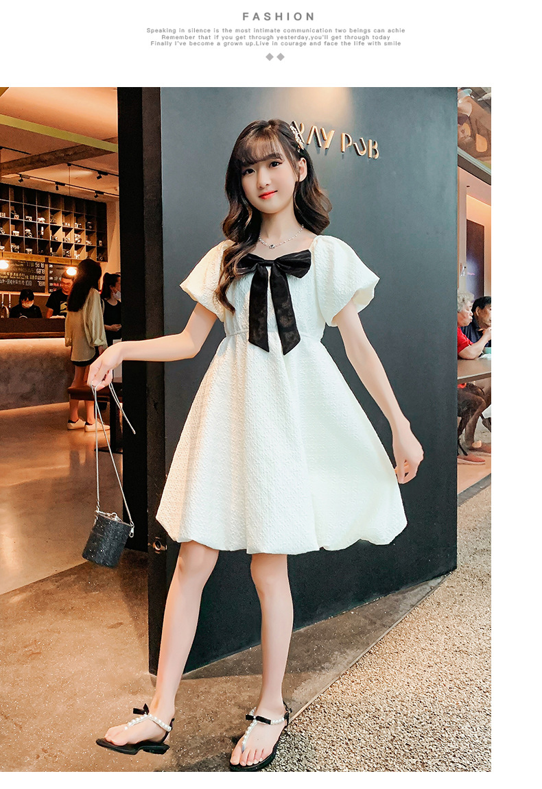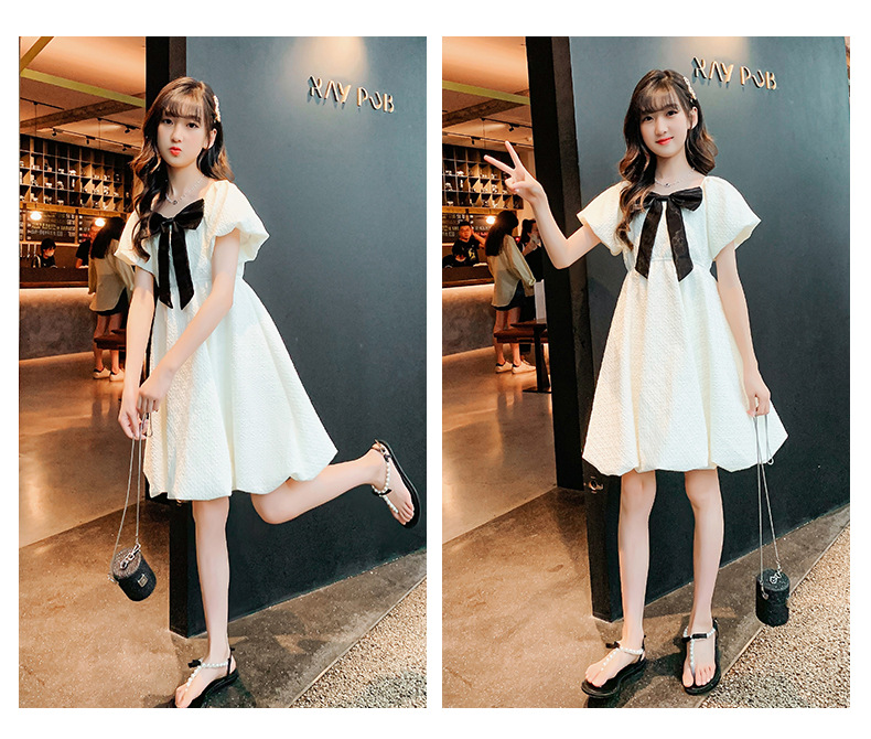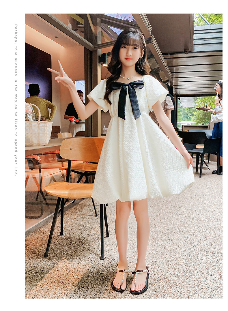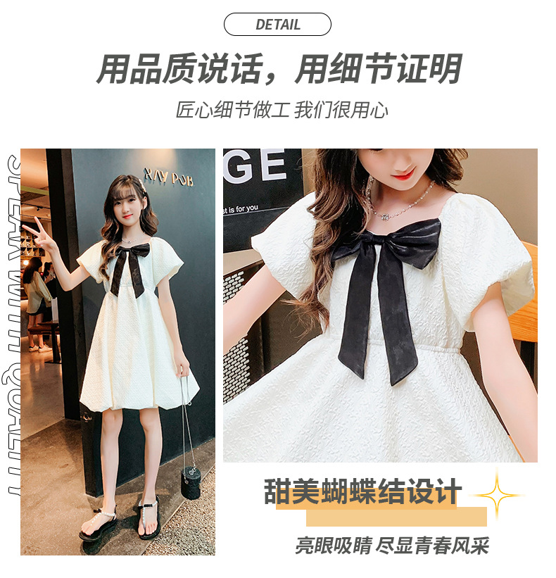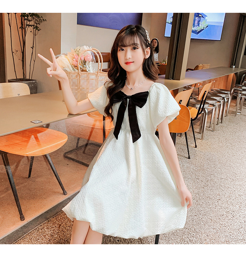소녀 퍼프 슬리브 원피스 여름 얇은 큰 아이들 공주 스커트 2024 새로운 서양식 여름 원피스 어린이 치마스토어 가기