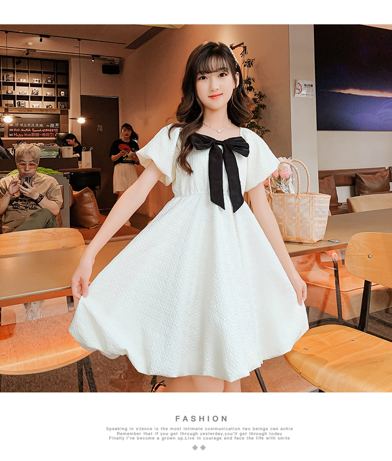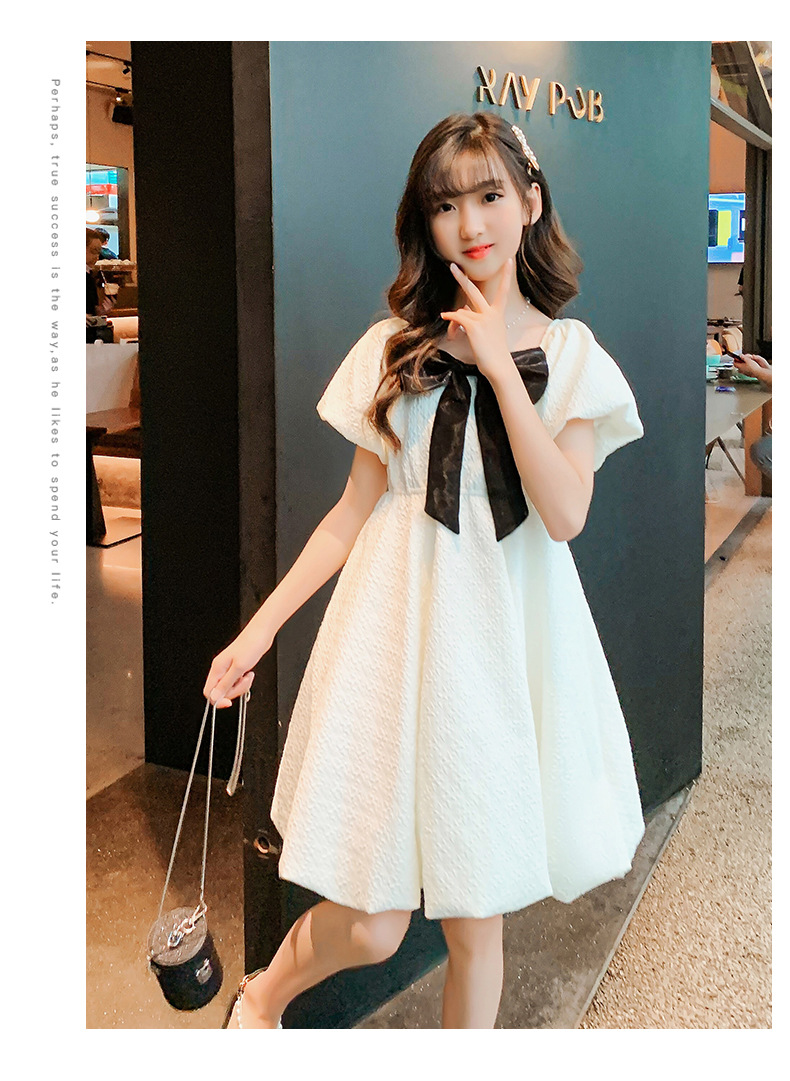 소녀 퍼프 슬리브 원피스 여름 얇은 큰 아이들 공주 스커트 2024 새로운 서양식 여름 원피스 어린이 치마