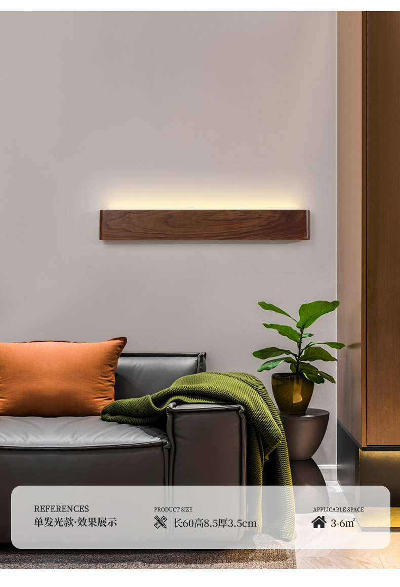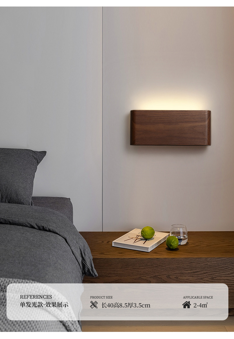 블랙 월넛 침실 침대 옆 벽등 원목 미니멀리스트 북유럽 스타일 긴형 배경벽 현대식 심플 복도 조명 현관등