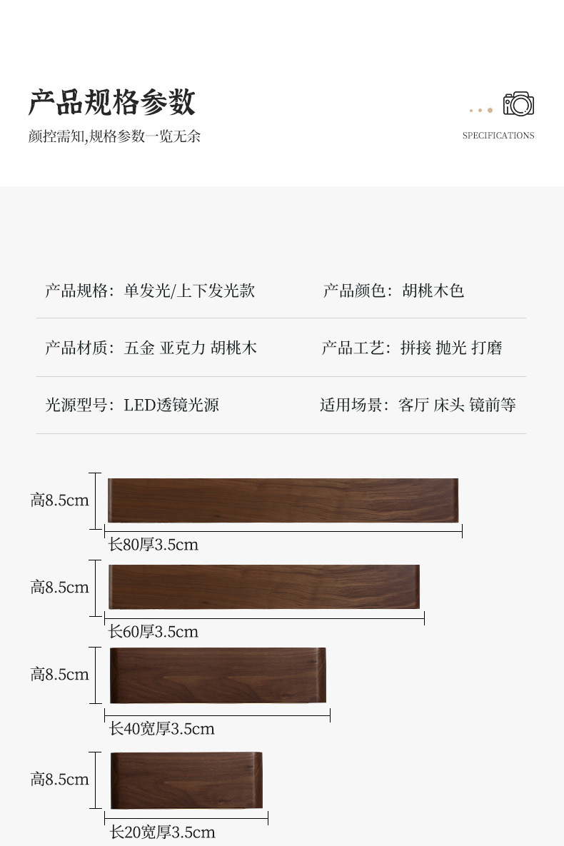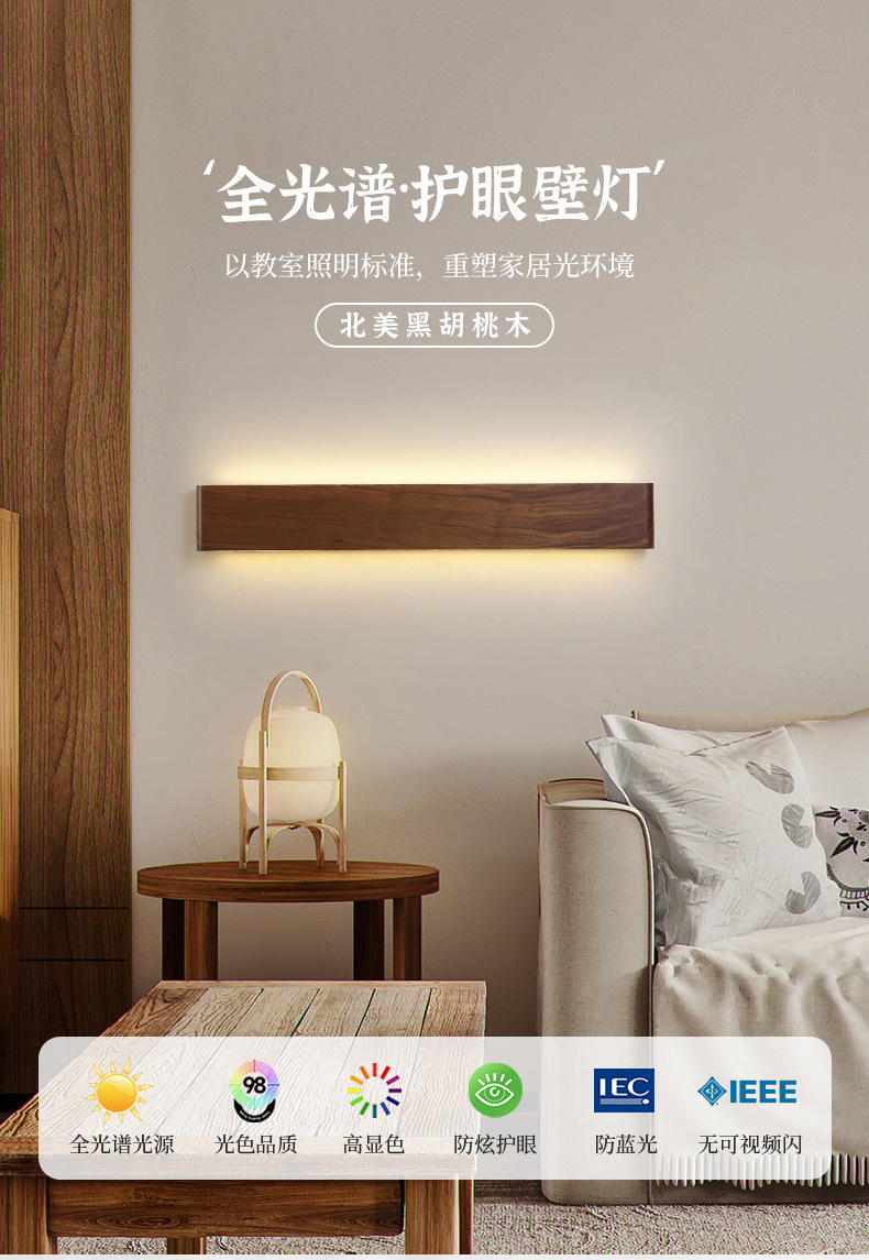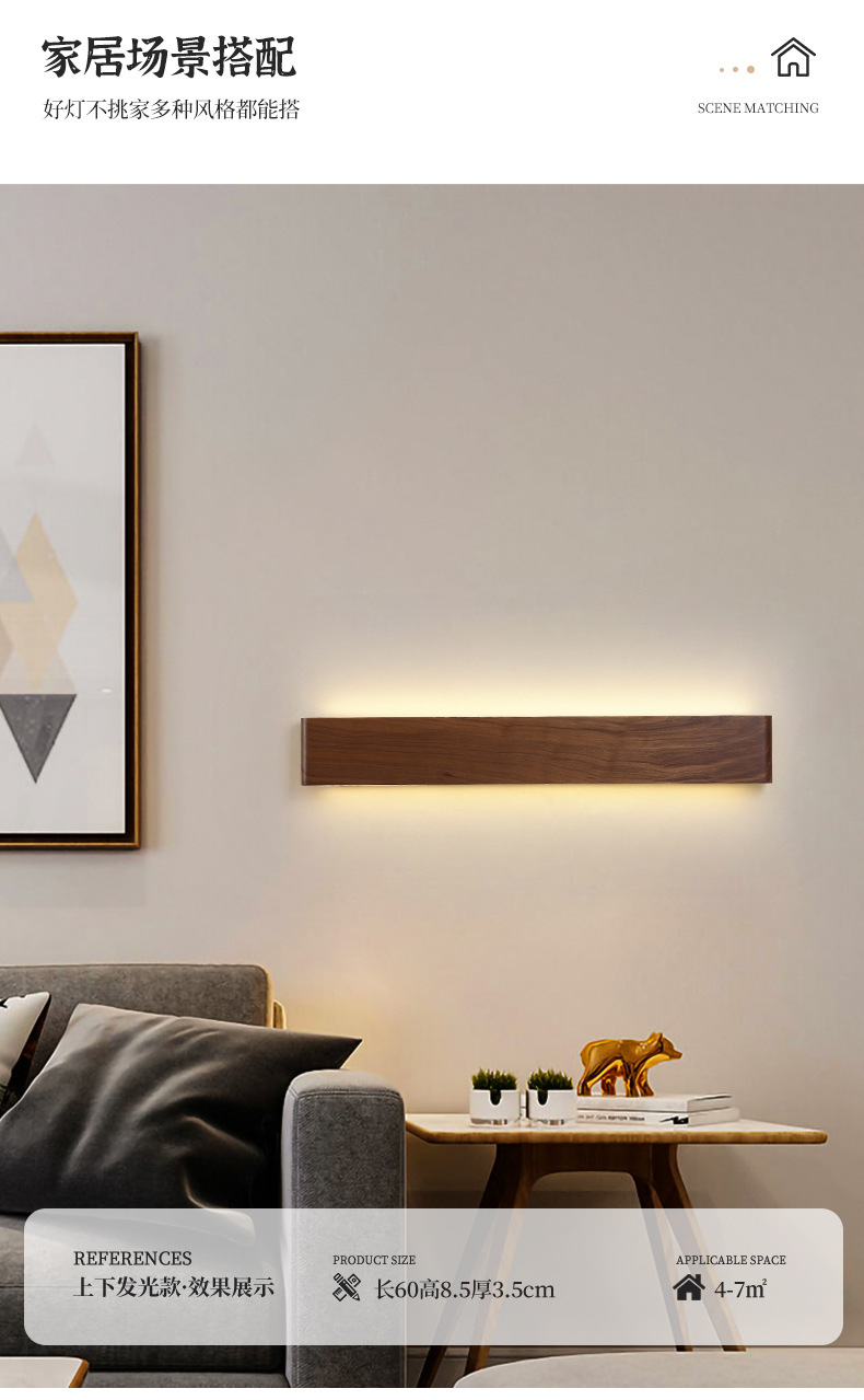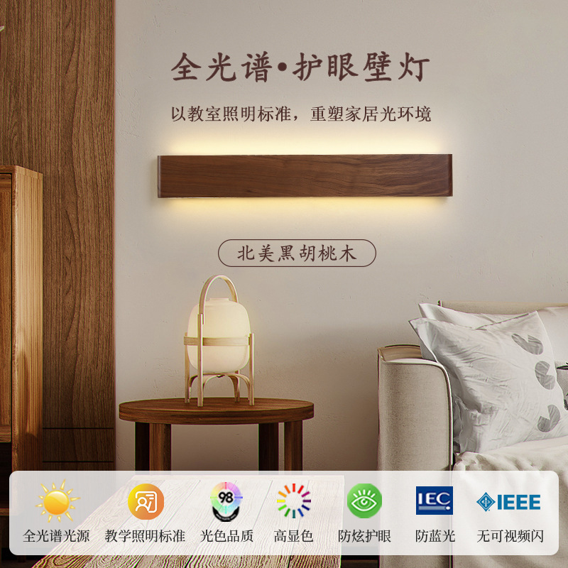 블랙 월넛 침실 침대 옆 벽등 원목 미니멀리스트 북유럽 스타일 긴형 배경벽 현대식 심플 복도 조명 현관등스토어 가기