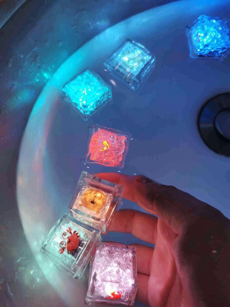 请看完说明再下单!!*魔法沐浴冰块 洗澡发光玩具.最近很多仿的陆续出来了~请大家擦亮眼睛我们最新的升级款入水后马上亮~出水后干燥马上灭~~!质感很好 细节也差别很大我们的触点是在里面的 保证宝宝玩耍的安全 也不会生锈~ 有的玩两次就生锈了采用食品级PS材料及电子元件组成的发光冰块遇水即亮,里面的果冻胶含有少量水份,出现水汽属正常现象。。一套内含8块冰块灯光为七彩慢闪。可连续发光12-20小时切记:不玩水时请放在干燥处。干燥保存,注意:采用3个AG3电池供电(电池不可换)电池用完,即不会发光。如果介意勿拍!!(由于运输中的撞击摔打,可能会造成冰块内部松动,从而影响正常发光,请用力敲打按压一下产品底部,用湿纸巾擦拭接触端金属片!)宝贝商宝贝商品详