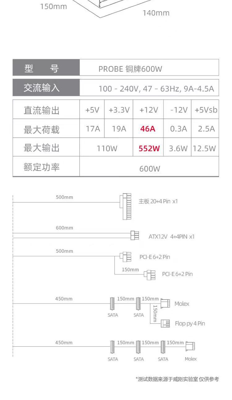 Wei/Gangmo 원자력 600 컴퓨터 전원 공급 장치 80PLUS 청동 인증 사일런트 팬 데스크탑 호스트 게임 전원 공급 장치