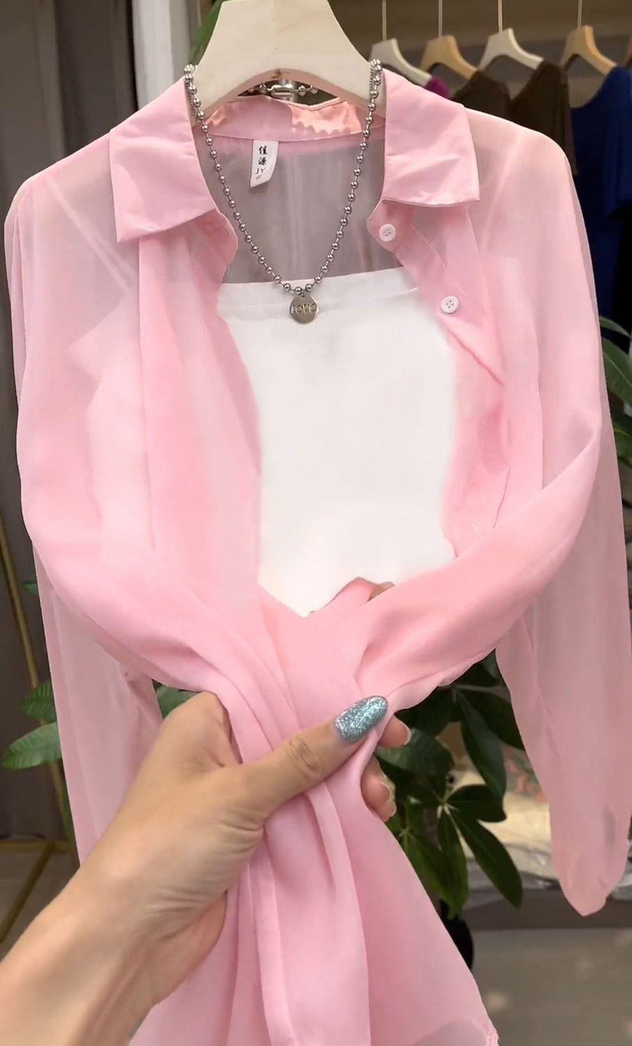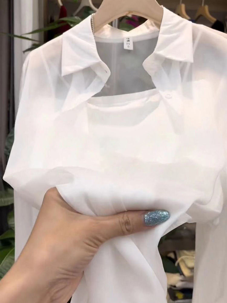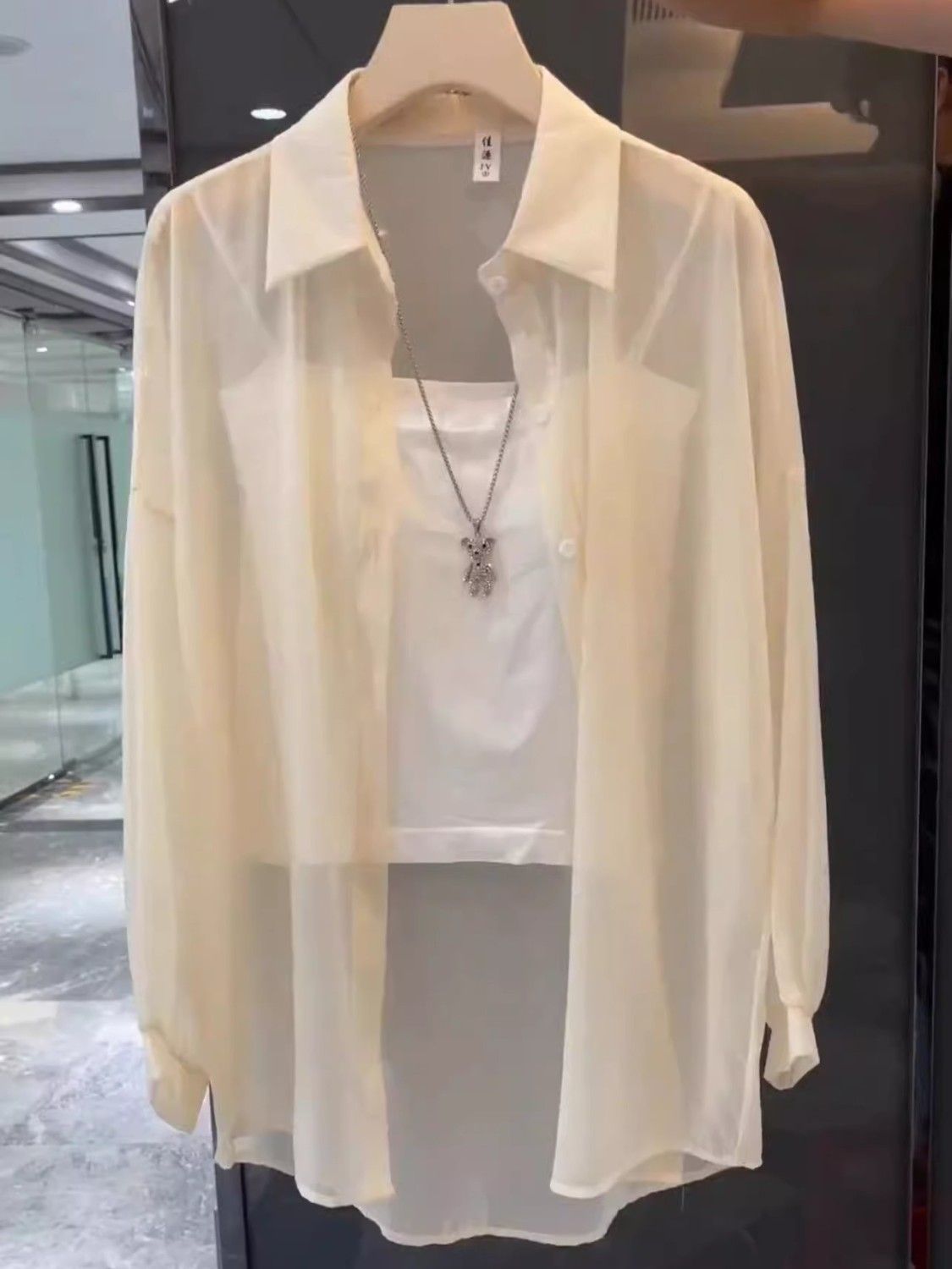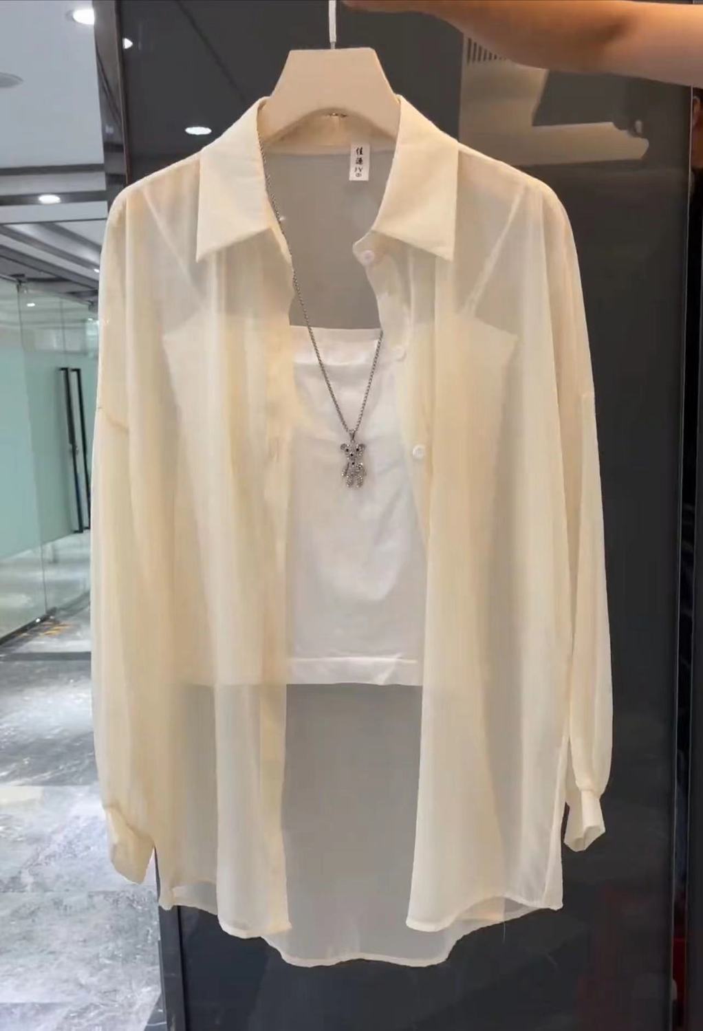 여성을위한 프랑스 쉬폰 진주 빛 모래 태양 보호 셔츠 여름 새로운 스타일 유행 유행 하이 엔드 세련된 작은 셔츠 트렌드스토어 가기