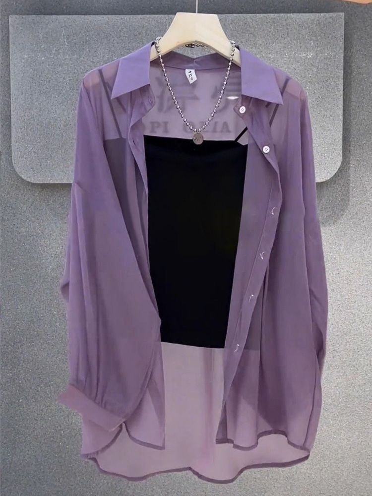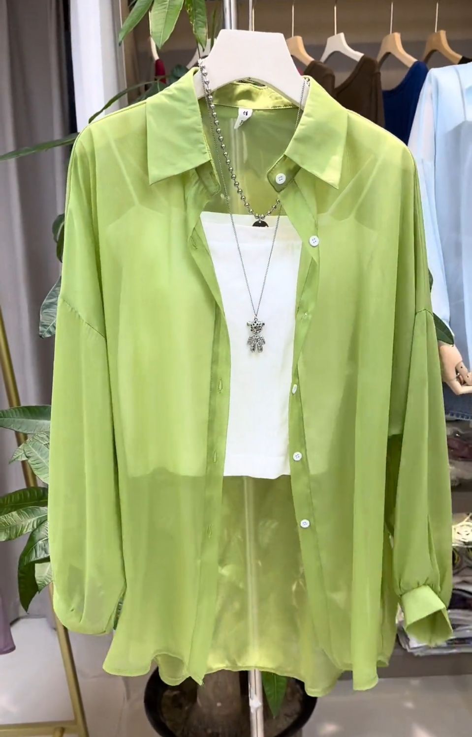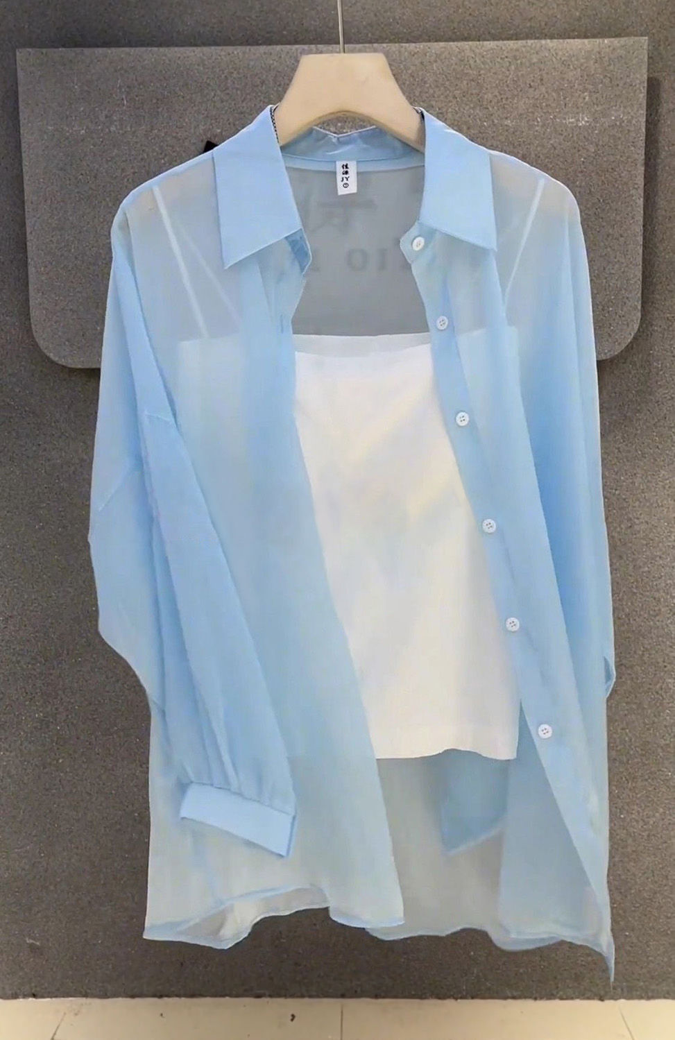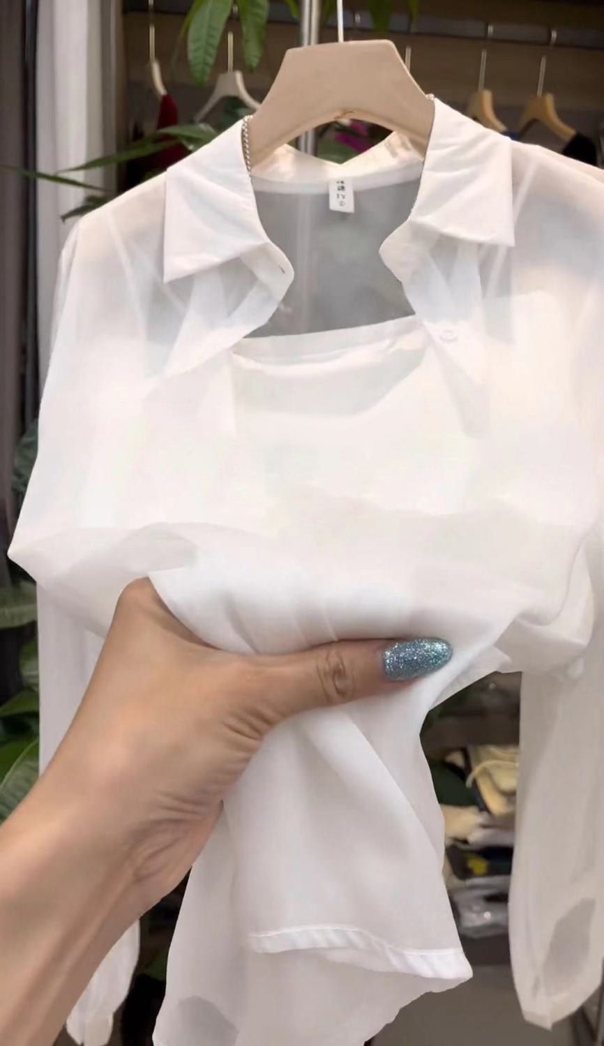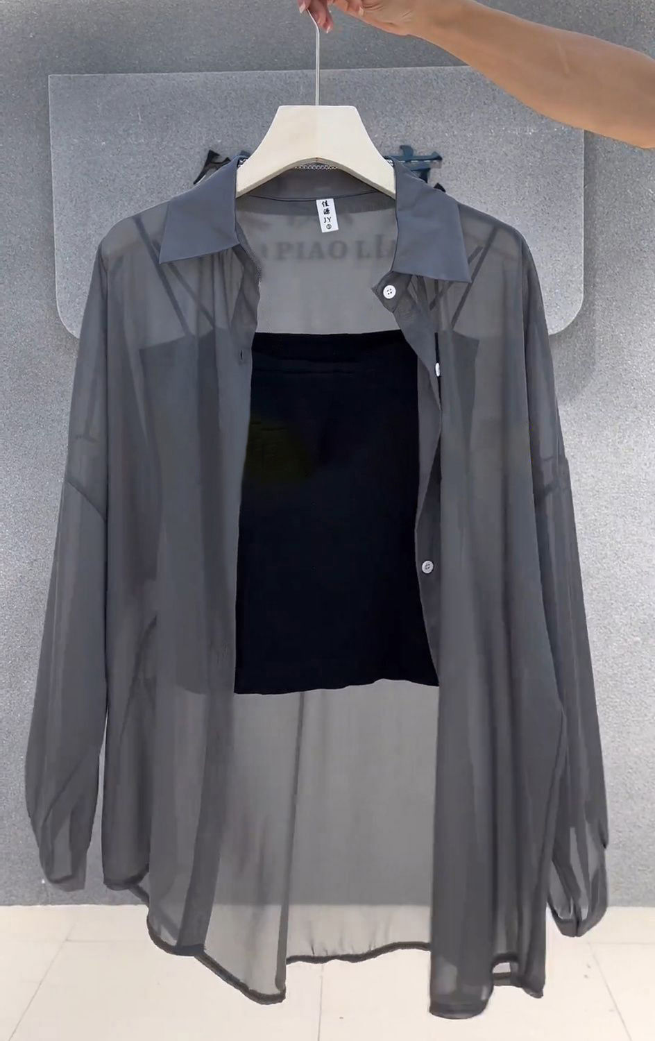 여성을위한 프랑스 쉬폰 진주 빛 모래 태양 보호 셔츠 여름 새로운 스타일 유행 유행 하이 엔드 세련된 작은 셔츠 트렌드스토어 가기