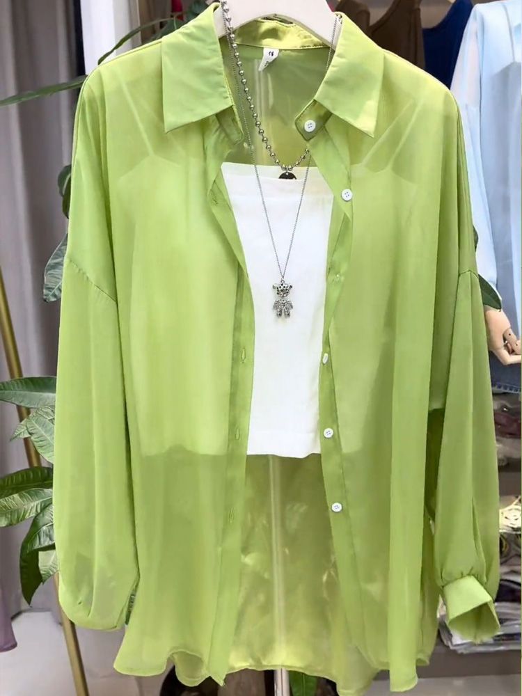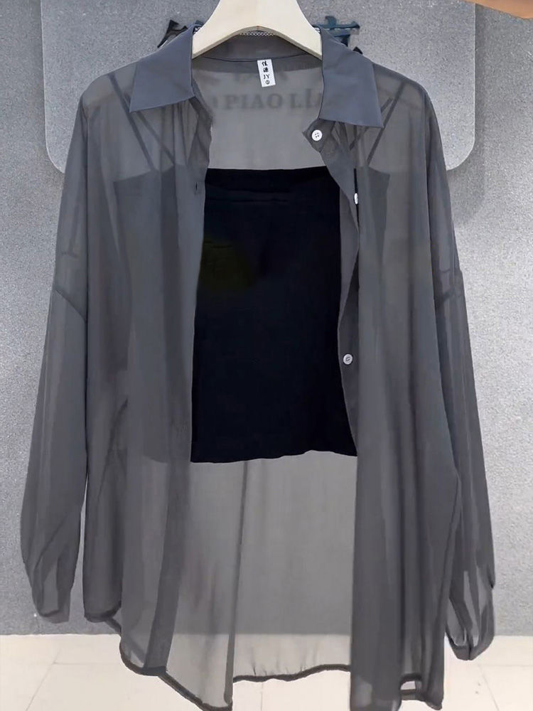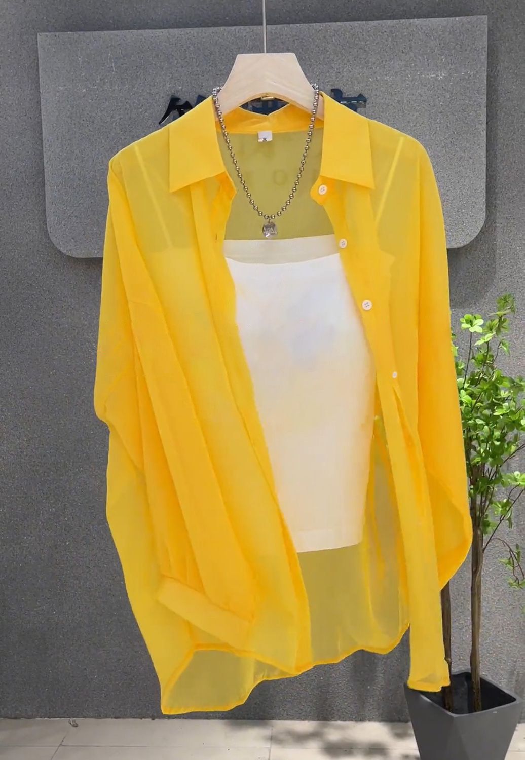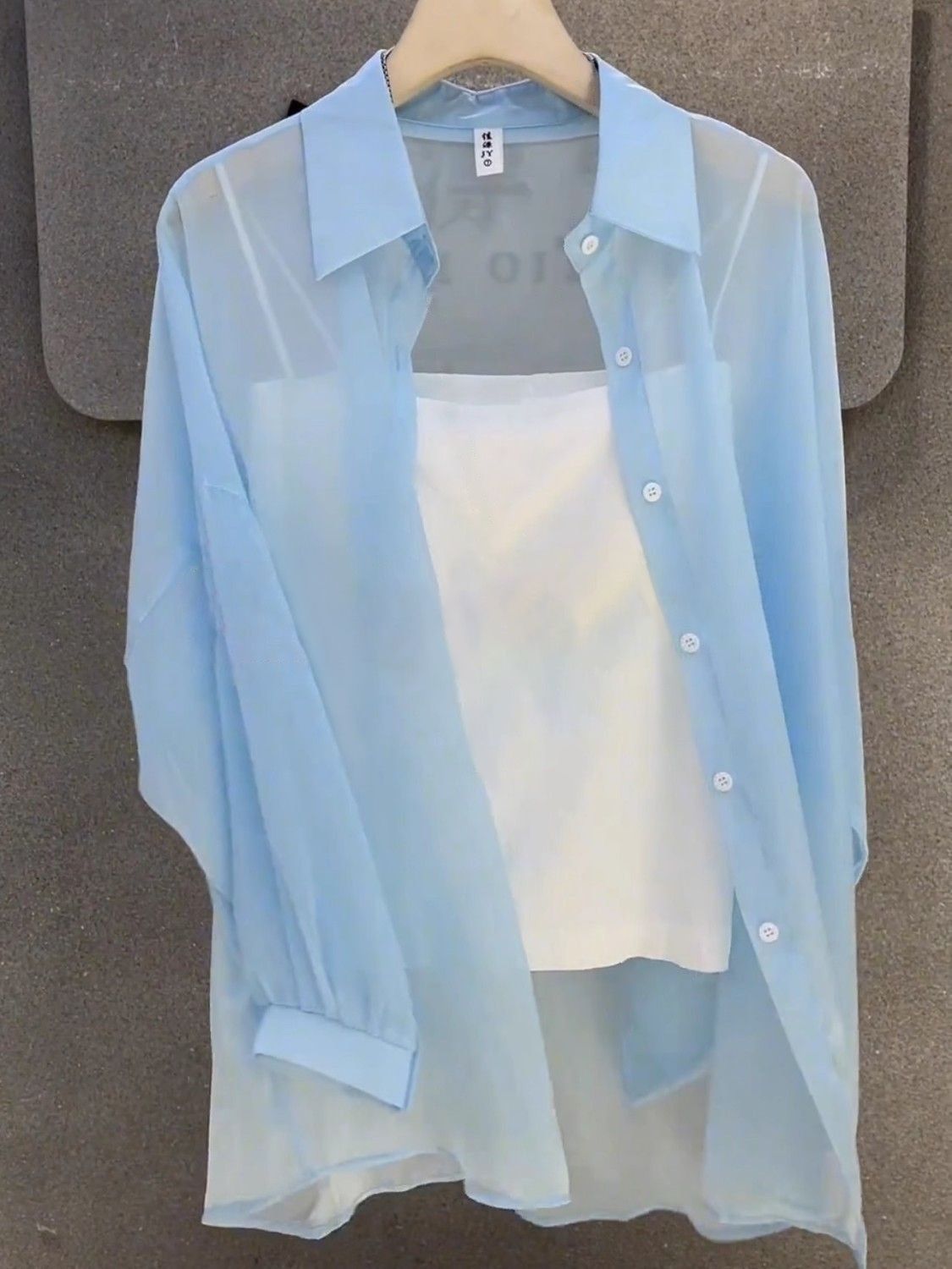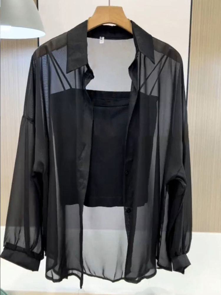 여성을위한 프랑스 쉬폰 진주 빛 모래 태양 보호 셔츠 여름 새로운 스타일 유행 유행 하이 엔드 세련된 작은 셔츠 트렌드스토어 가기