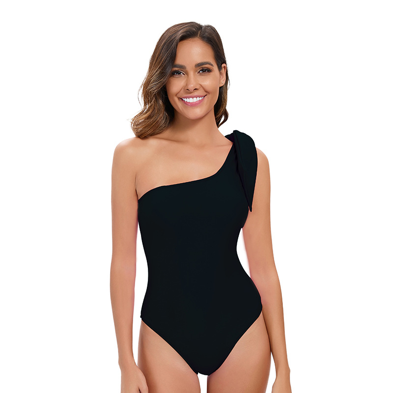 국경 간 새로운 유럽과 미국의 단색 원 숄더 레이스 업 수영복 여성의 2024 섹시한 백리스 트라이앵글 타이트 수영복스토어 가기