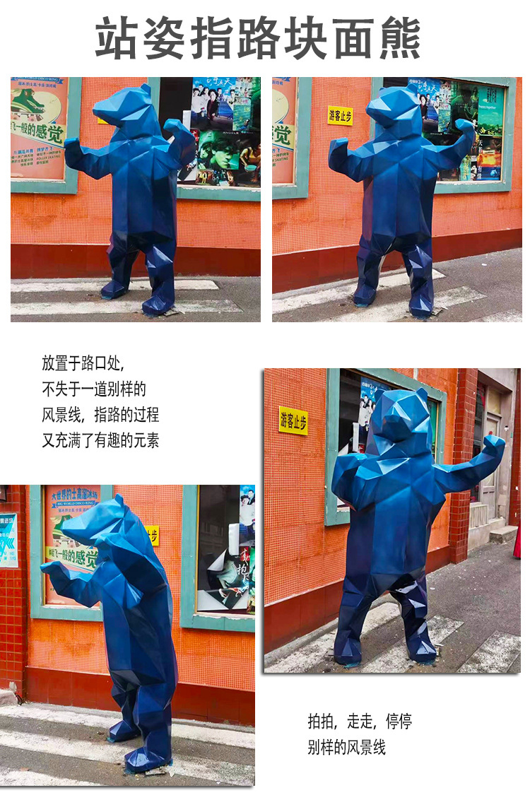 대형 유리 섬유 강화 플라스틱 블록 얼굴 기하학적 팬더 조각 광장 야외 명승지 쇼핑몰 슈퍼마켓 촬영 풍경 장식