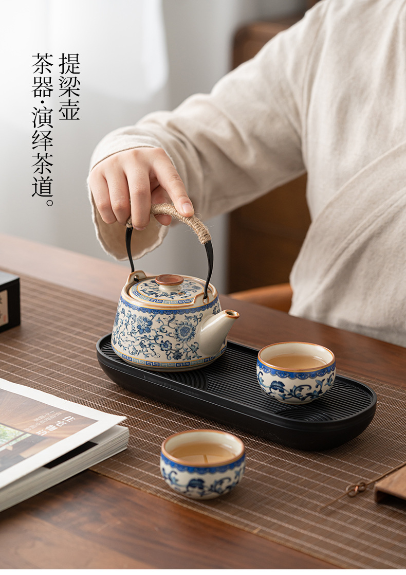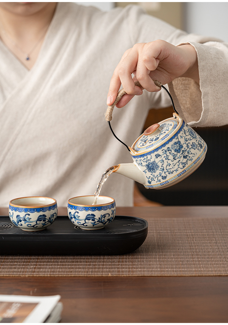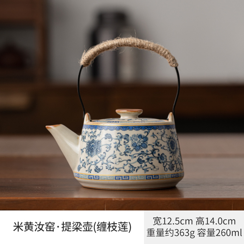 Ru Kiln Coil Pot 중국식 세라믹 주전자 쿵푸 차 세트 차 메이커 가정용 복고풍 손으로 포장 된 브랜칠라 차 싱글 냄비스토어 가기