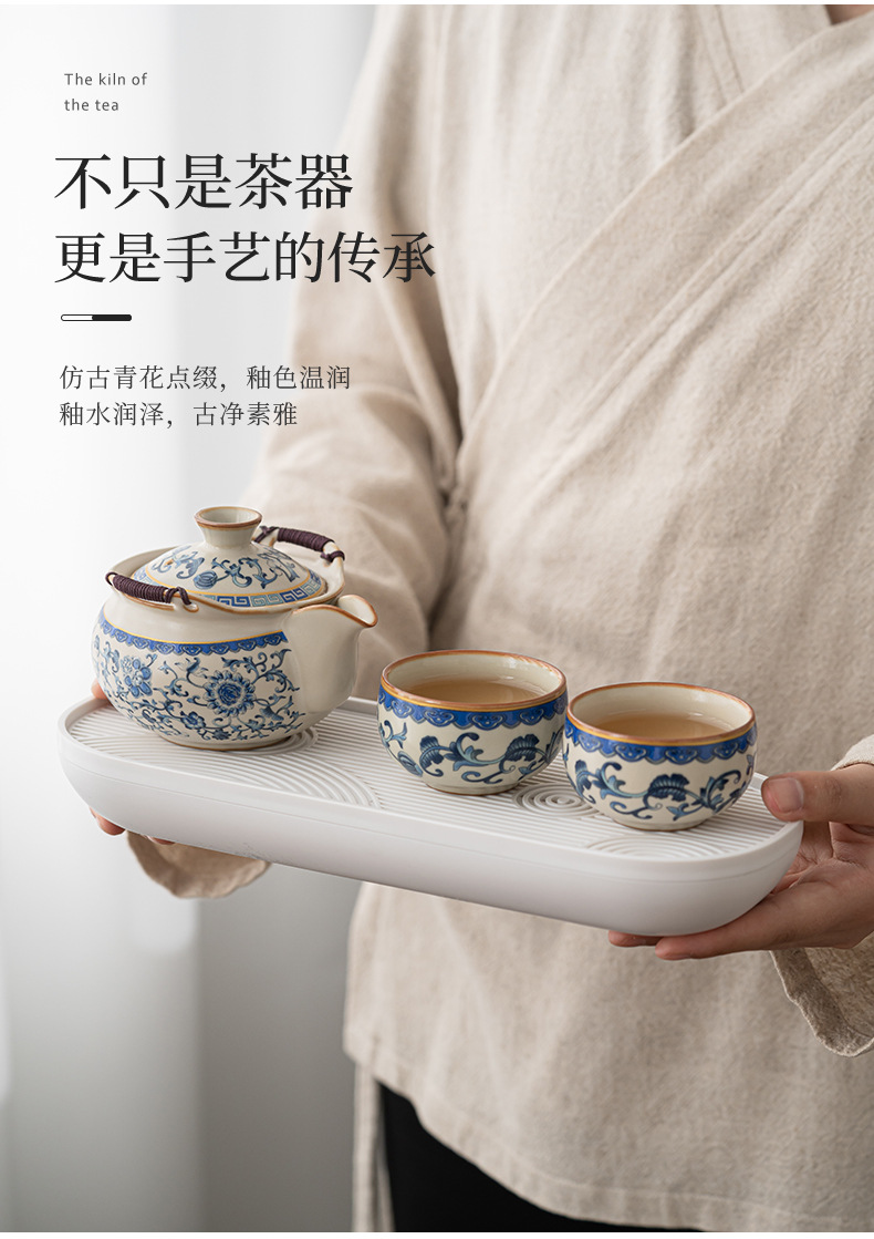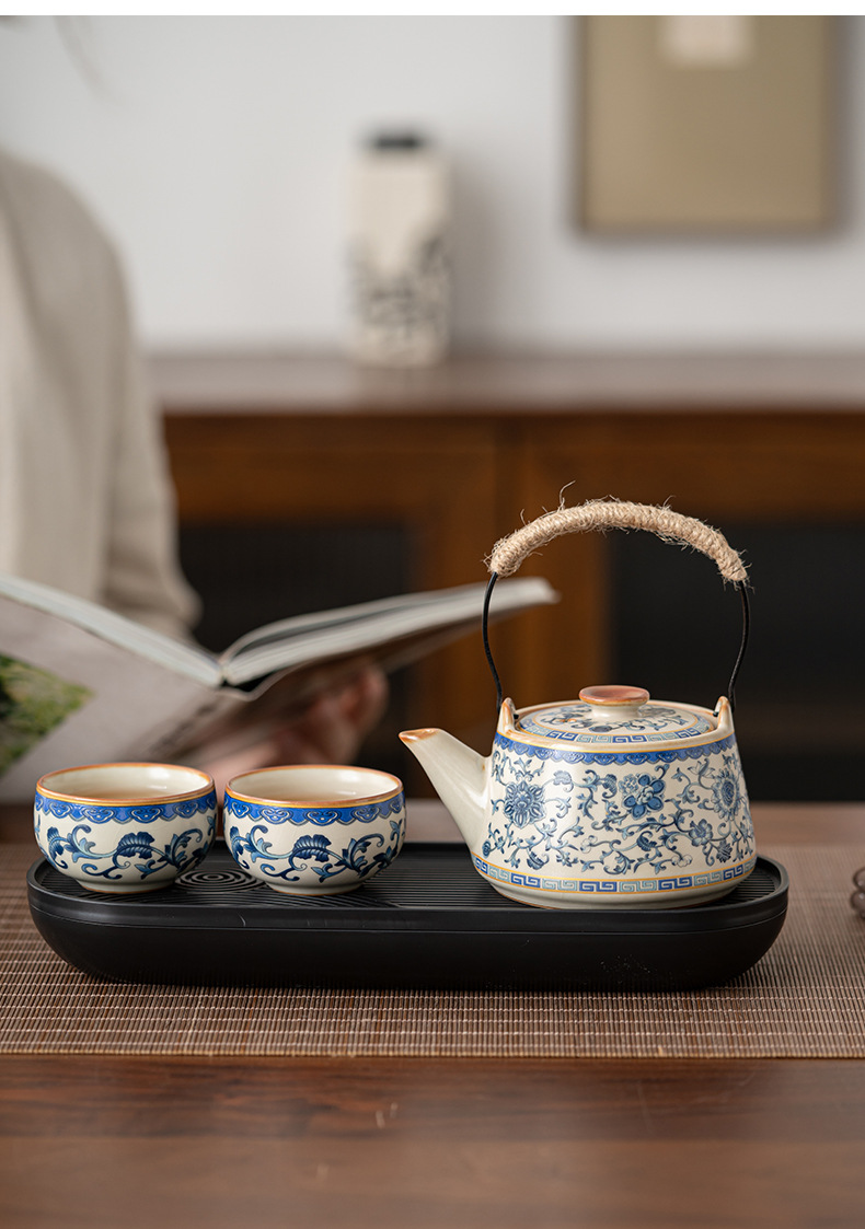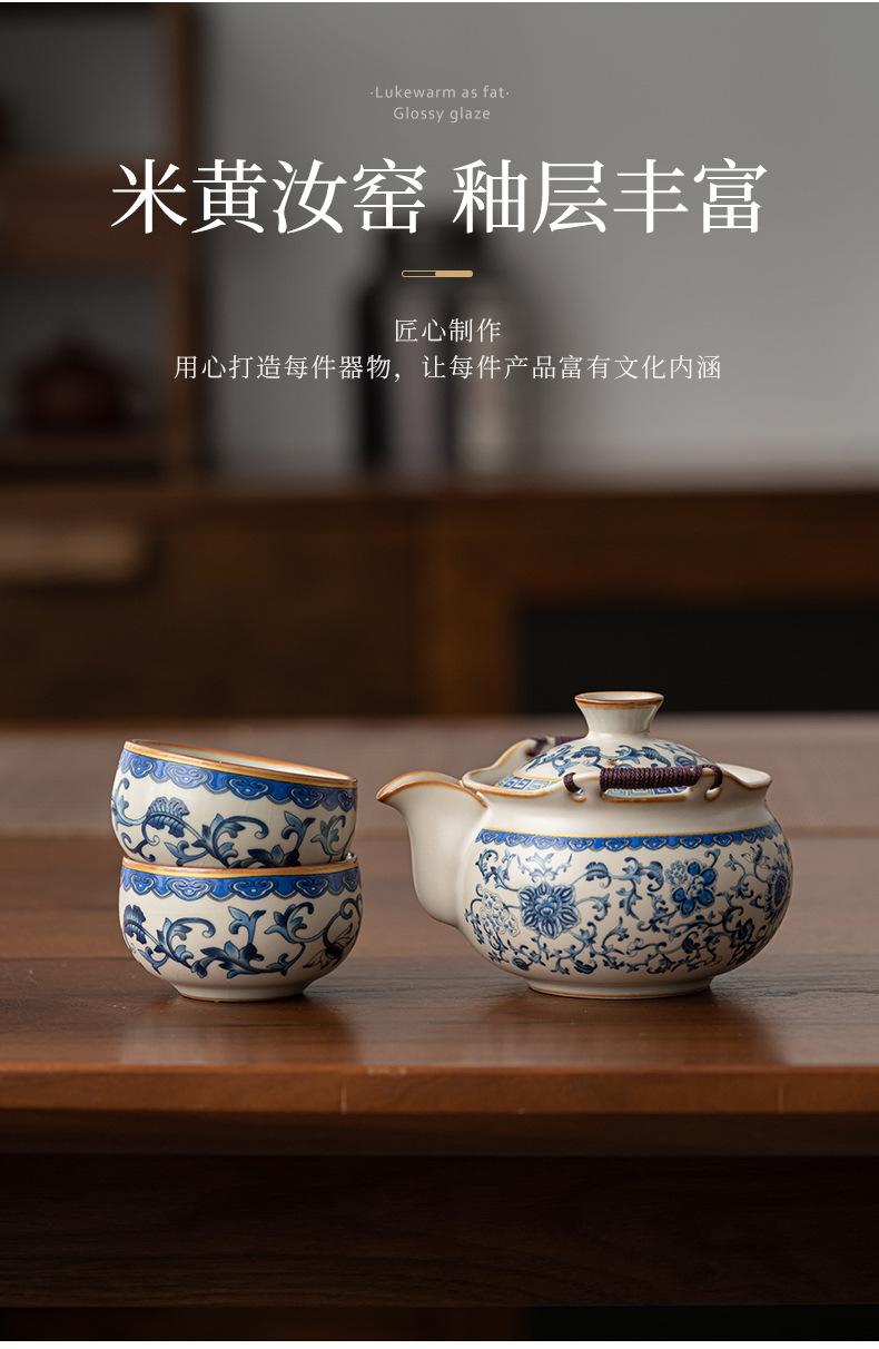Ru Kiln Coil Pot 중국식 세라믹 주전자 쿵푸 차 세트 차 메이커 가정용 복고풍 손으로 포장 된 브랜칠라 차 싱글 냄비