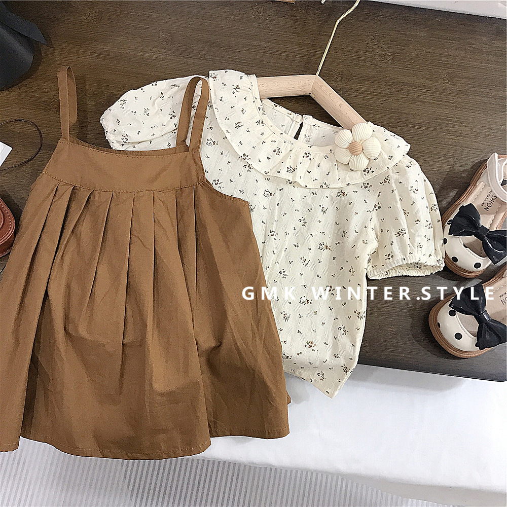 여아 여름 멜빵 원피스 세트 아동 원피스 세련된 아기 반팔 공주 드레스 호주직물 아동복스토어 가기