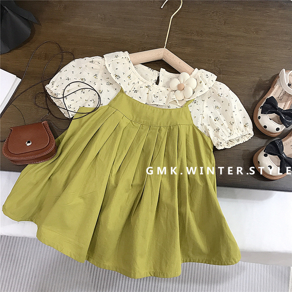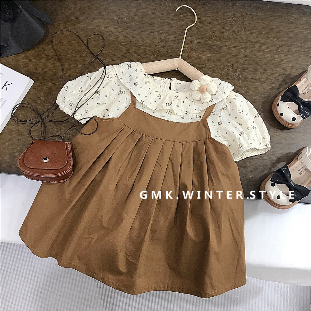여아 여름 멜빵 원피스 세트 아동 원피스 세련된 아기 반팔 공주 드레스 호주직물 아동복