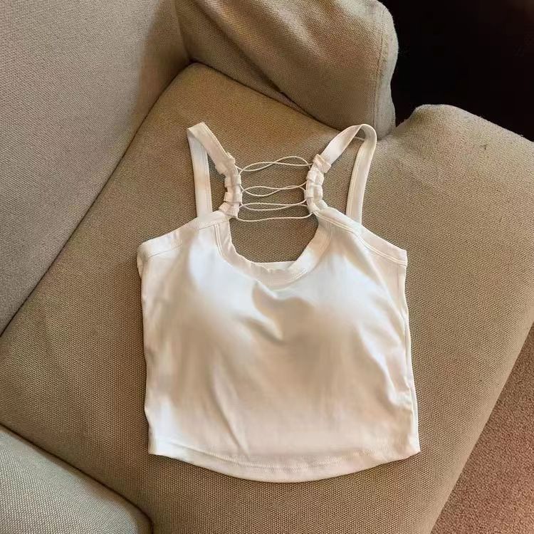 아름다운 등 짧은 흰색 카미 솔 가슴 패드 순수한 욕망 뜨거운 소녀 도파민 착용 디자인 감각 슬림 적합베이스