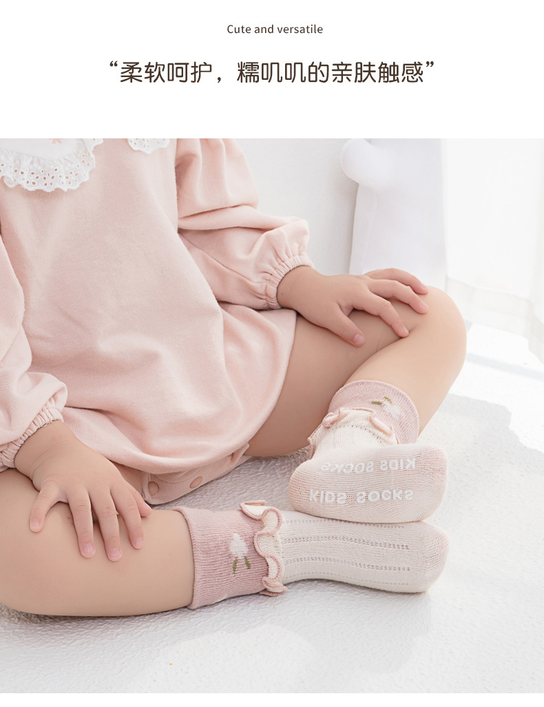 24 봄과 여름 뼈없는 Auicularia 레이스 공주 양말 아기 어린이 미끄럼 방지 바닥 양말 작은 꽃 커튼 양말