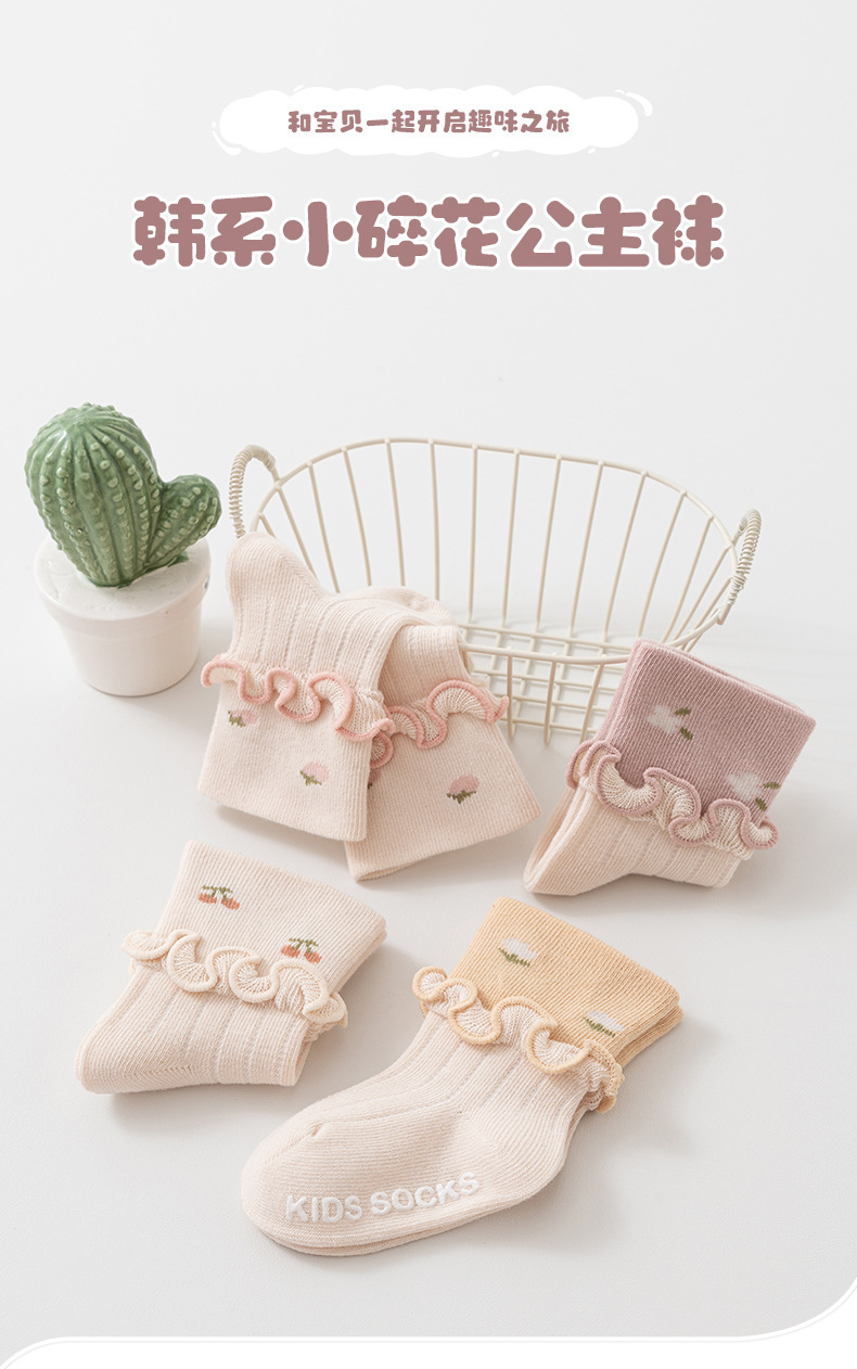 24 봄과 여름 뼈없는 Auicularia 레이스 공주 양말 아기 어린이 미끄럼 방지 바닥 양말 작은 꽃 커튼 양말스토어 가기