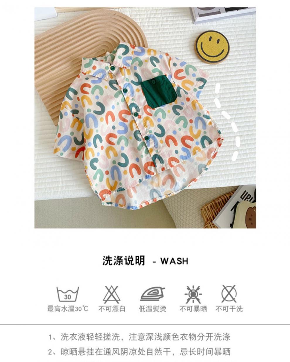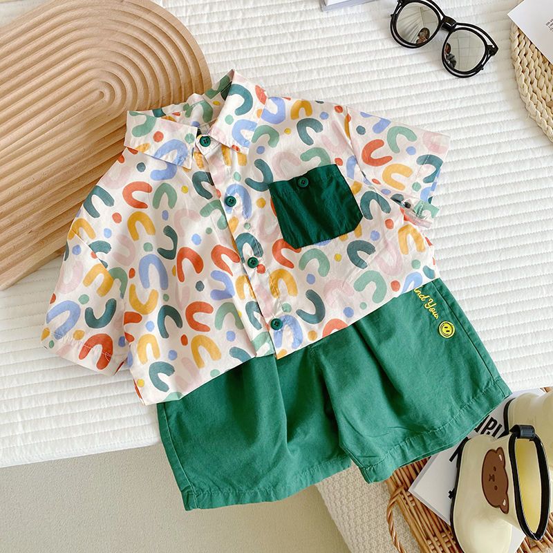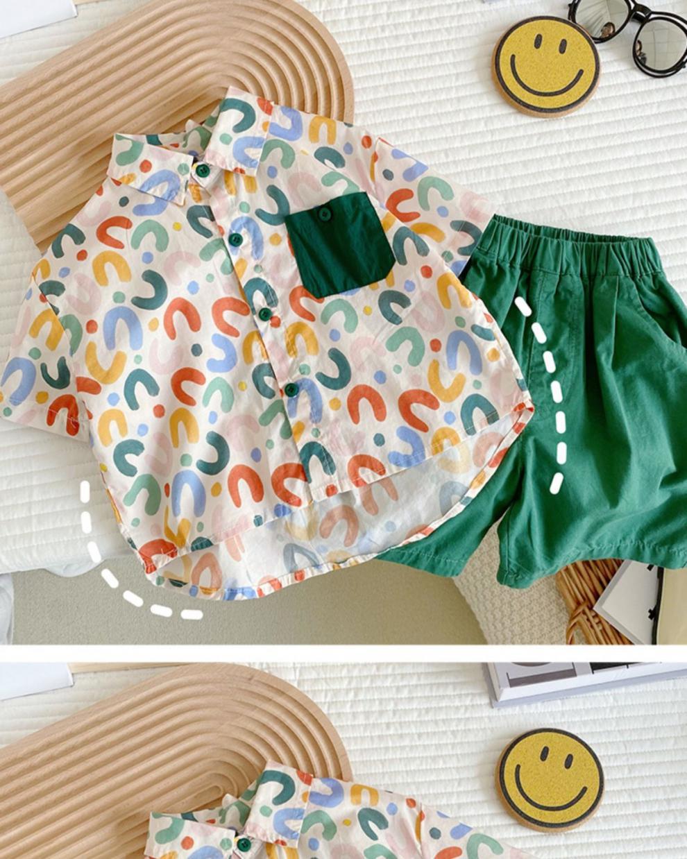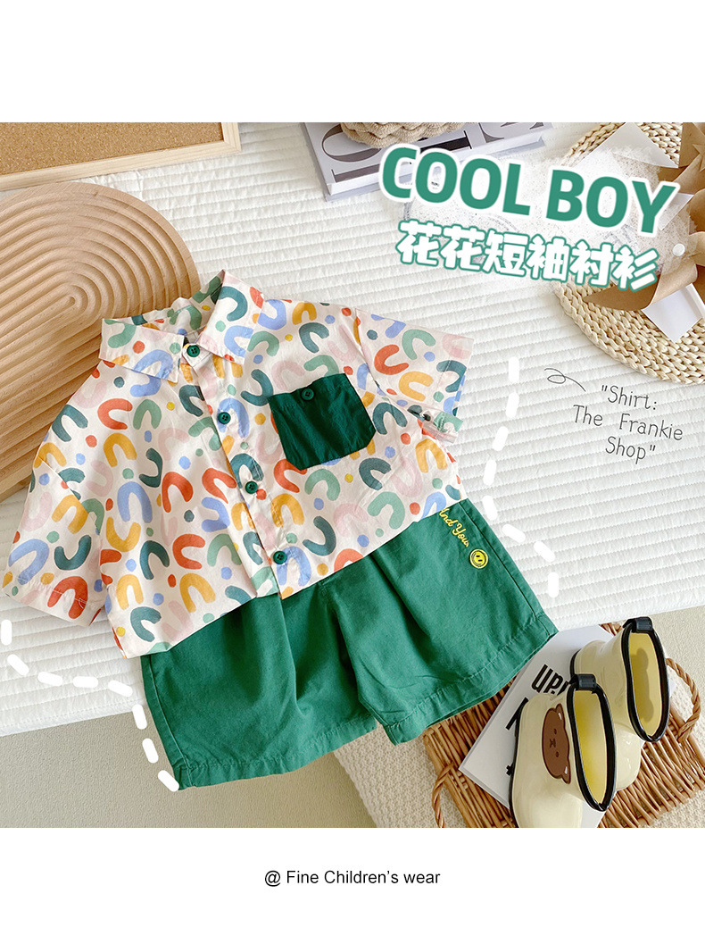 남자들의 여름 반팔 세트 한국식 꽃 셔츠 어린이 통기성 여름 원피스 아기 셔츠와 반바지 투피스 세트