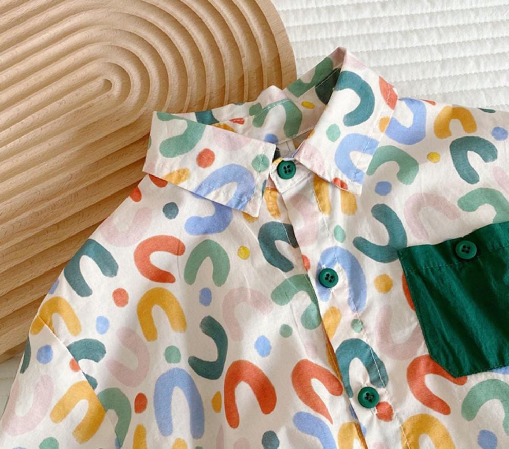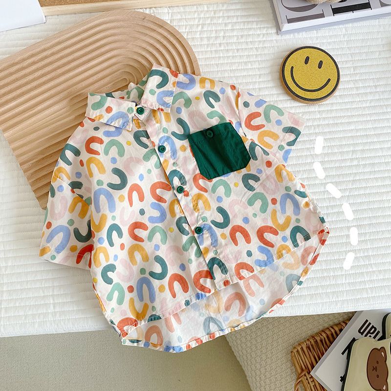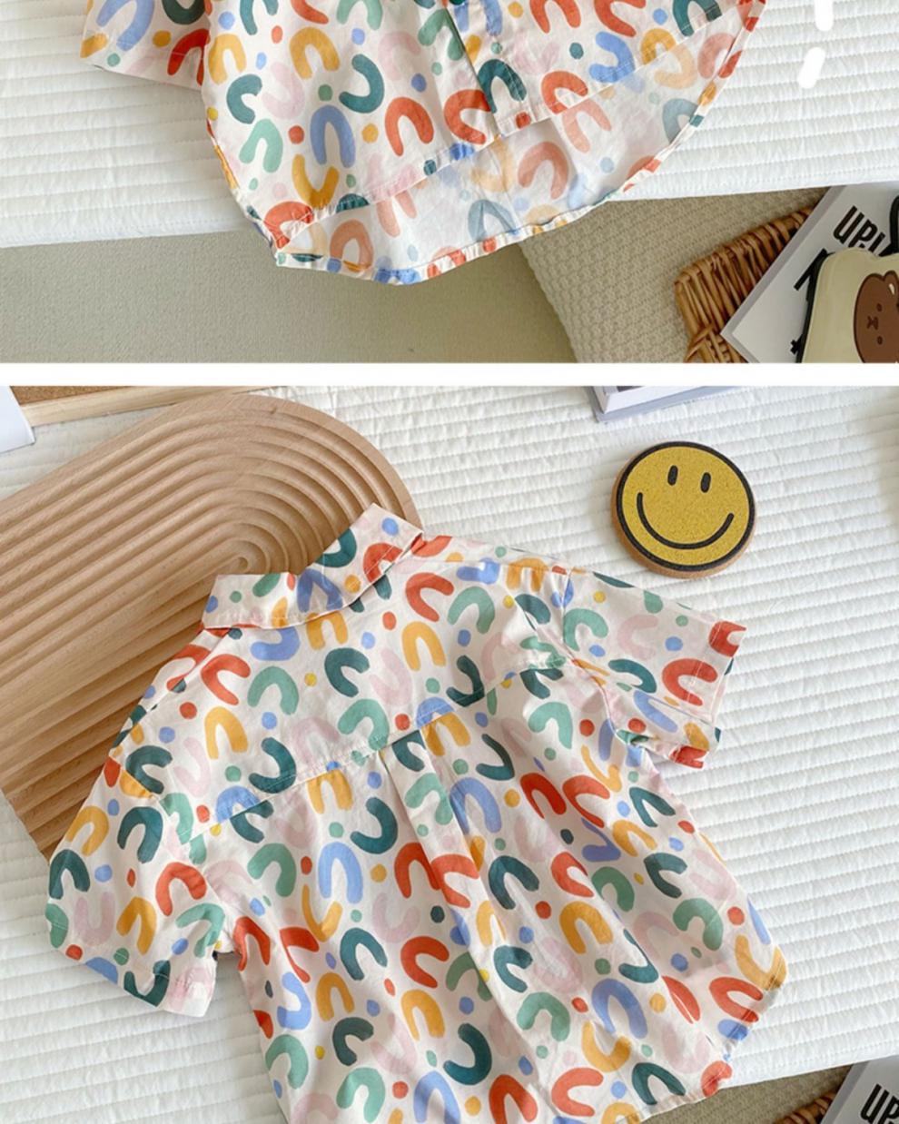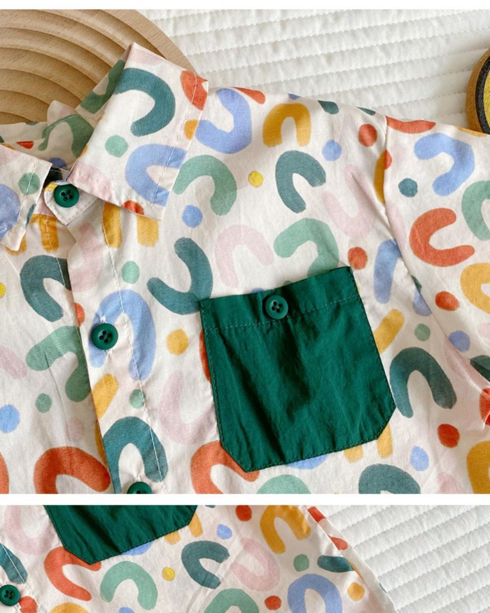 남자들의 여름 반팔 세트 한국식 꽃 셔츠 어린이 통기성 여름 원피스 아기 셔츠와 반바지 투피스 세트