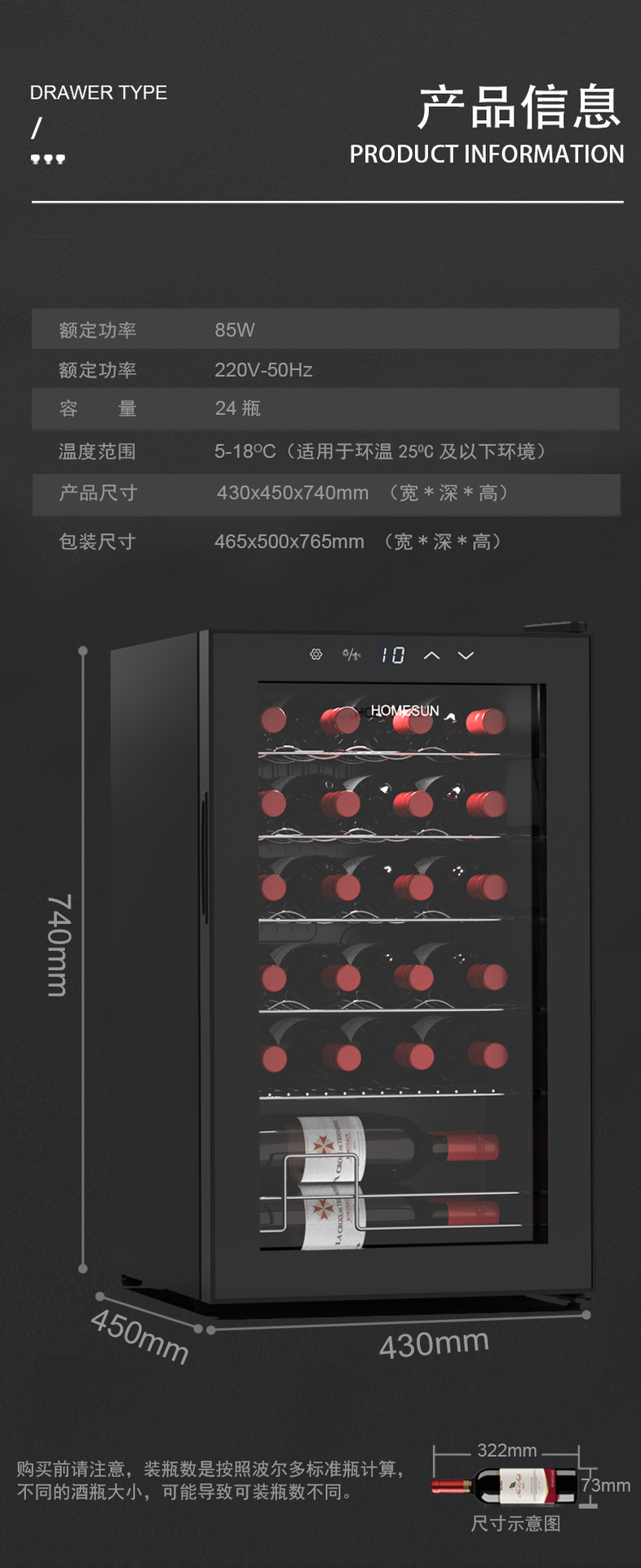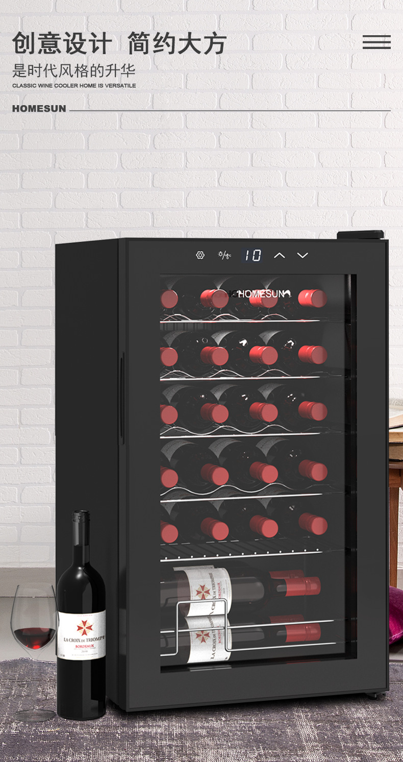 홈선 가정용 컴프레서 와인 쿨러, 와인 온도 조절 디스플레이 캐비닛, 온도 및 습도 조절 와인 캐비닛