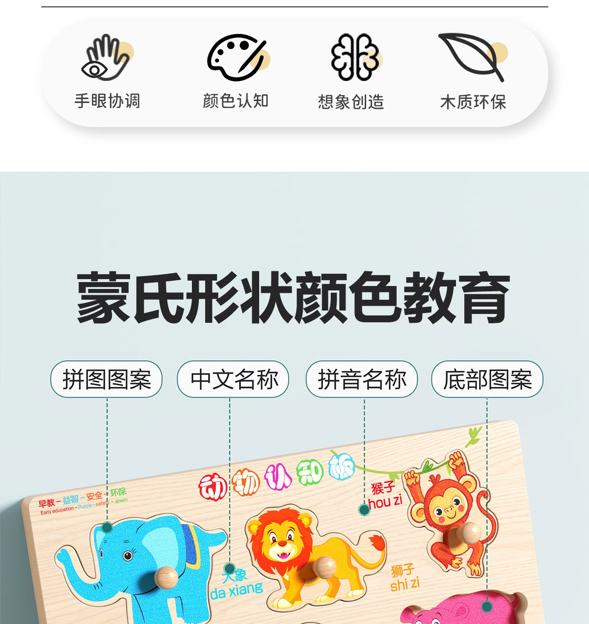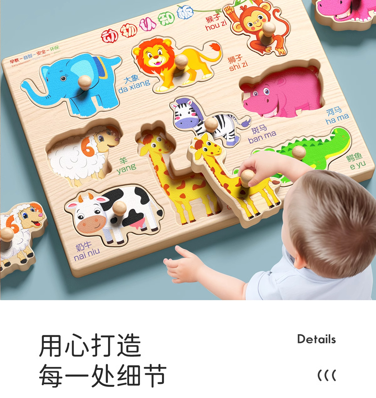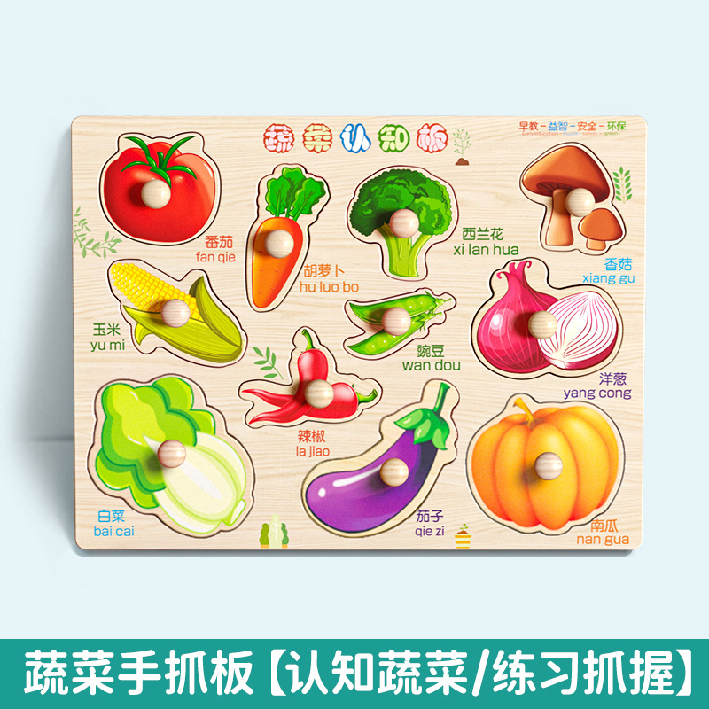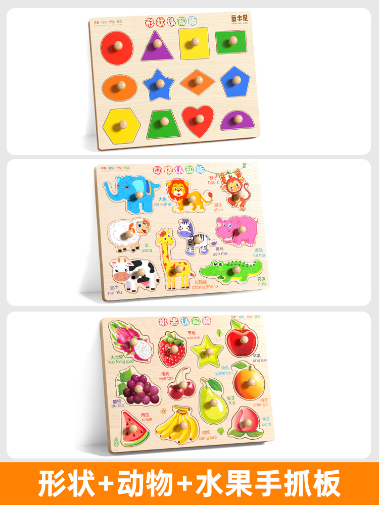 어린이용 핸드 그립 보드, 교육용 빌딩 블록, 두뇌 자극 퍼즐, 1~3세 아기를 위한 대형 조립 장난감 보관함
