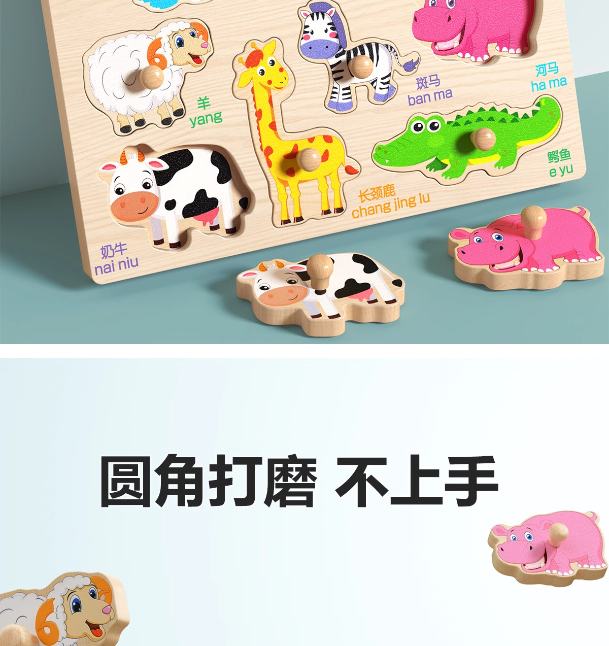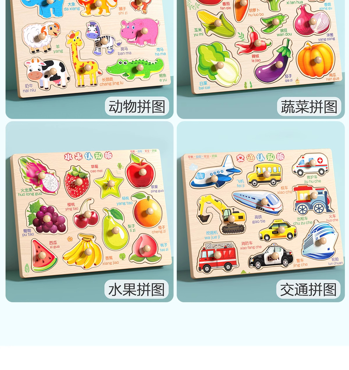 어린이용 핸드 그립 보드, 교육용 빌딩 블록, 두뇌 자극 퍼즐, 1~3세 아기를 위한 대형 조립 장난감 보관함스토어 가기