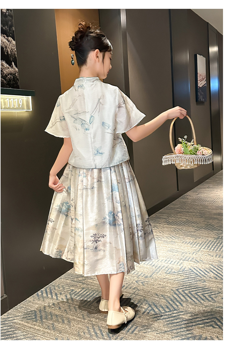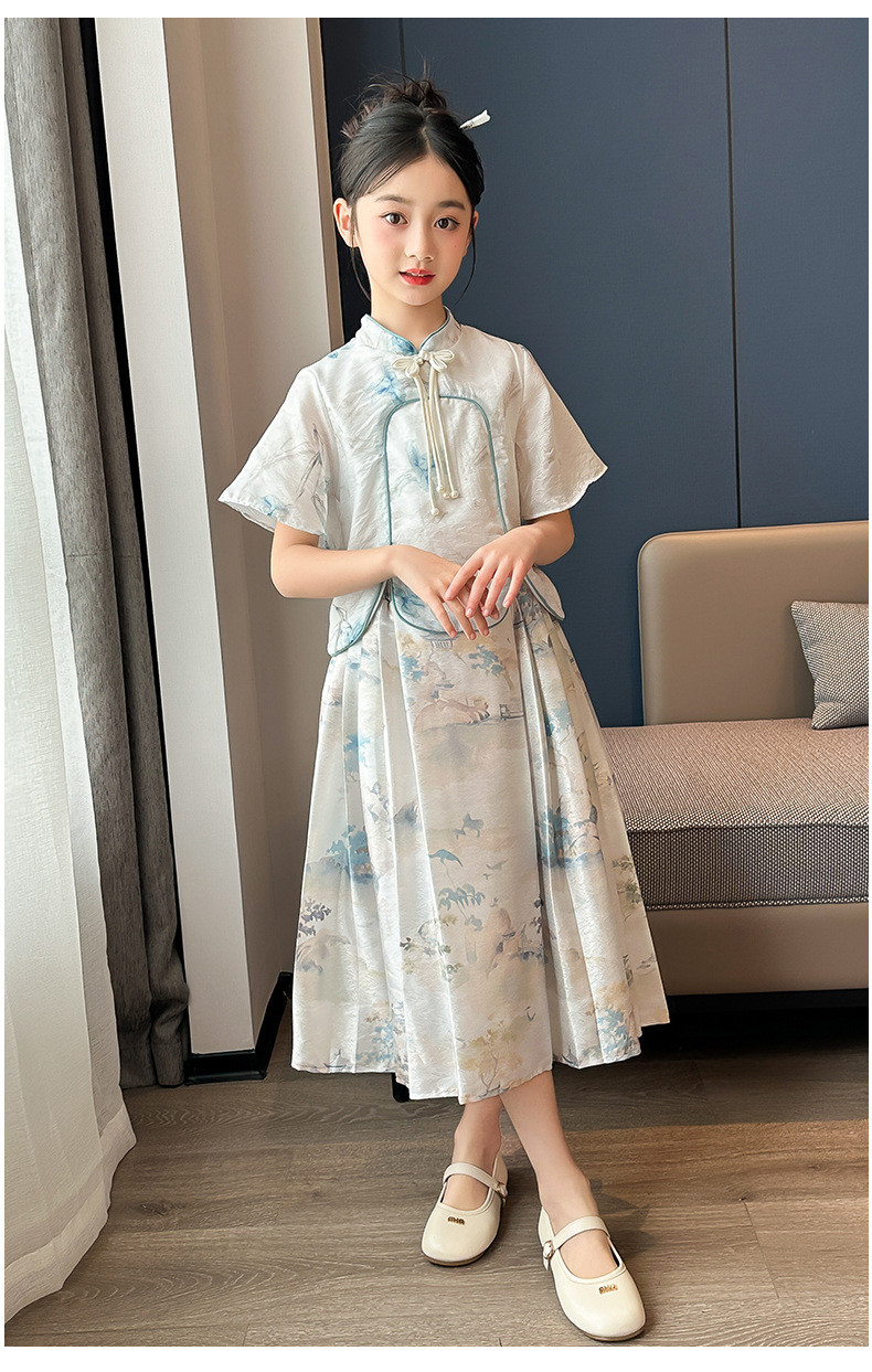 소녀의 말 얼굴 치마 원피스 2024 년 여름 새로운 어린이 한후 골동품 소녀의 여름 당나라 세트 트렌디 스커트