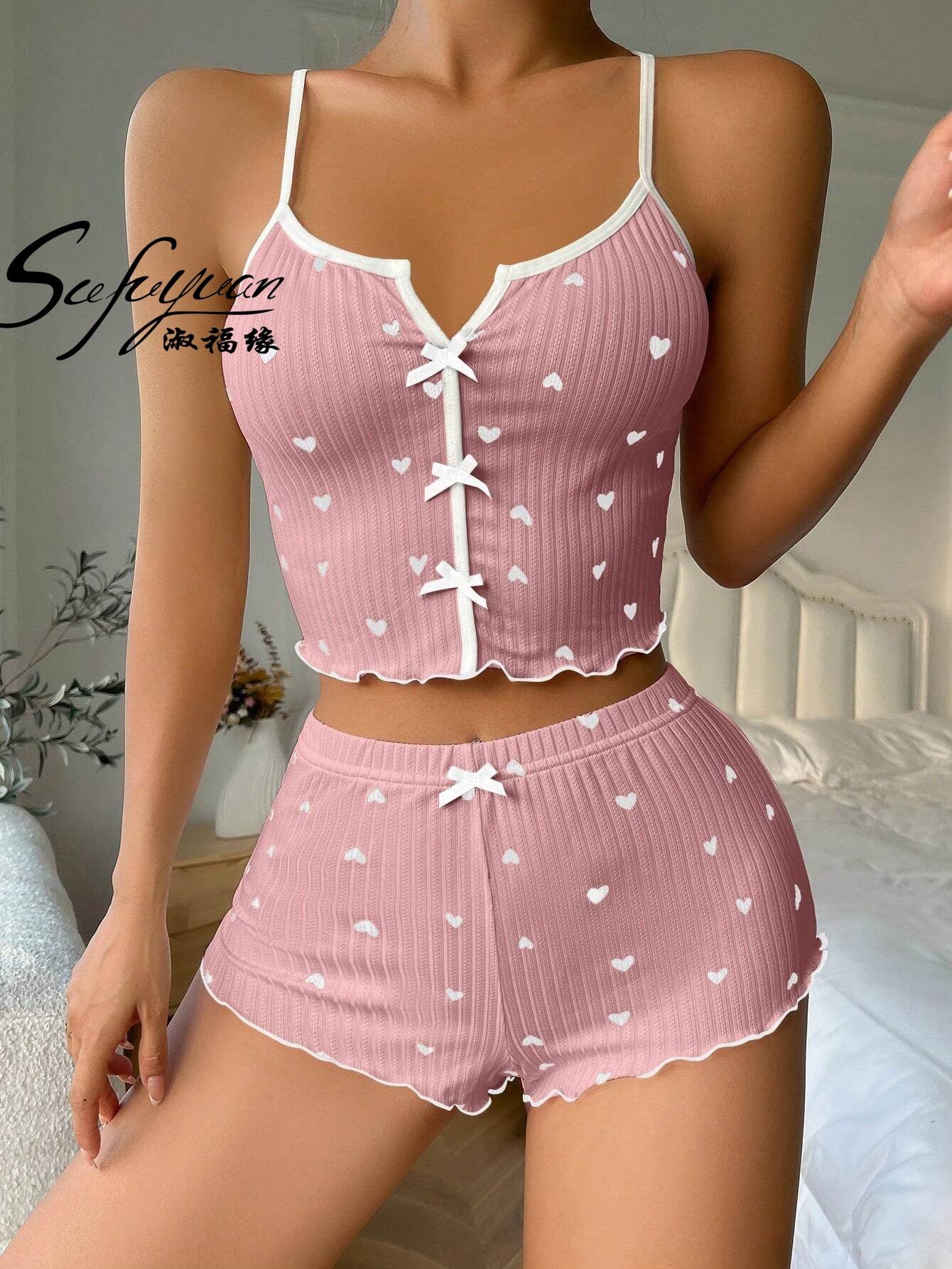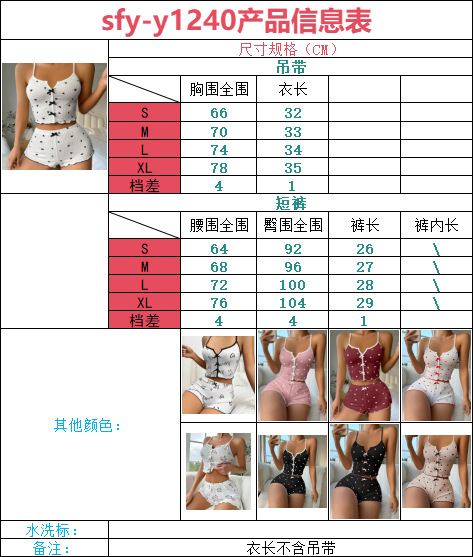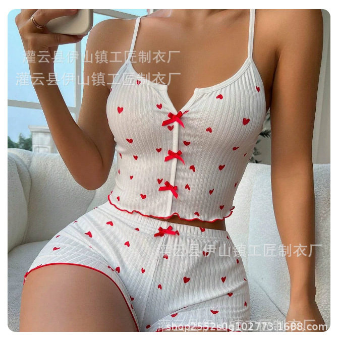 국경 간 여름 여성의 새로운 잠옷 섹시한 멀티 컬러 프린트 보우 서스펜더 반바지 밀크 실크 정장 홈웨어