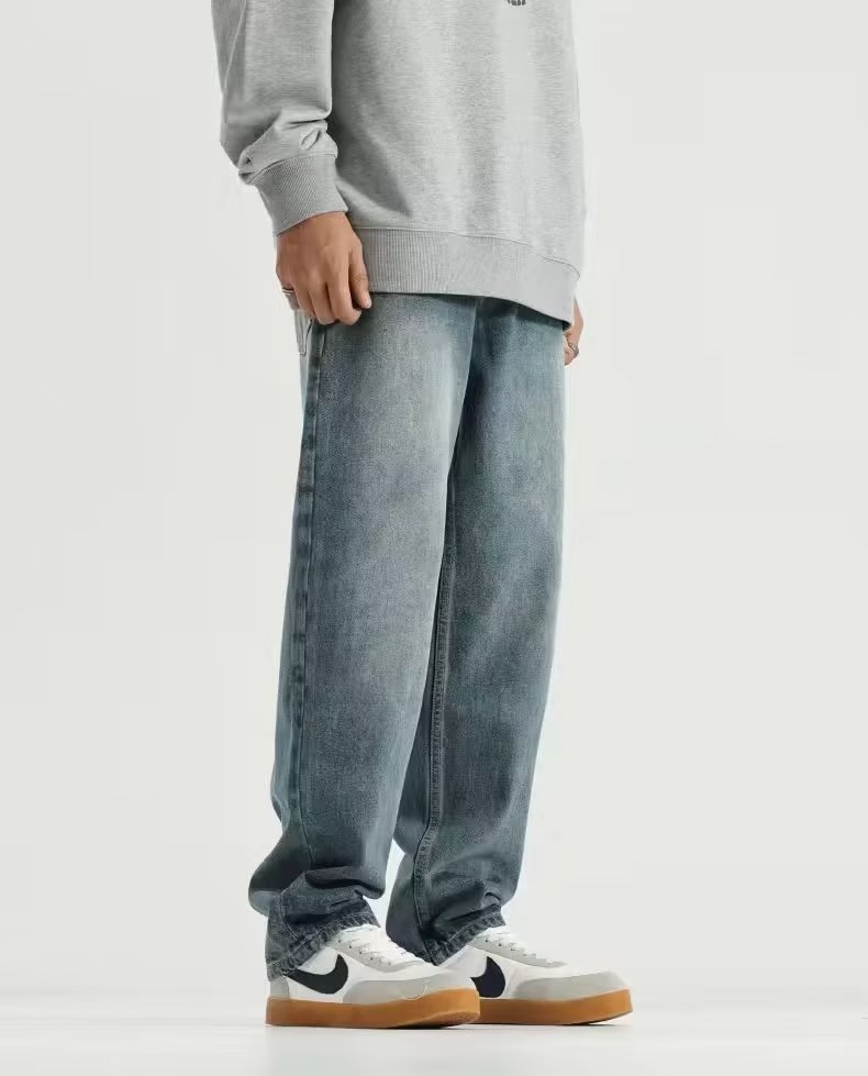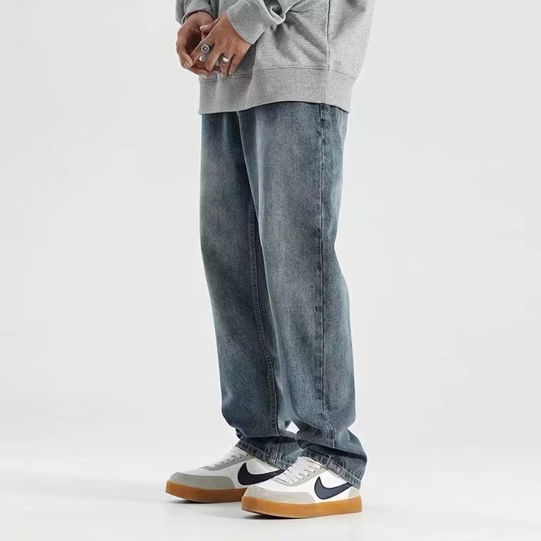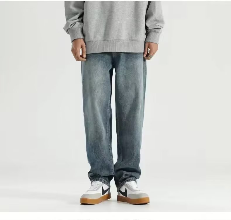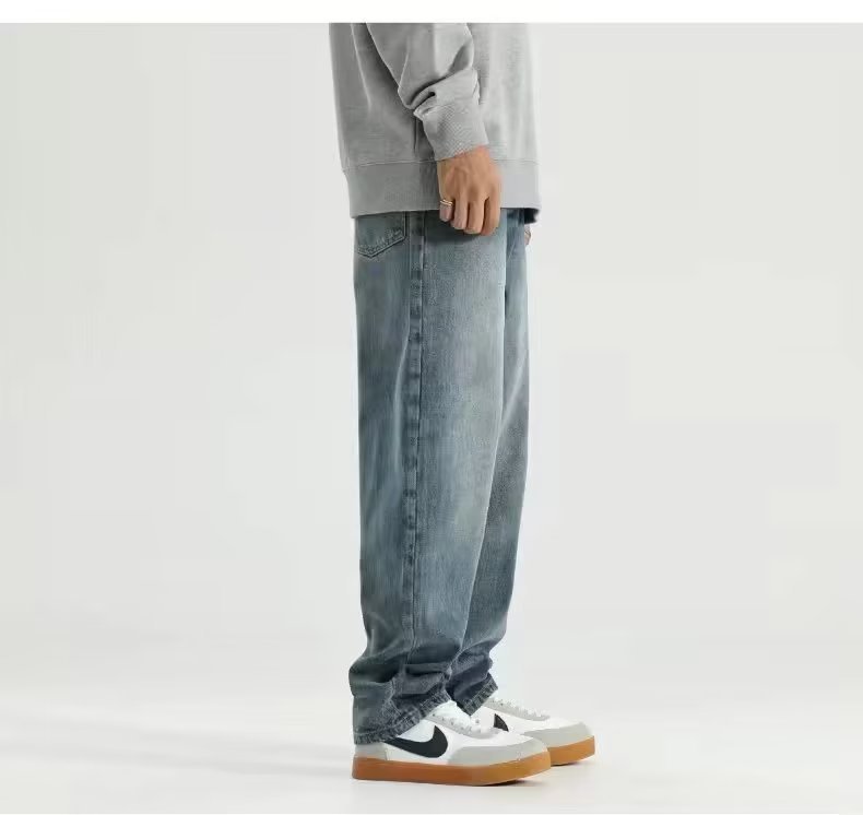 아메리칸 스타일 레트로 청바지 남성 여름 씻기 2024 느슨한 스트레이트 배럴 러피 안 핸섬 와이드 레그 바지 하이 스트리트 바이브 패션 브랜드스토어 가기