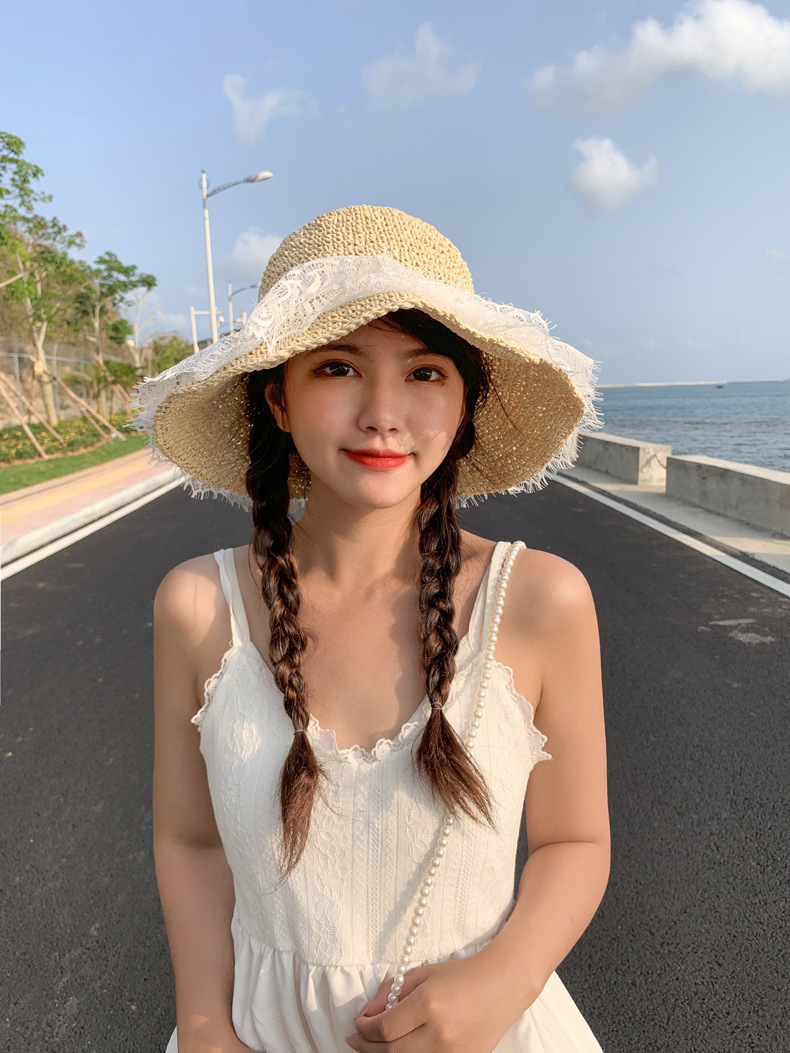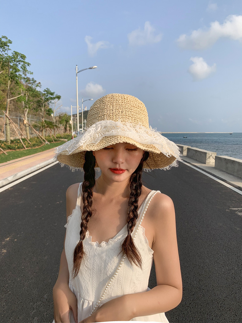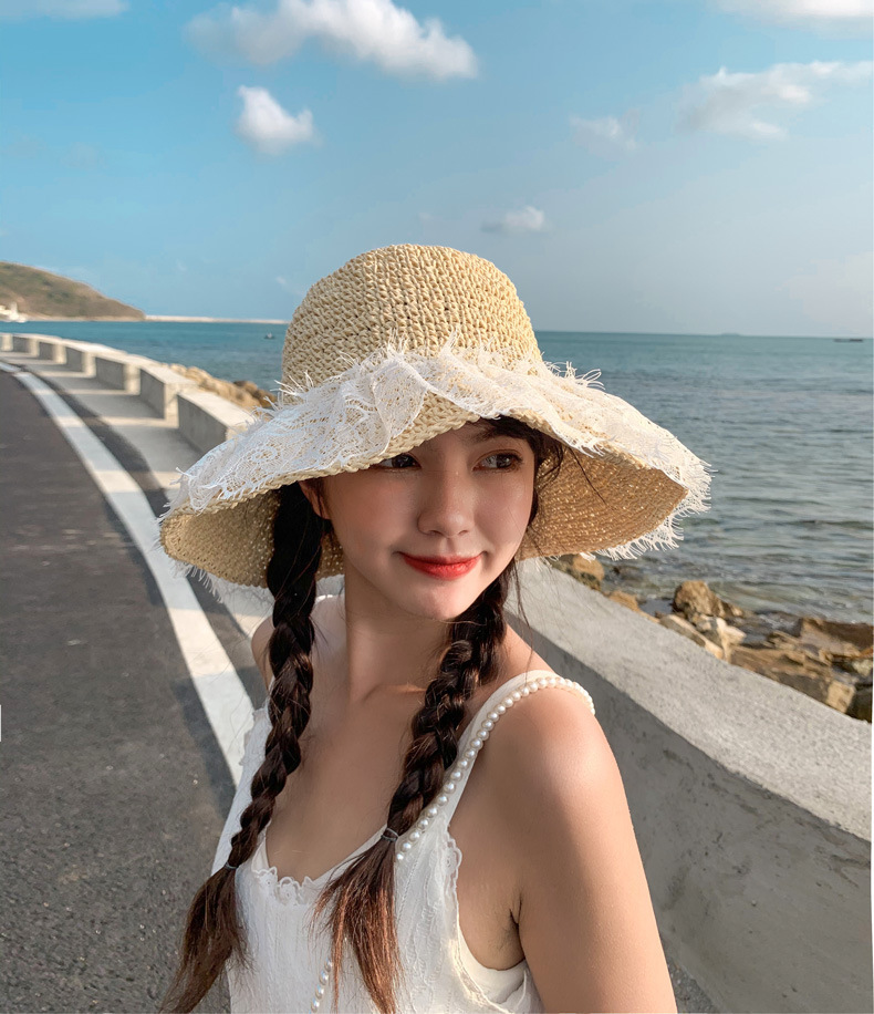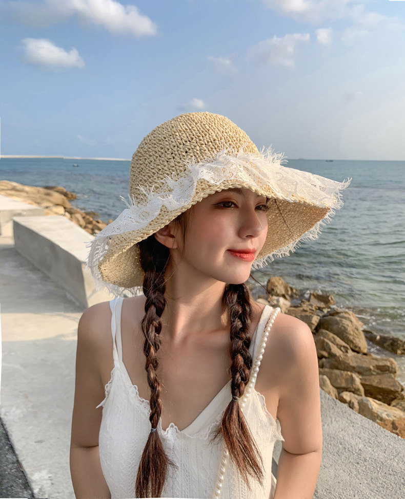 Yi Yi Wide Eaves 레이스 모자 여성 어부 모자 여름 가늘게 썬 스크린 비치 모자 여름스토어 가기