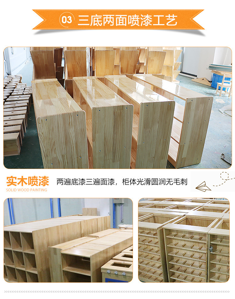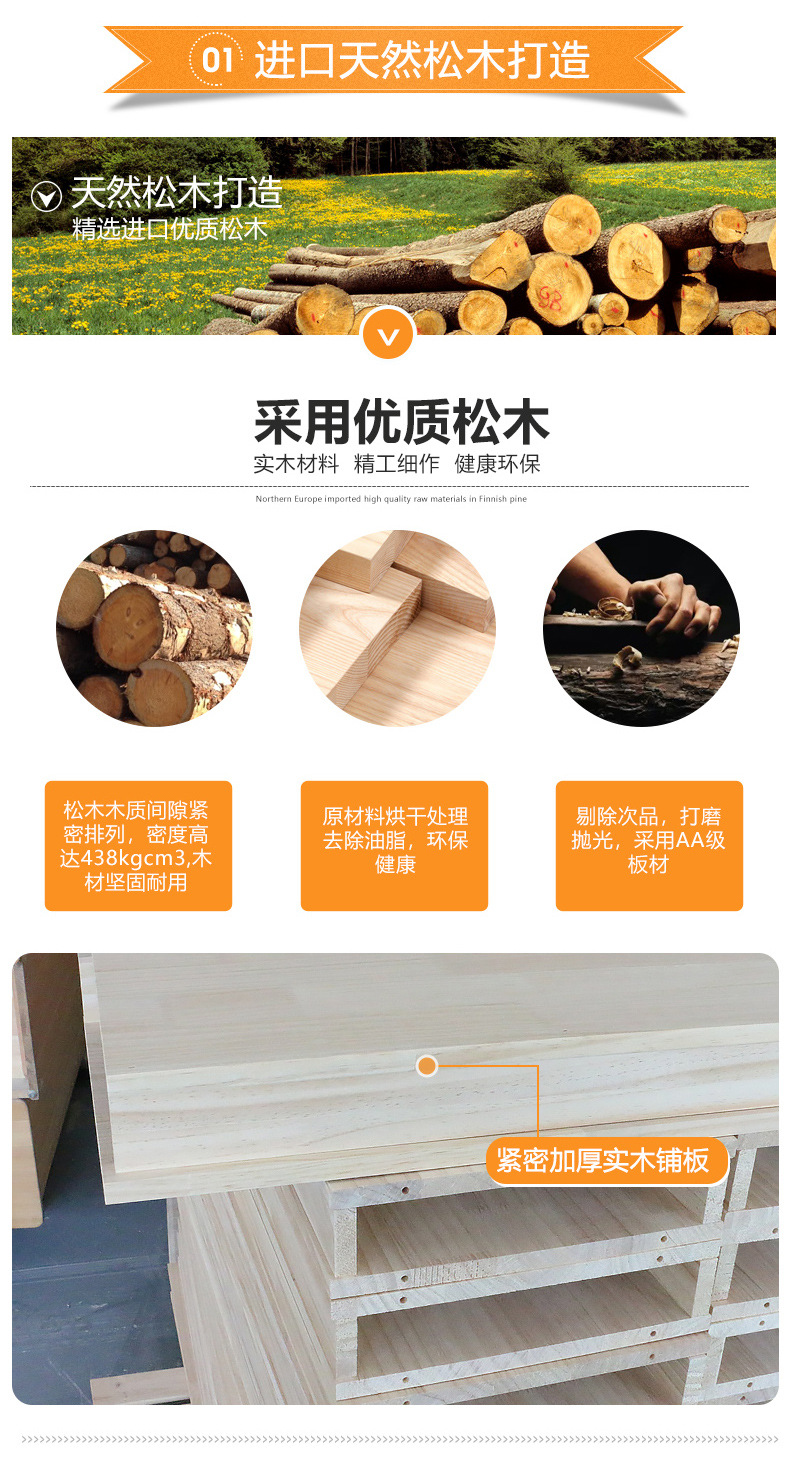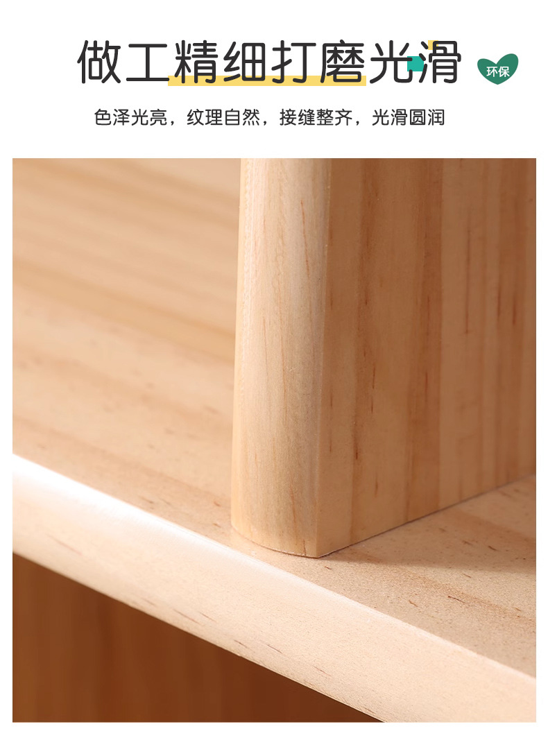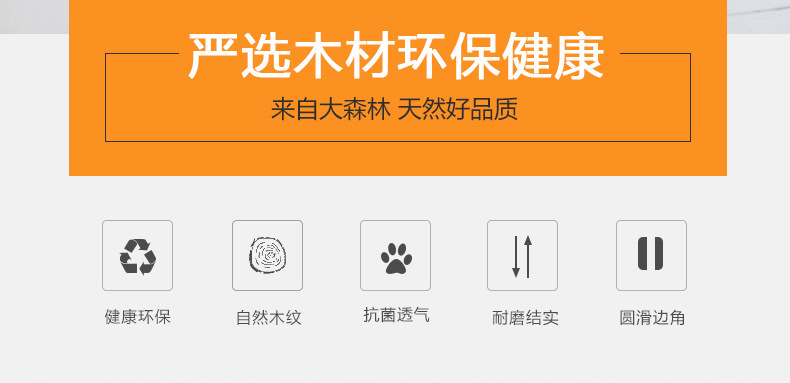 【产品工艺】选用优质进口橡胶木/松木原材料,表面均无黑疤,光滑自然,经躲到工序加工,优质净味漆,环保、安全、无异味,美观大方请放心使用。