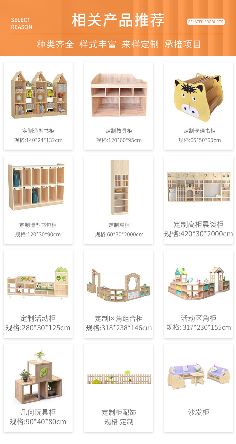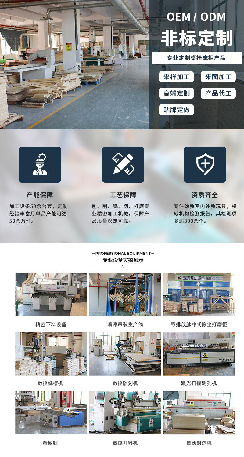 本公司专业生产幼儿园各类室内外家具及教玩具,如需其它配套设施可咨询客服。