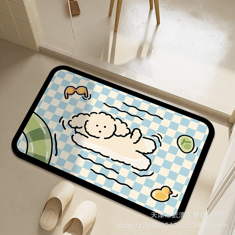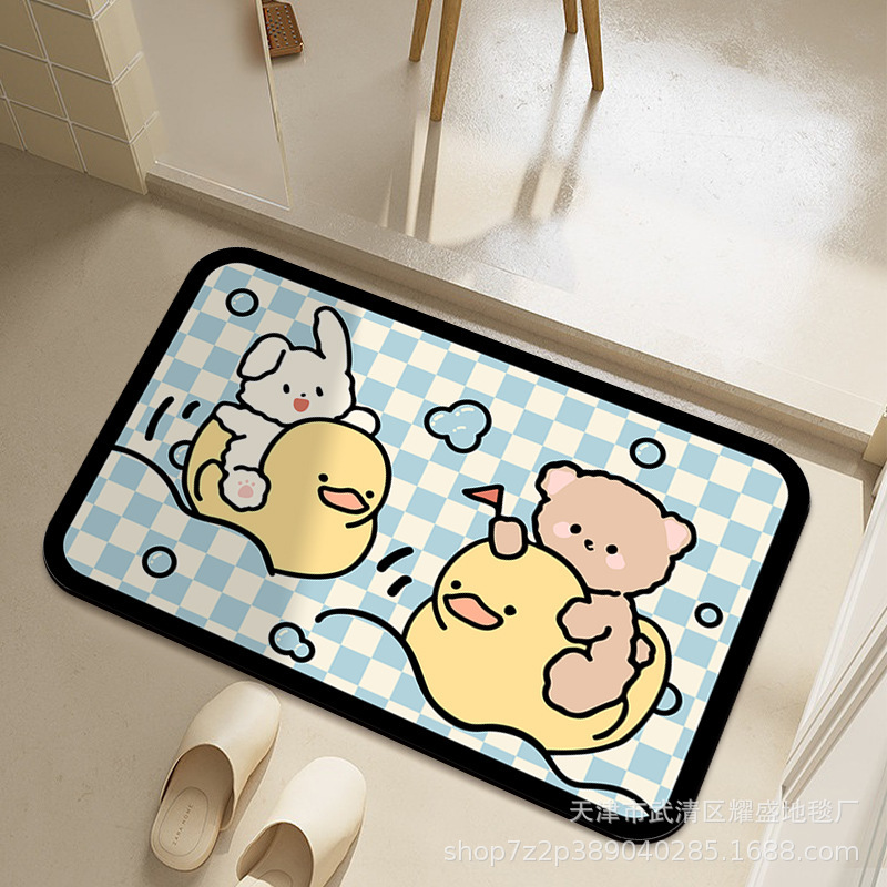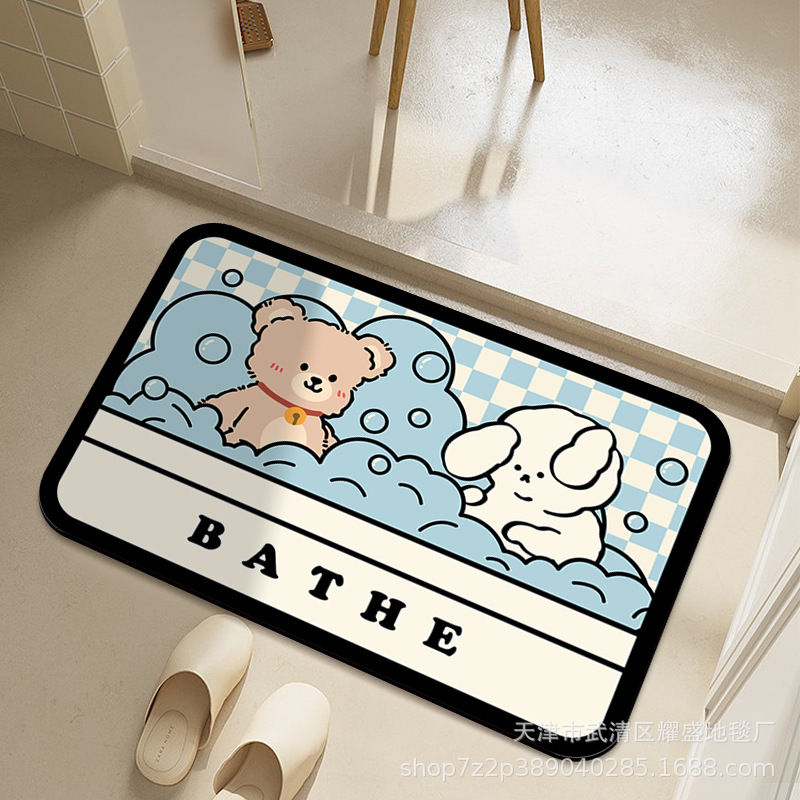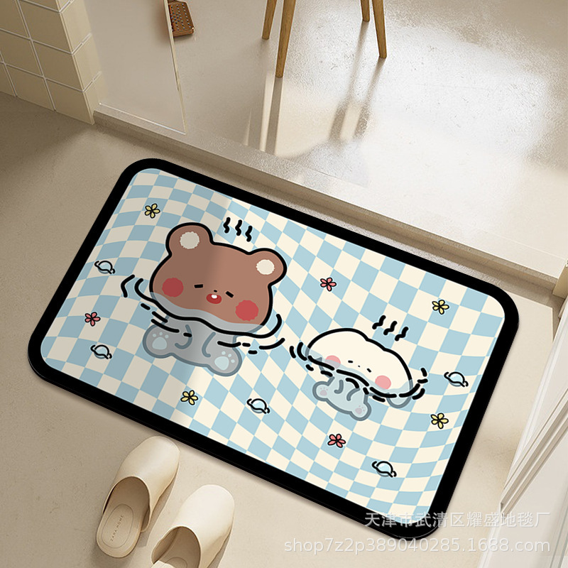 만화 부드러운 Diatom 진흙 바닥 매트 화장실 문 미끄럼 방지 매트 가정용 욕실 물 흡수성 머리카락을위한 빠른 건조 매트스토어 가기