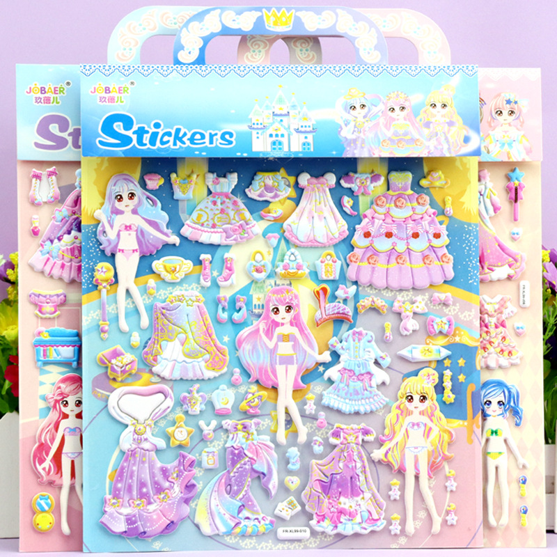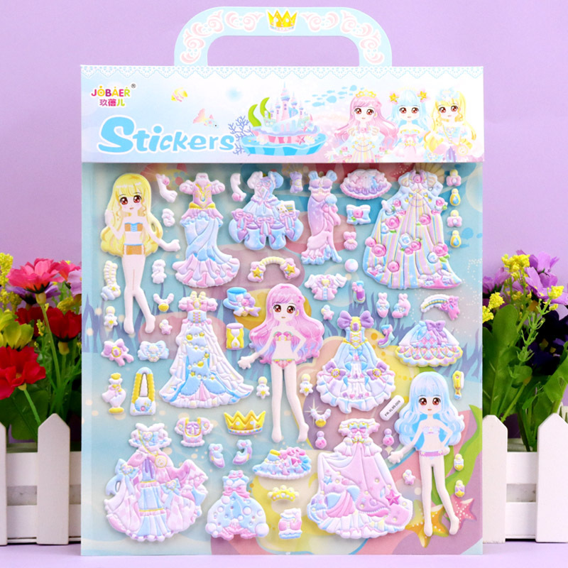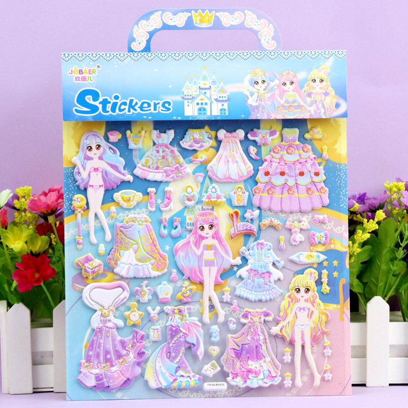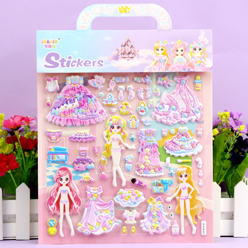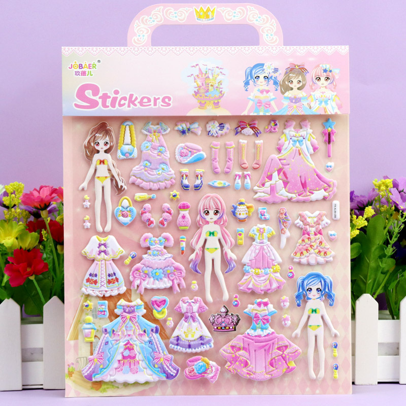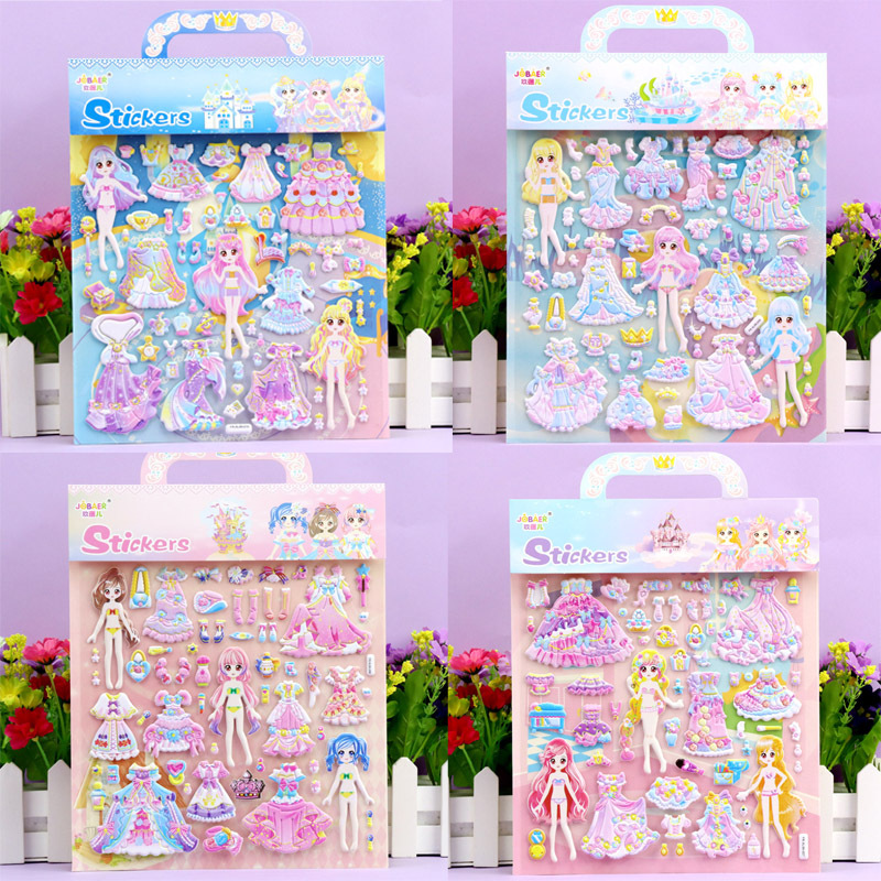 도매 큰 원피스 소녀 스티커 아기 공주 스티커 어린이 만화 거품 스티커 버블 드레싱 스티커