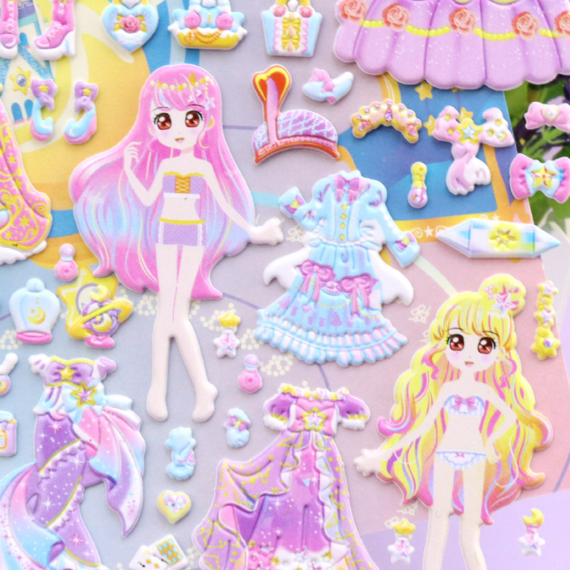 도매 큰 원피스 소녀 스티커 아기 공주 스티커 어린이 만화 거품 스티커 버블 드레싱 스티커스토어 가기
