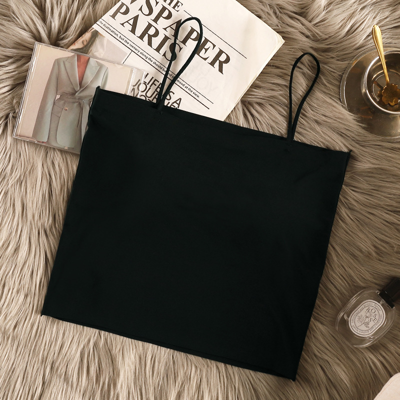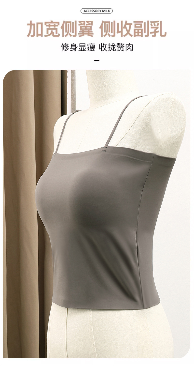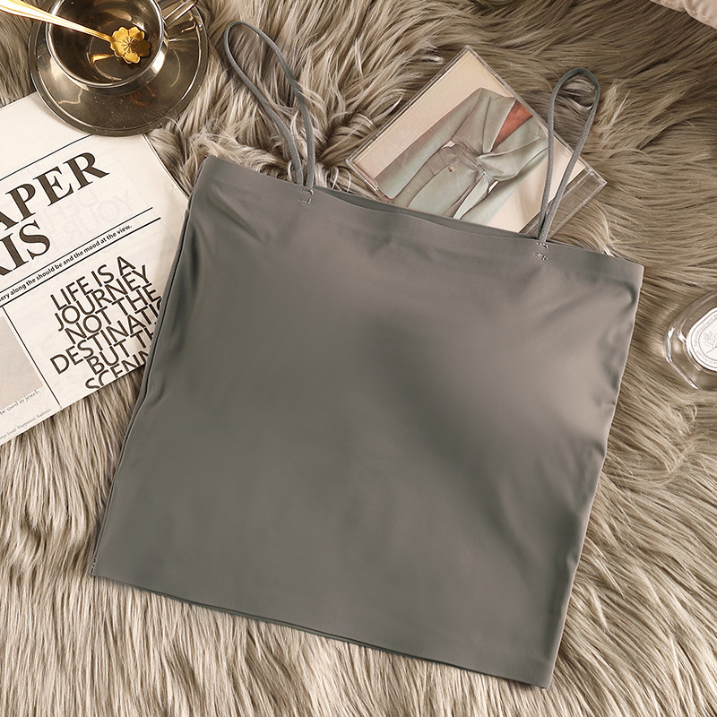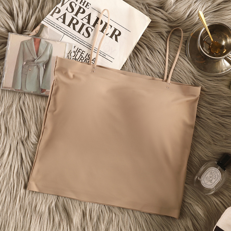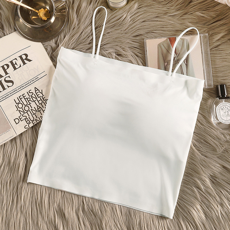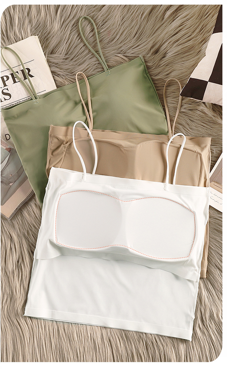 아이스 실크 아름다운 백 카미 솔 여자 조끼 가슴 패드 고정 컵 내부 착용 스피스 걸스 여름 스트랩리스 카미 솔 조끼 여자
