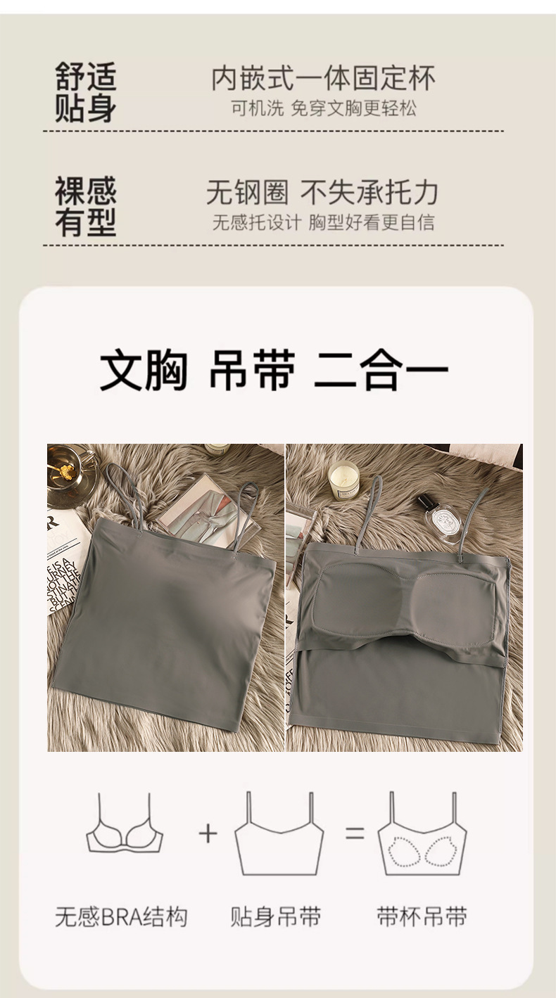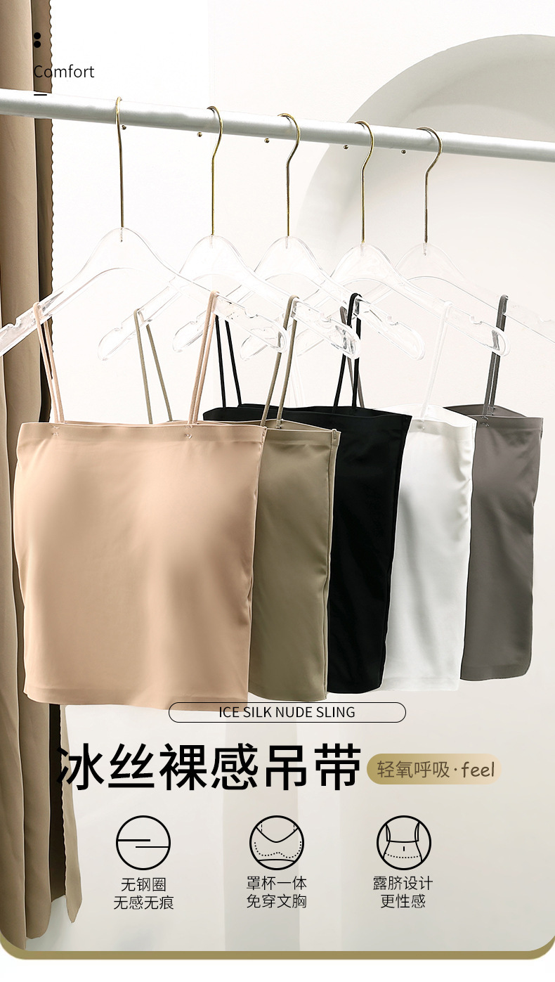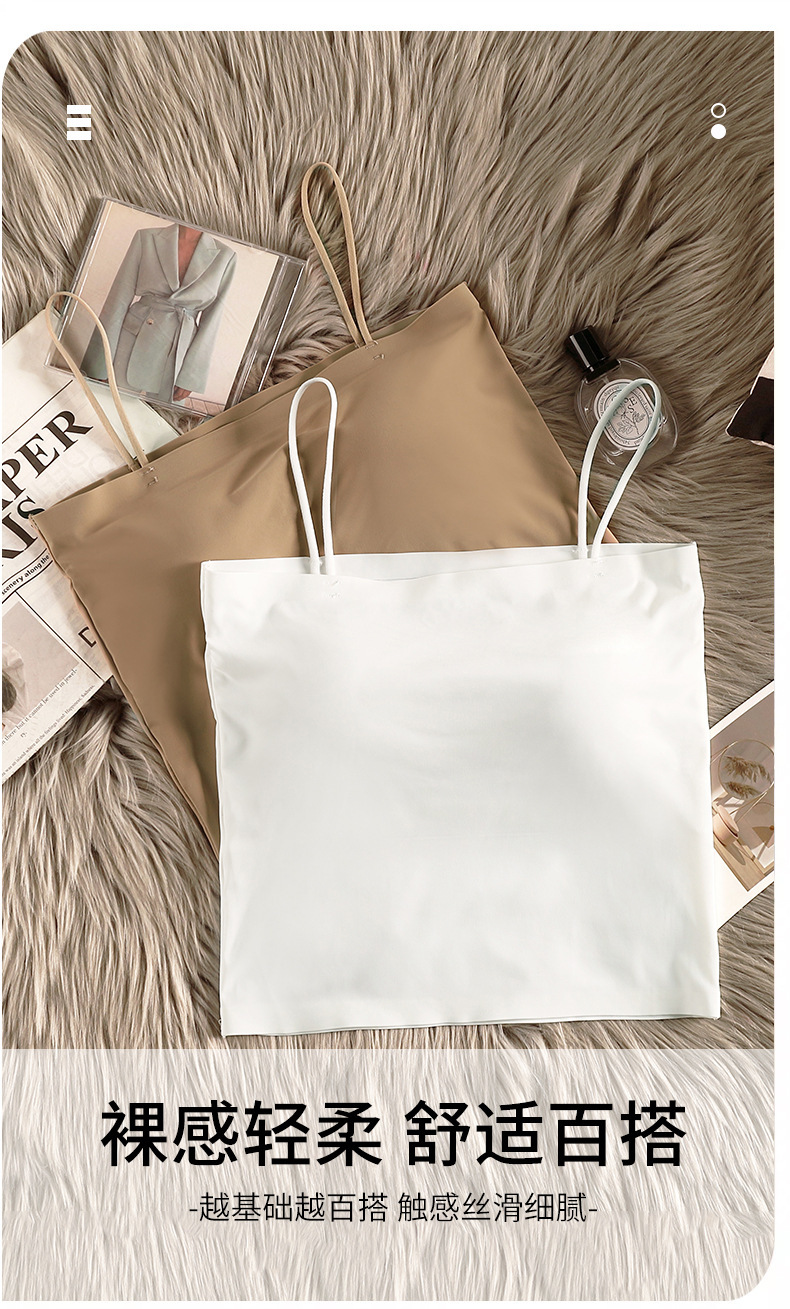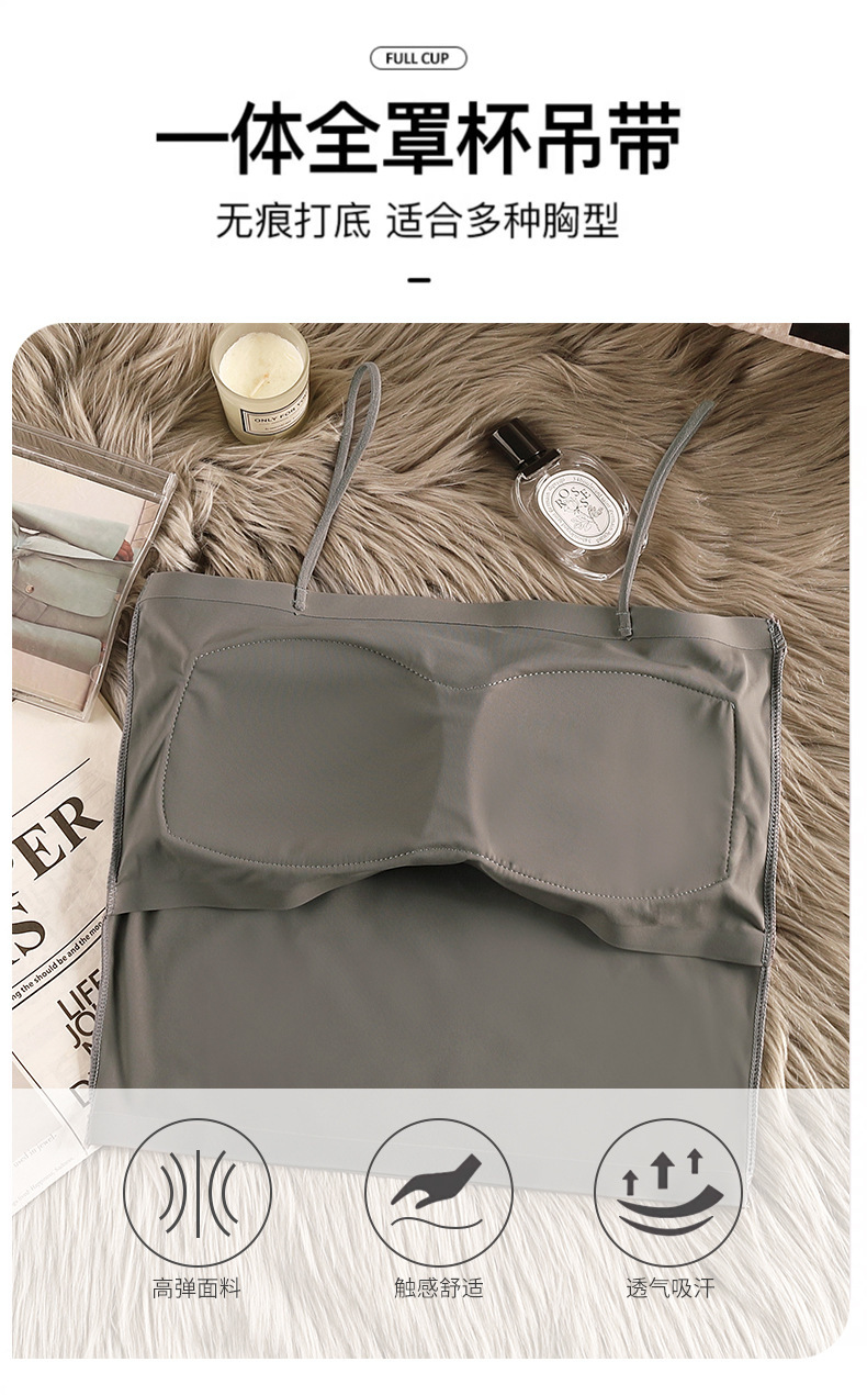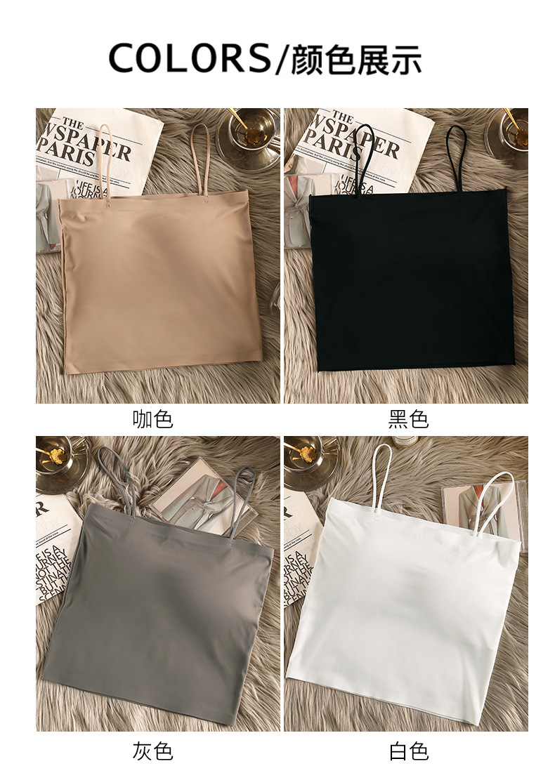 아이스 실크 아름다운 백 카미 솔 여자 조끼 가슴 패드 고정 컵 내부 착용 스피스 걸스 여름 스트랩리스 카미 솔 조끼 여자스토어 가기