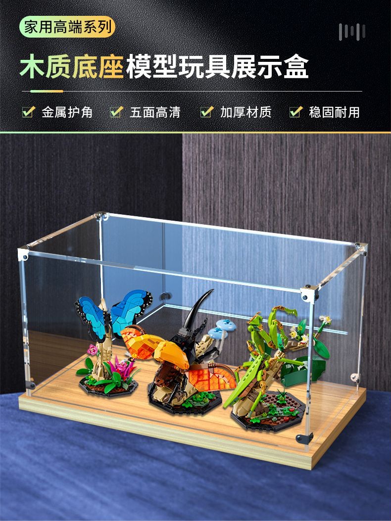 아크릴 먼지 커버 레고 창조적 인 IDEAS 시리즈 21342 곤충 시리즈 나무 바닥 디스플레이 캐비닛