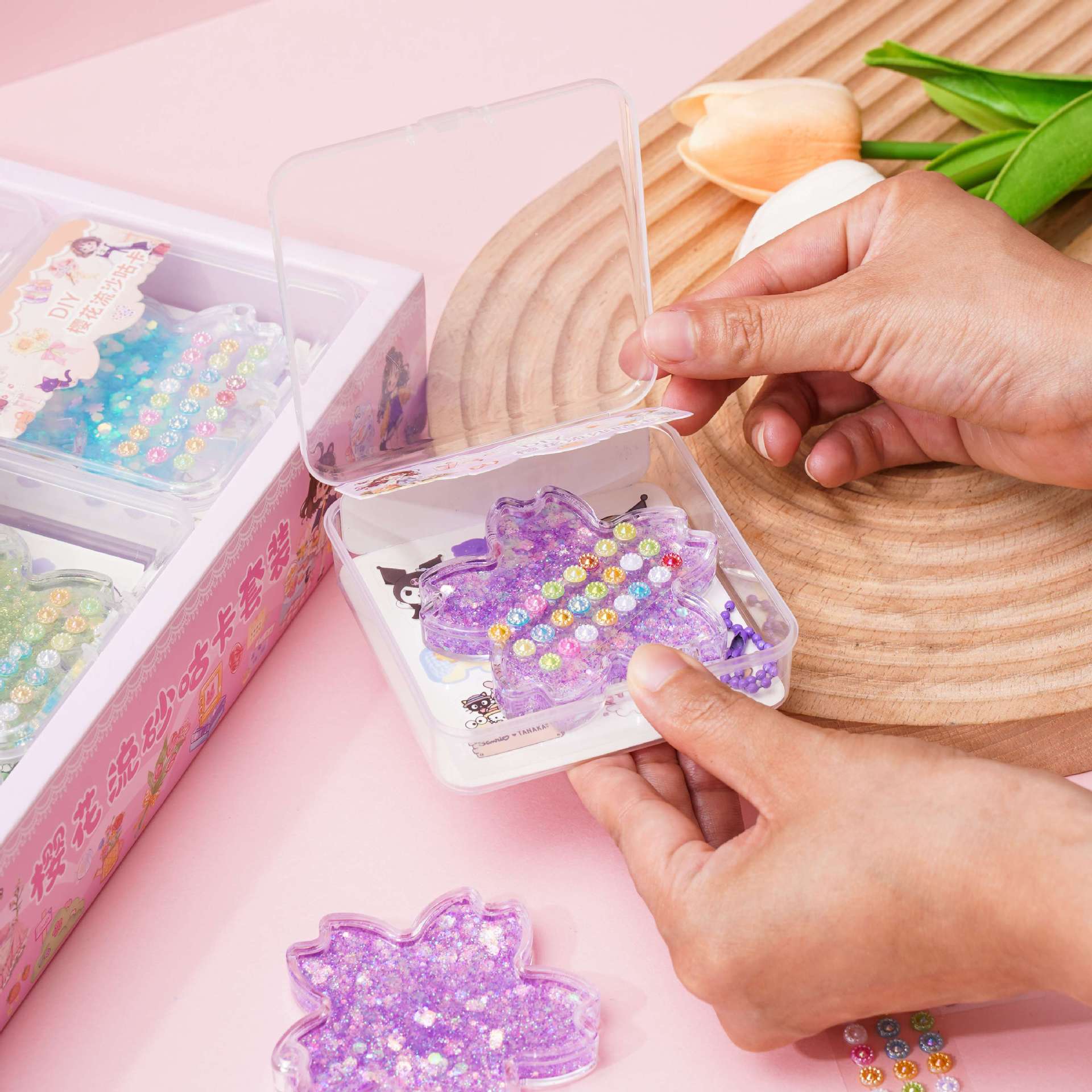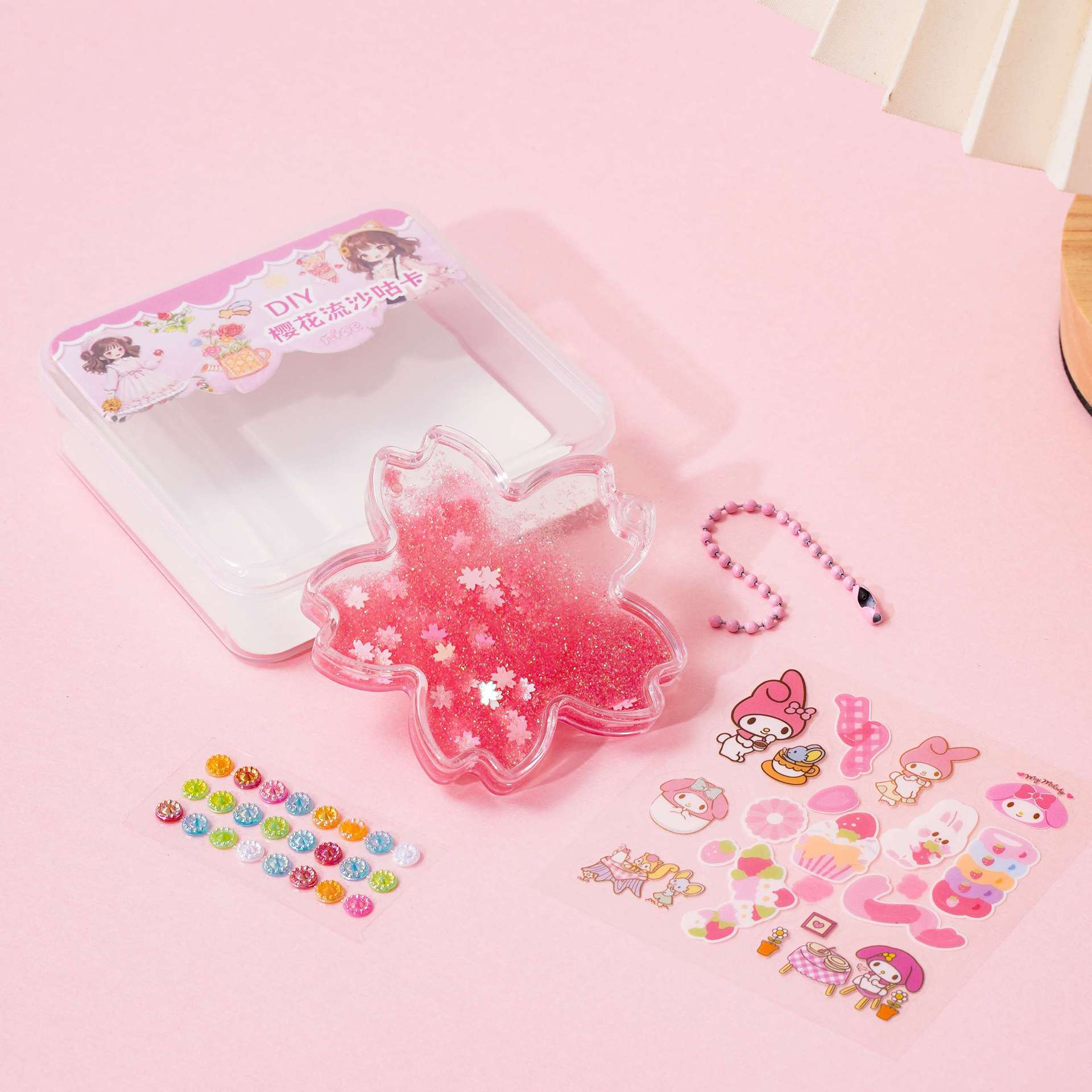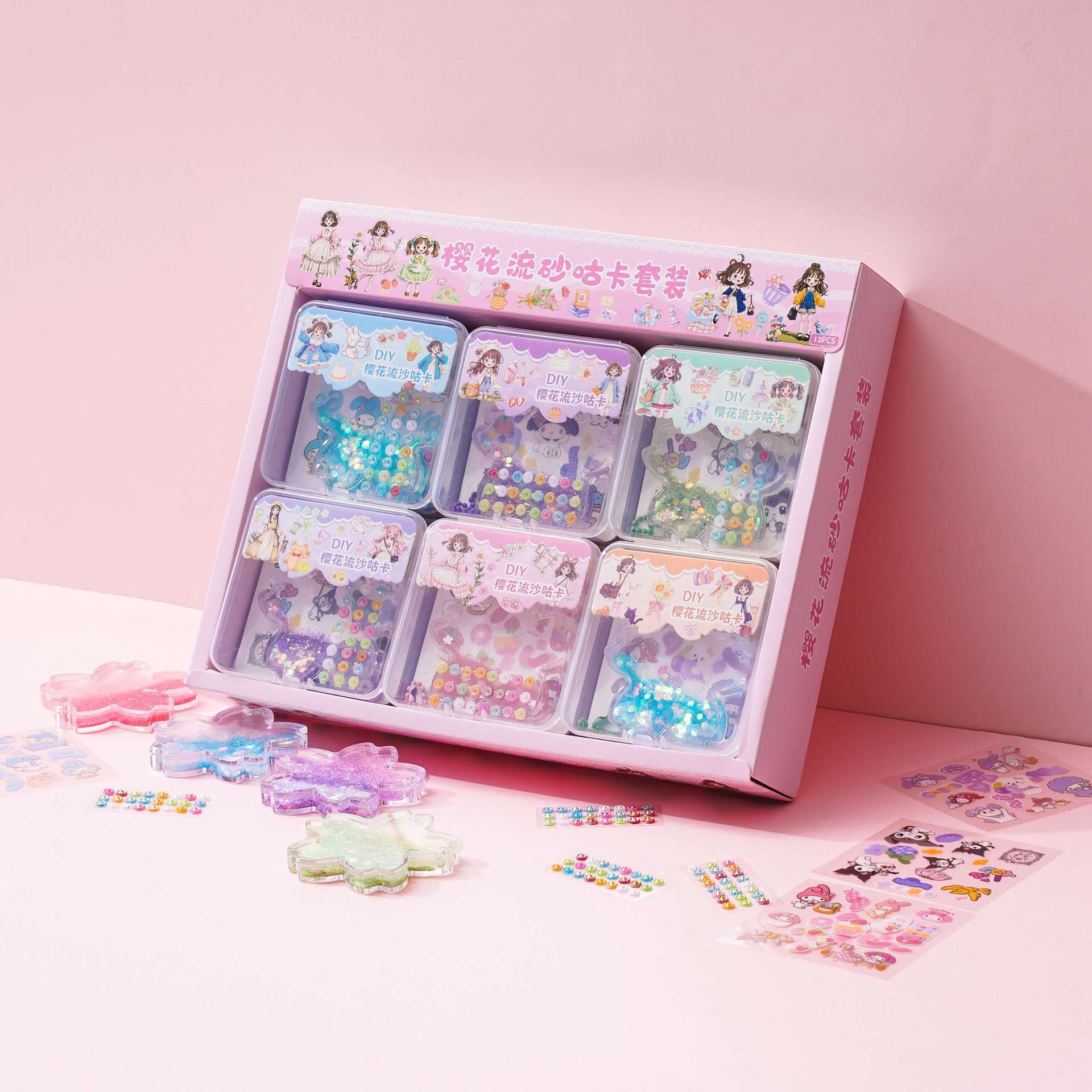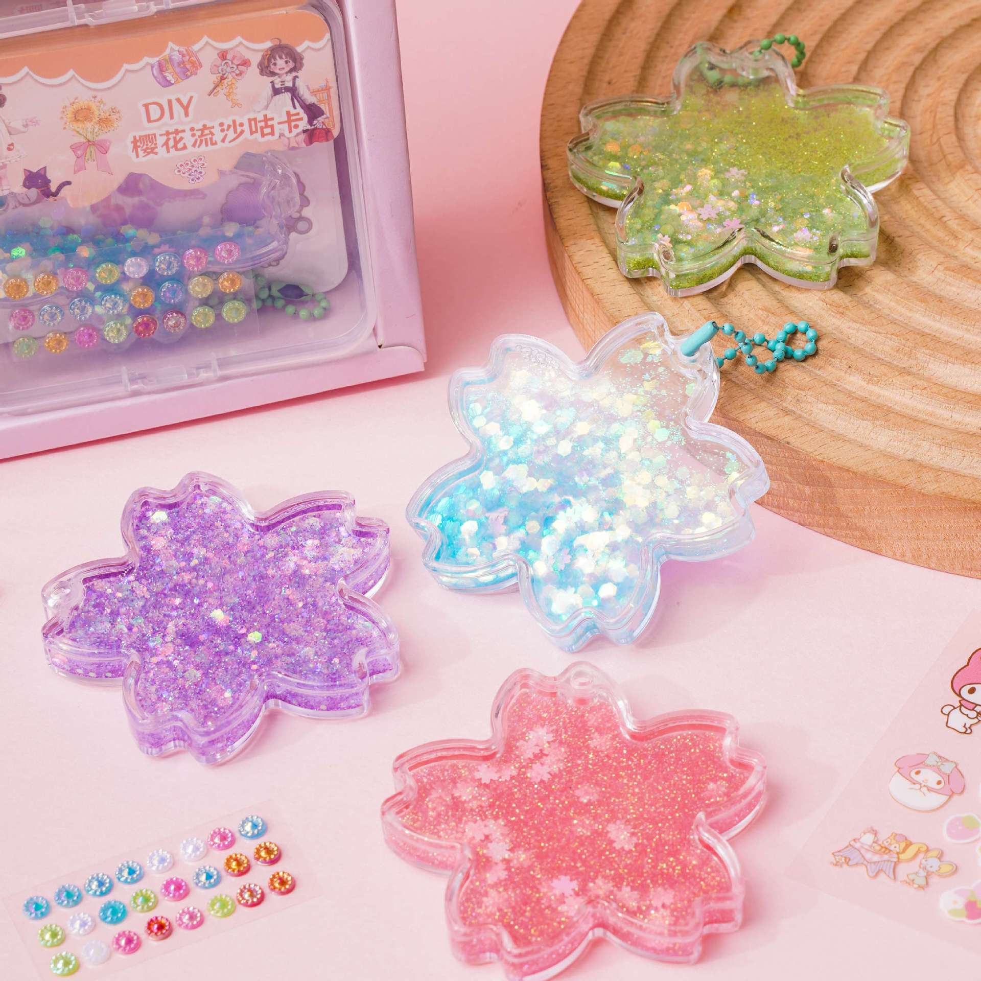벚꽃 quicksand goo 카드 벽돌 세트 DIY 수제 goo 카드 산리오 손 계정 스티커 다이아몬드 반짝이는 스티커 kulomi