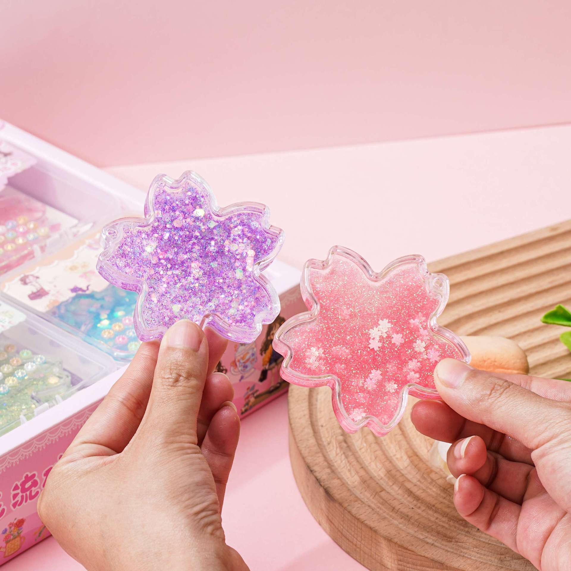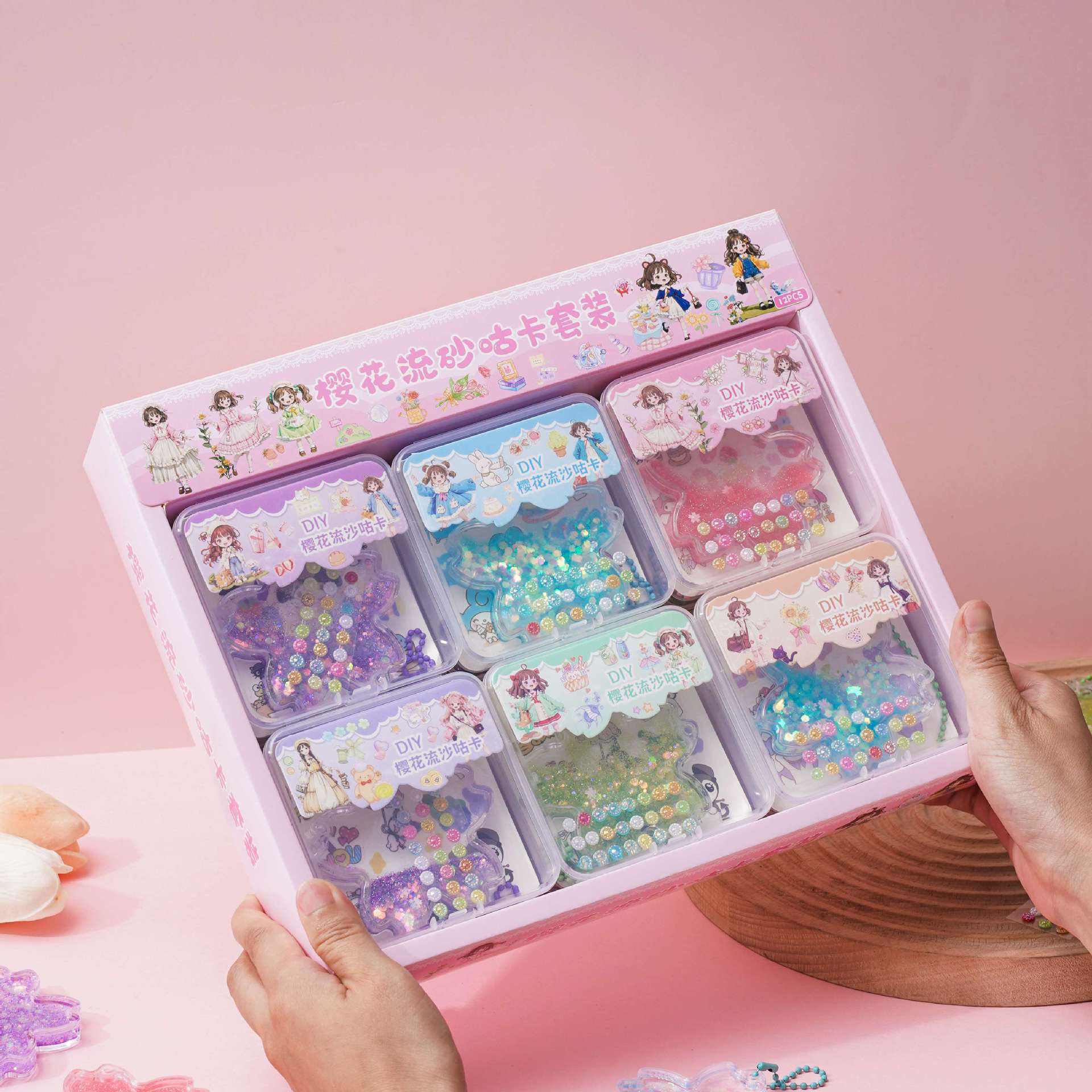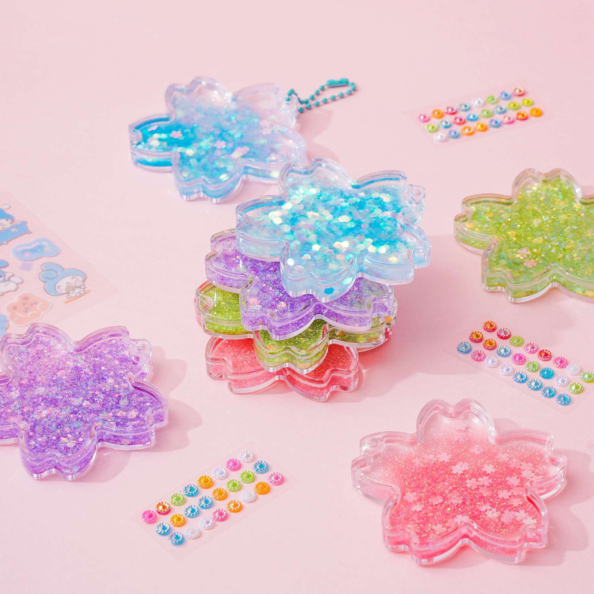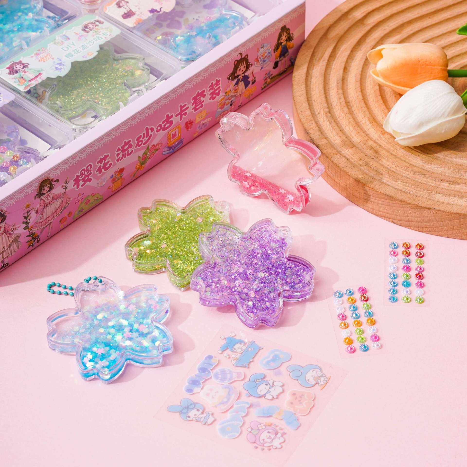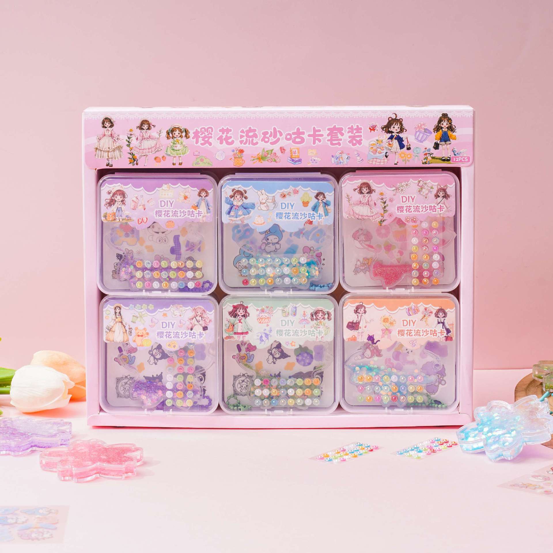 벚꽃 quicksand goo 카드 벽돌 세트 DIY 수제 goo 카드 산리오 손 계정 스티커 다이아몬드 반짝이는 스티커 kulomi