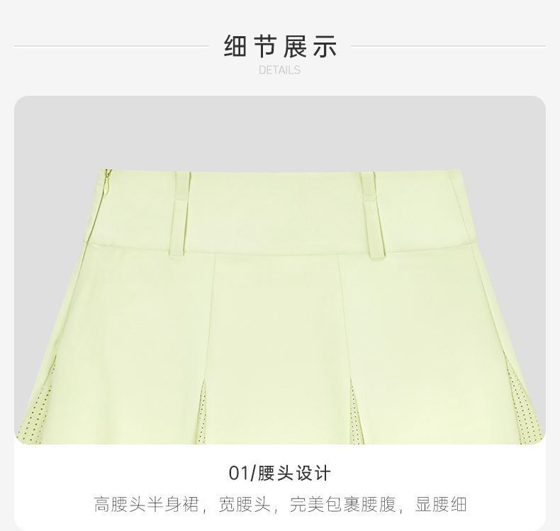 맞춤형 골프웨어, 4방향 신축성 있는 스포츠 스커트, 가볍고 시원한 하이웨이스트 스커트, 허리를 조여주는 노출 방지 스커트
