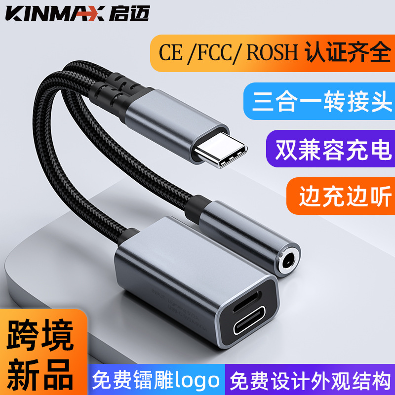 국경 간 typec 헤드폰 어댑터 - 3.5 오디오 Lightning+ 충전 변환기 다중 인터페이스 호환