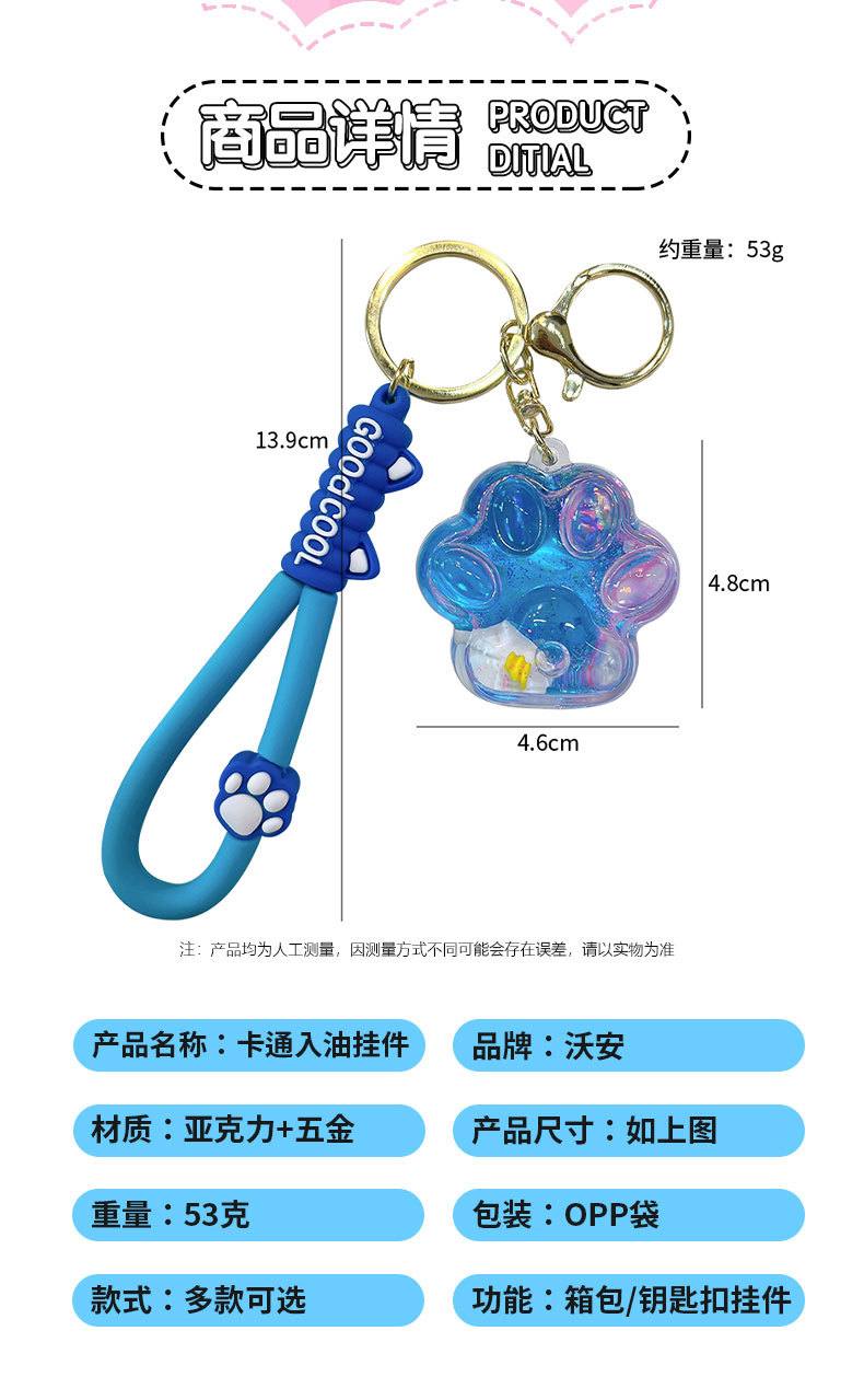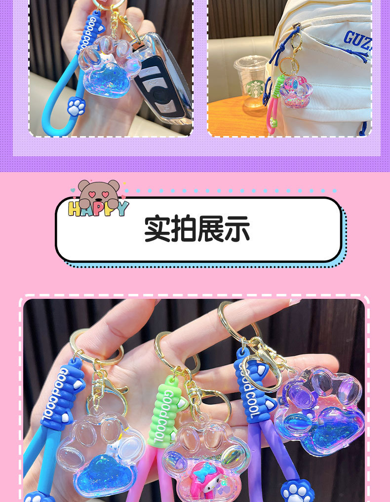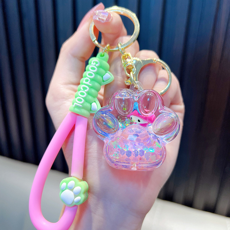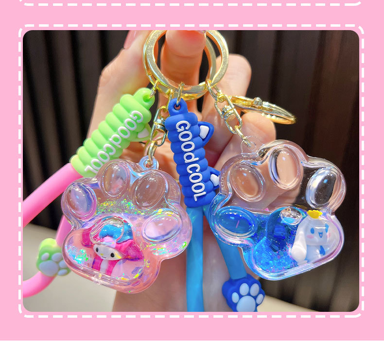 만화 오일 고양이 발톱 키 체인 플로팅 인형 액체 유사 병 아크릴 자동차 가방 펜던트 작은 선물스토어 가기