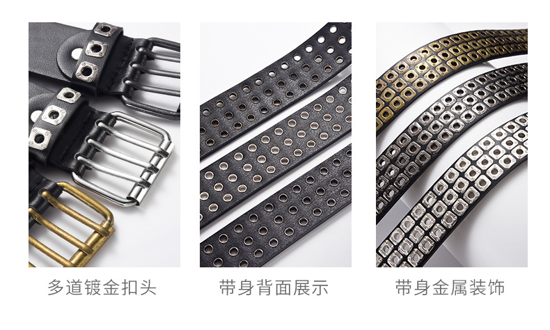 2024 새로운 남성과 여성 같은 스타일 Liu Ding 중공 에어 아이 펑크 스타일 PU 벨트 유럽과 미국 스타일의 성격 트렌드 벨트