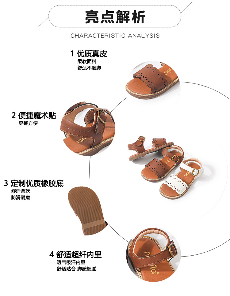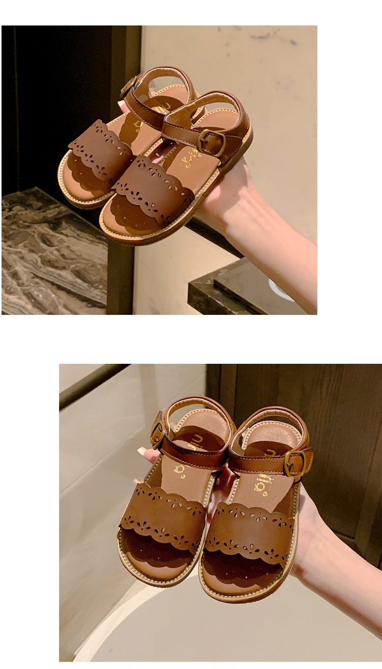 여자 신발 어린이 공주 신발 2024 새로운 여름 아기 정품 가죽 싱글 신발 소프트 솔 오픈 발가락 스트랩 샌들