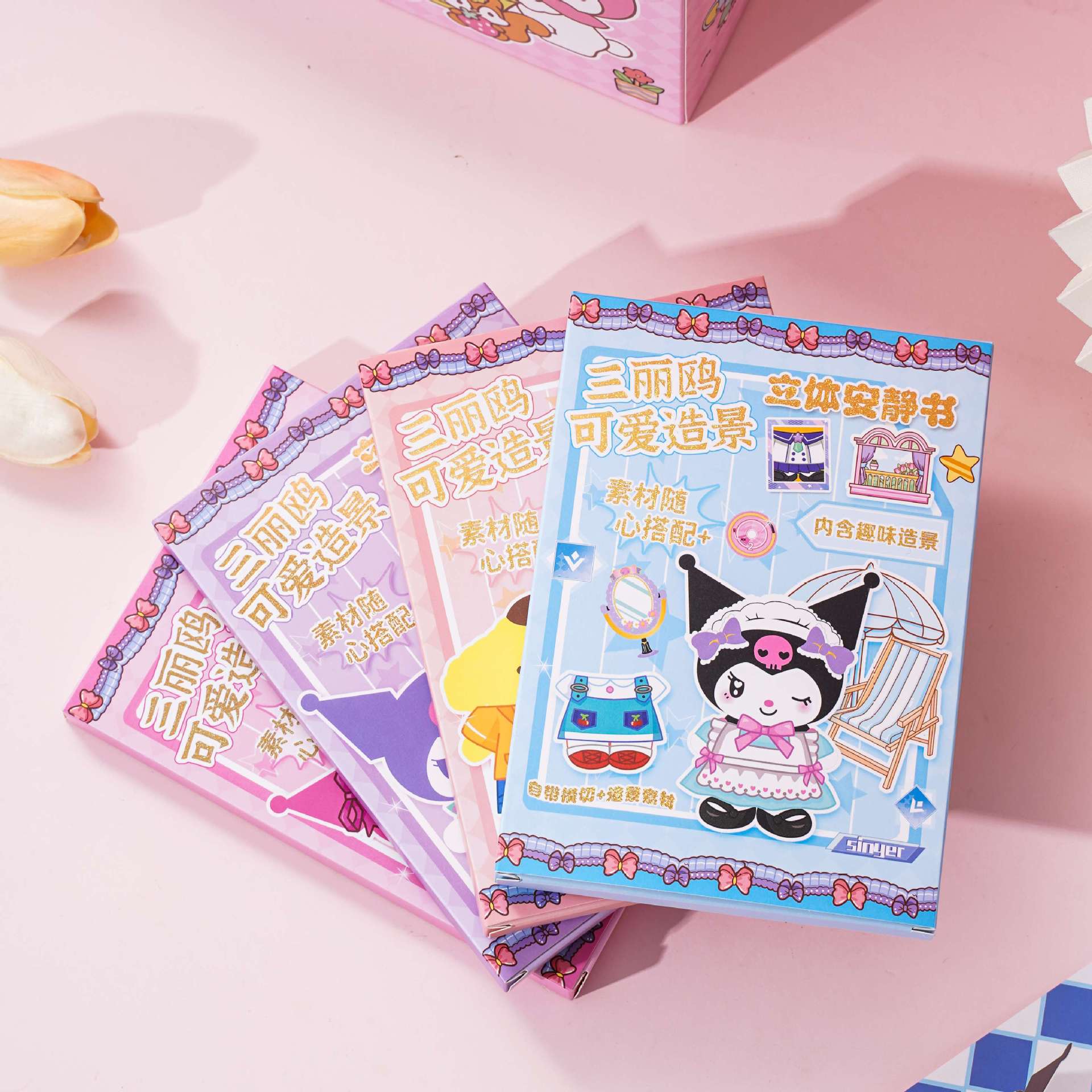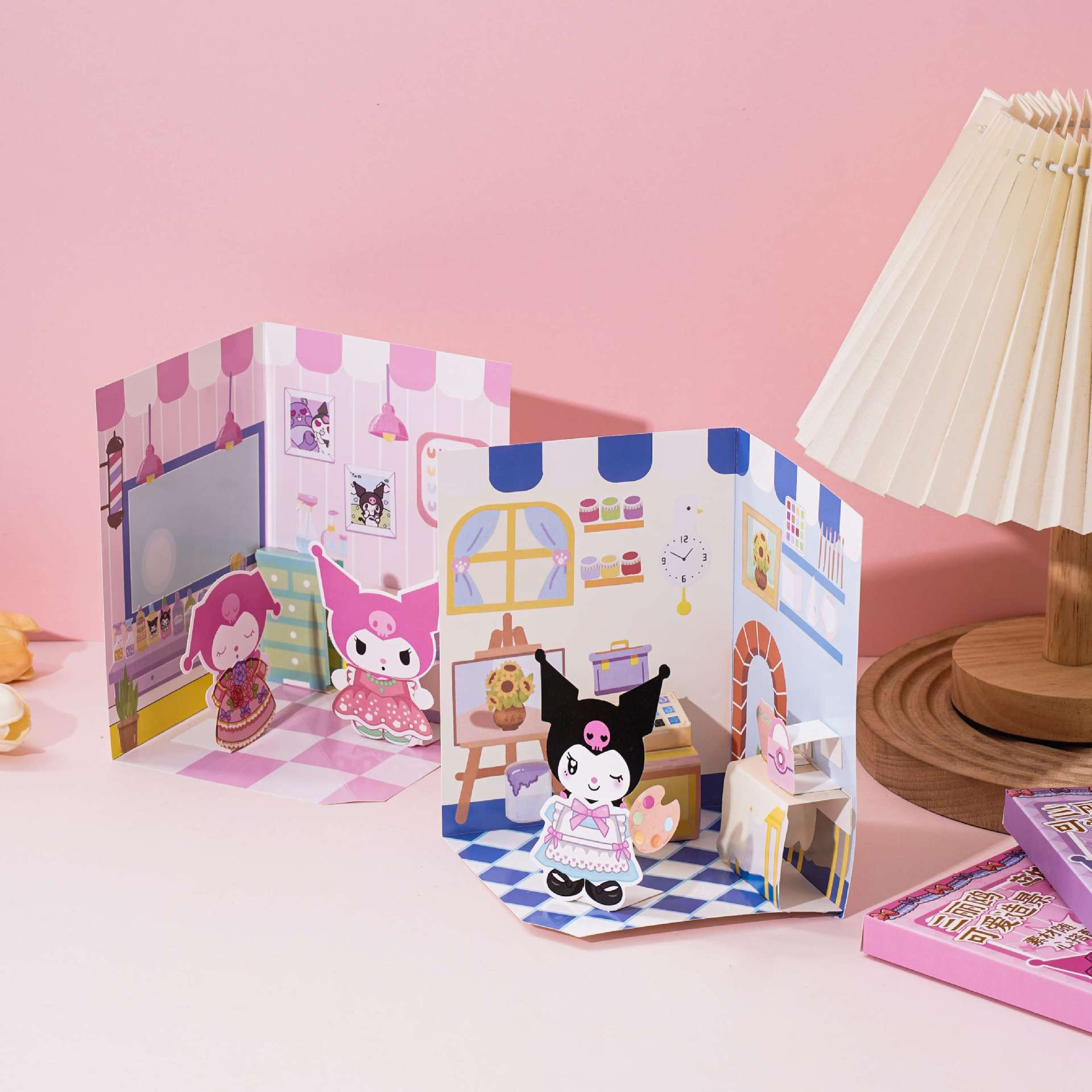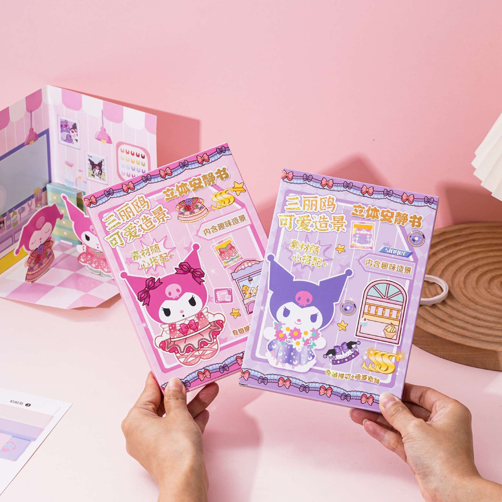 Sanrio Kulomi Meruti 조용한 책 스테레오 DIY 수제 해피 풍경 종이 인형 접합 스티커스토어 가기