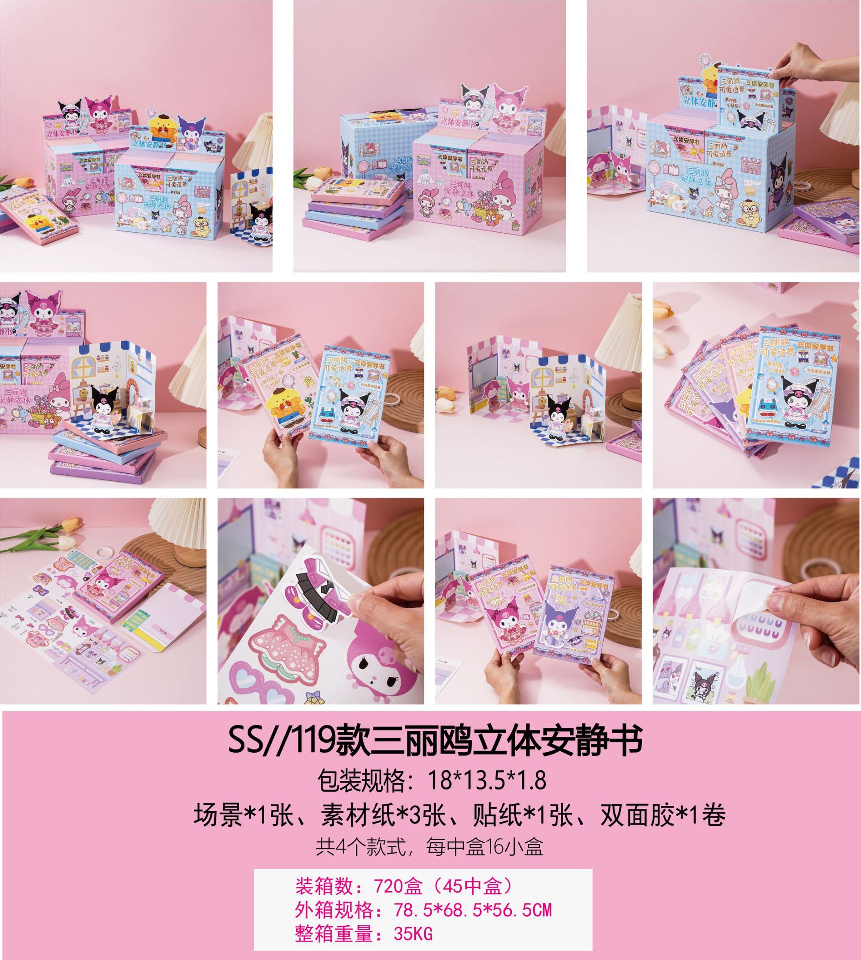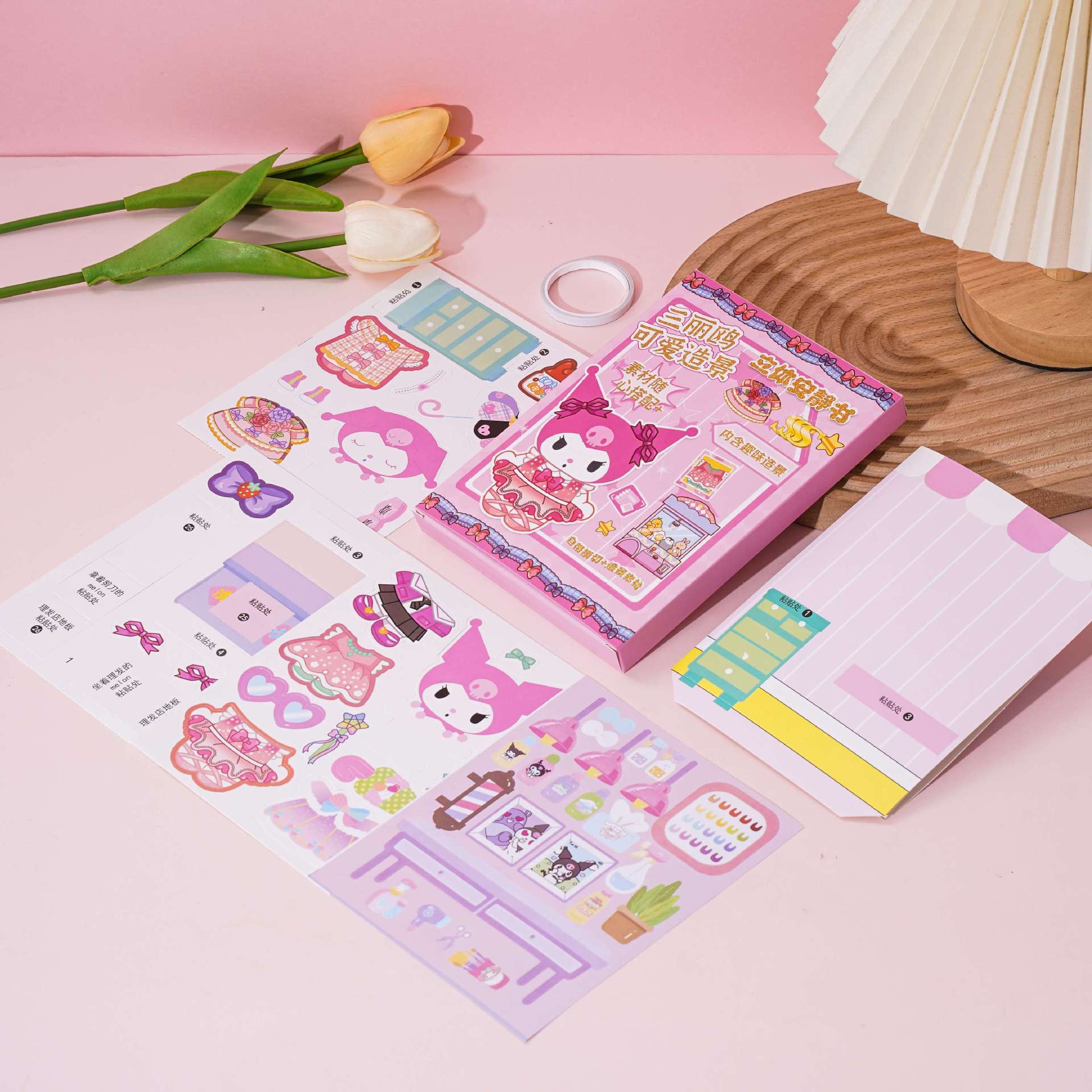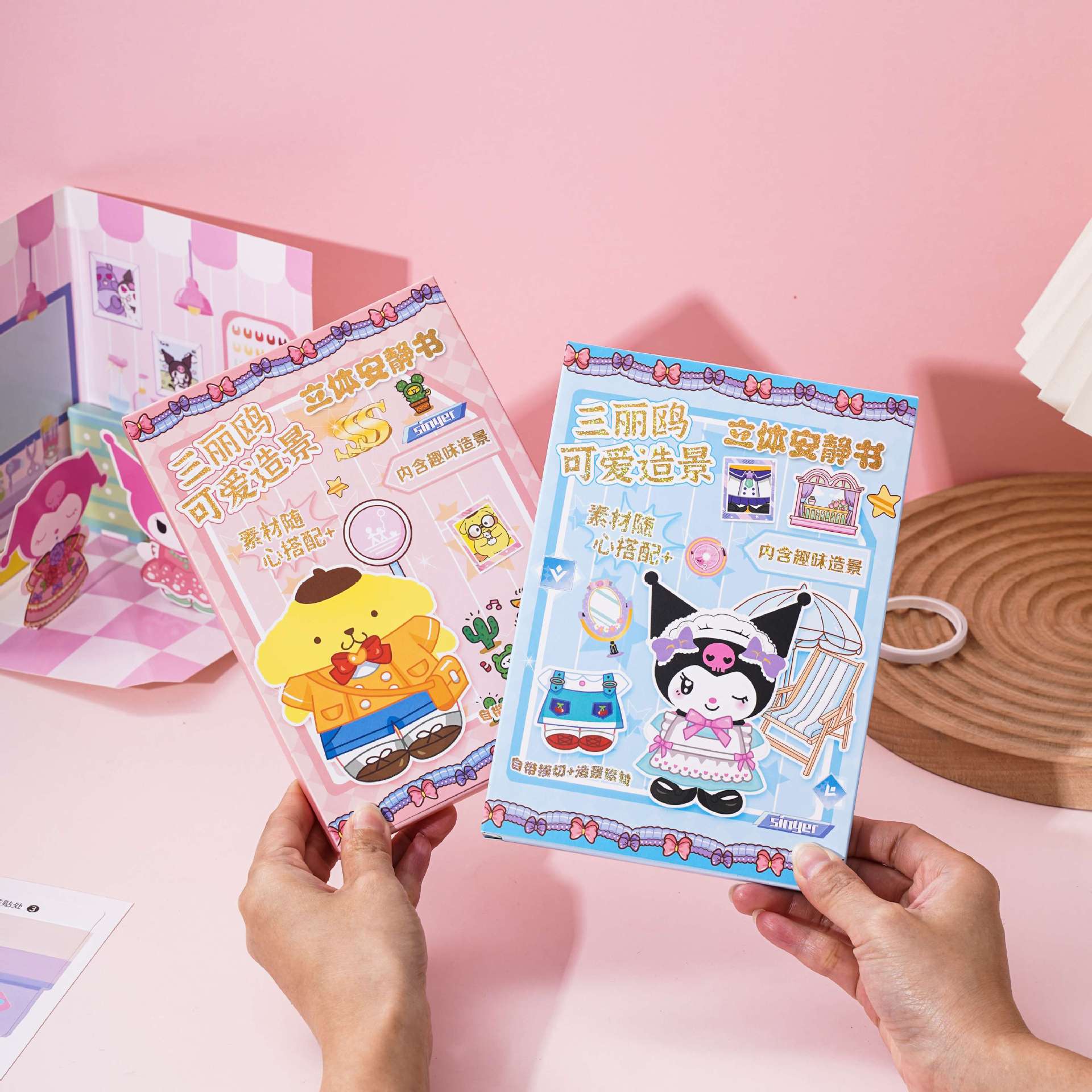 Sanrio Kulomi Meruti 조용한 책 스테레오 DIY 수제 해피 풍경 종이 인형 접합 스티커스토어 가기