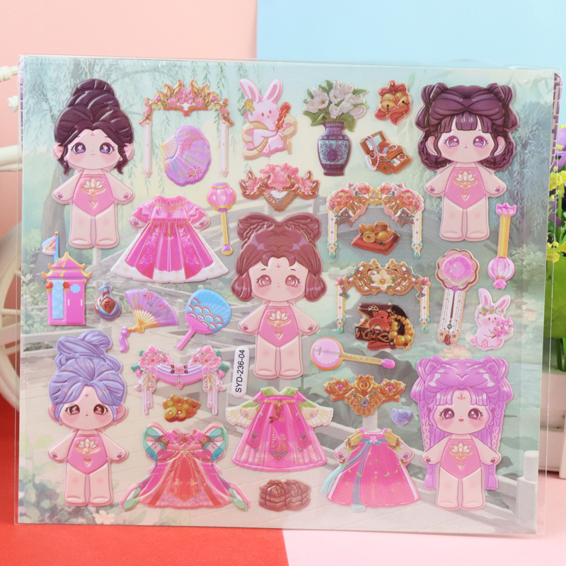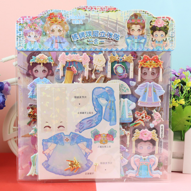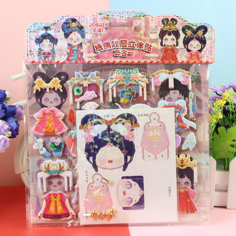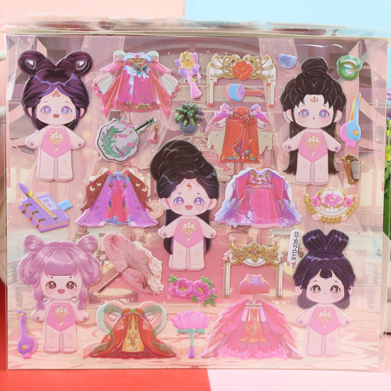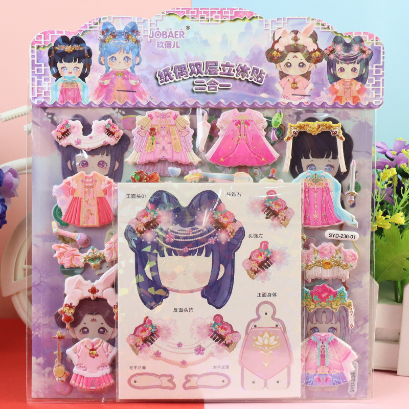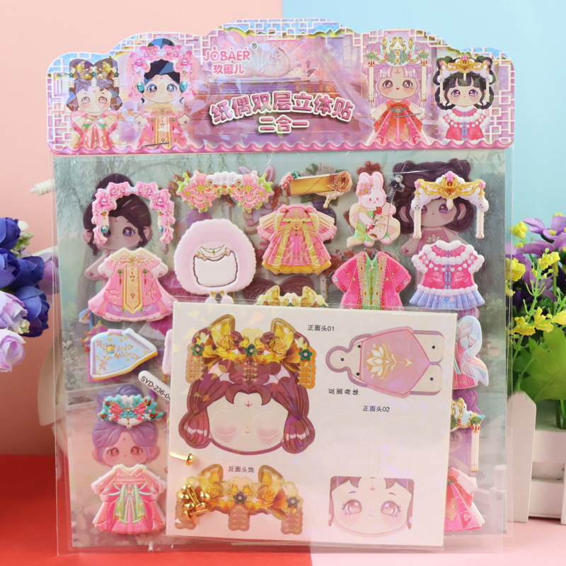 어린이 만화 3 차원 드레싱 더블 레이어 골동품 소녀의 거품 스티커 종이 인형 오르간 책 조용한 책 2 대 1