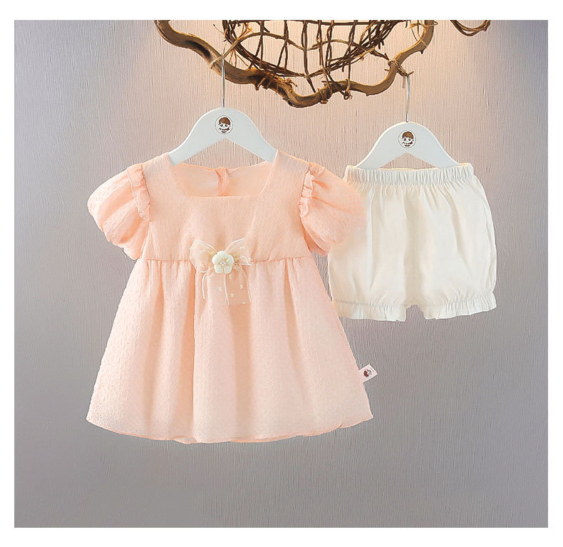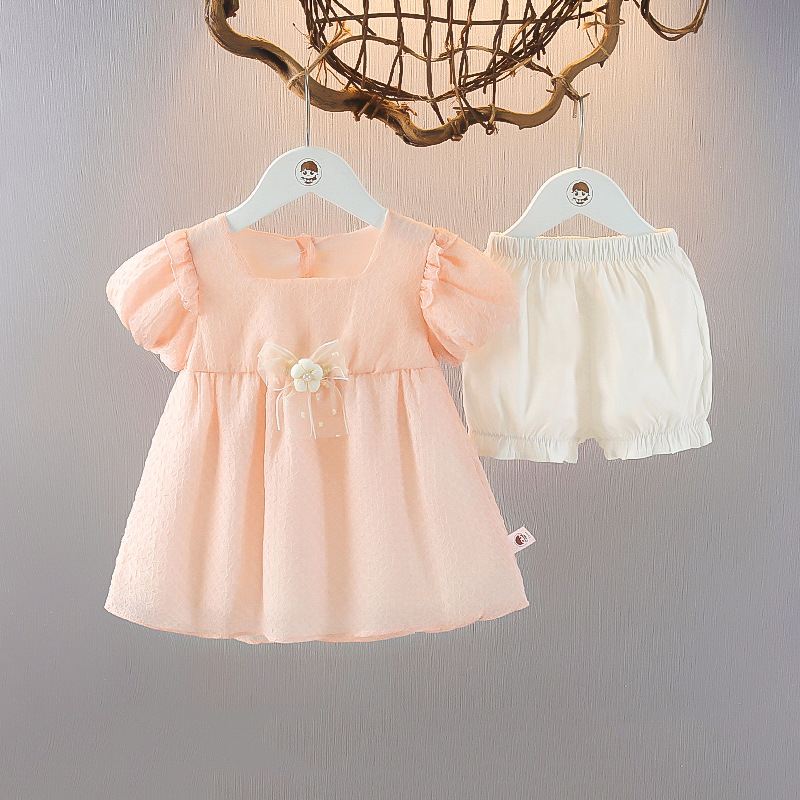 여자 반팔 한국식 원피스 세트 1-3 여름 신식 아기 소녀의 유행 원피스 여름 어린이 투피스 세트