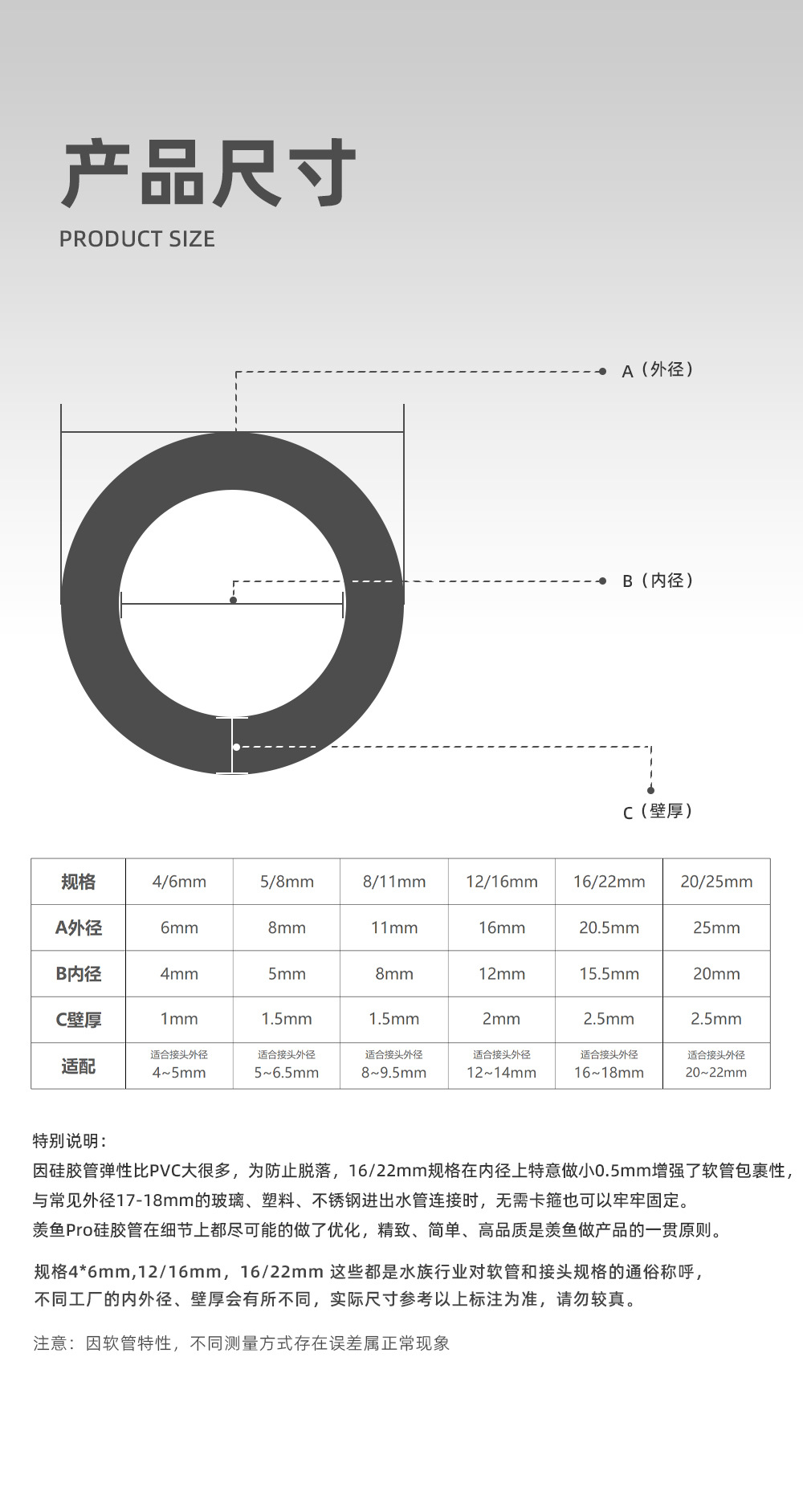 Xianyu AQUAPRO 코팅 실리콘 수도관 어항 가스 파이프 젖빛 필터 배럴 워터 펌프 호스 입구 및 출구 파이프