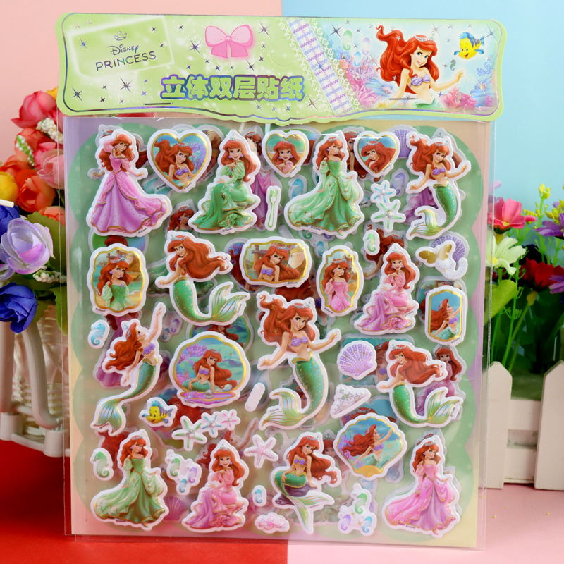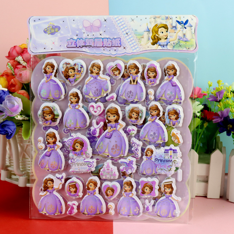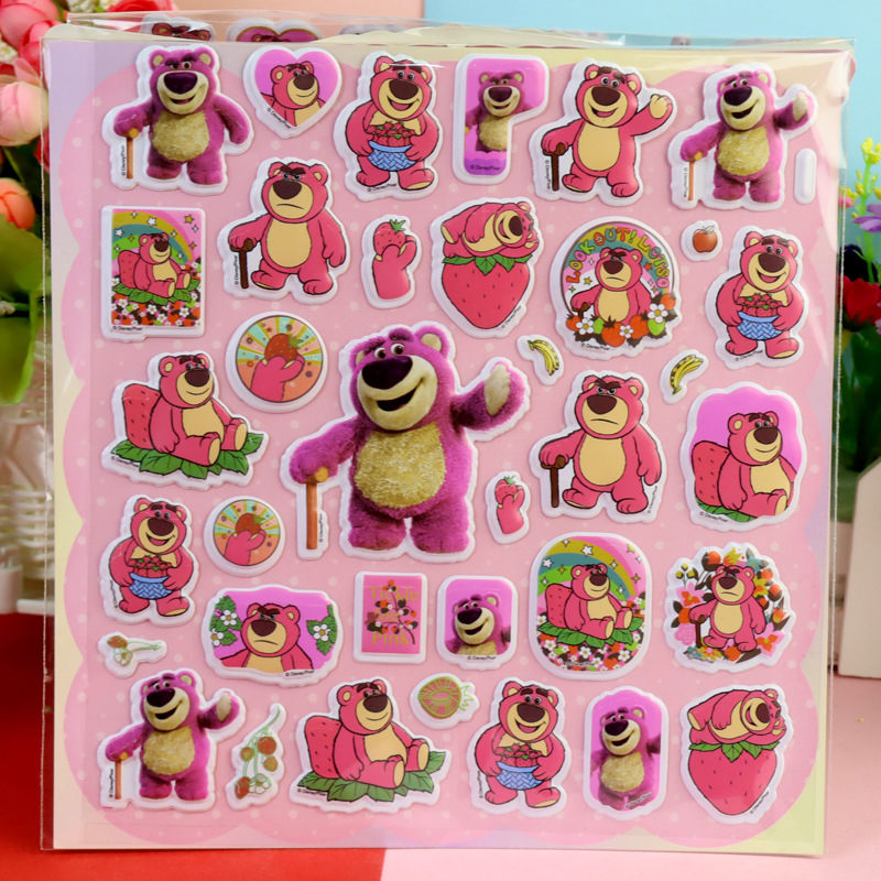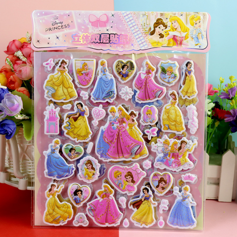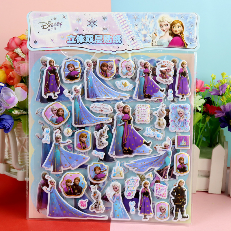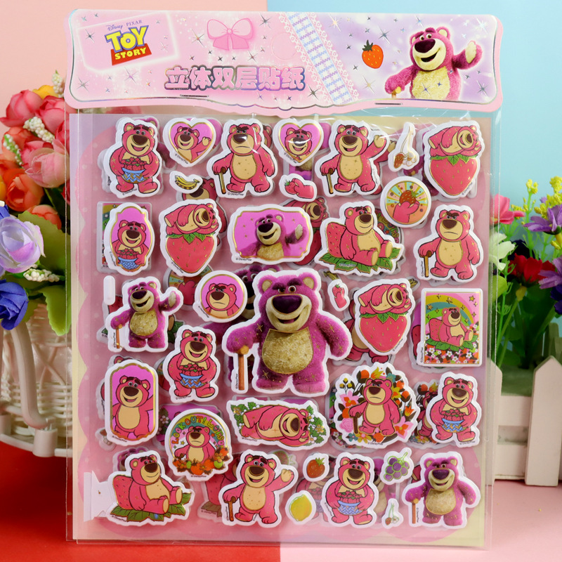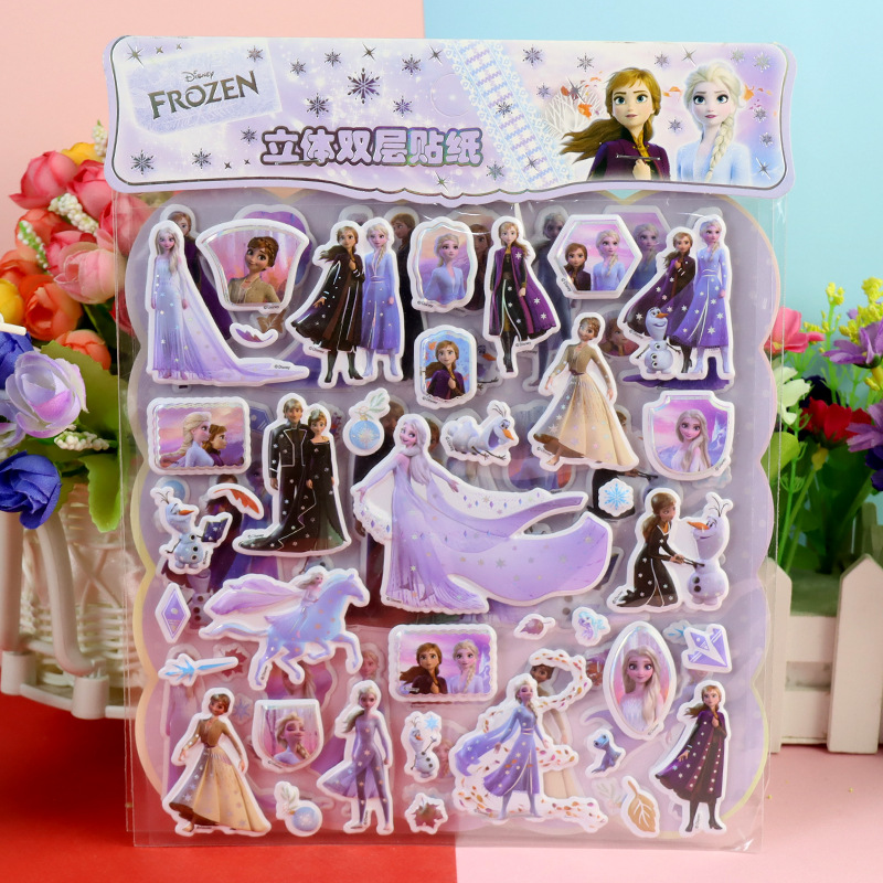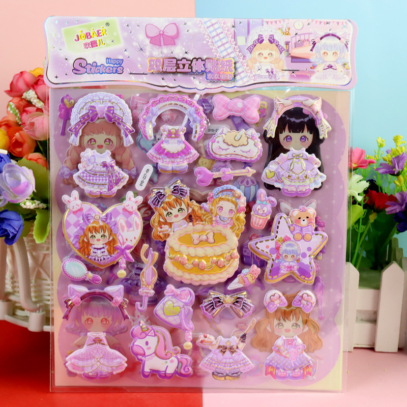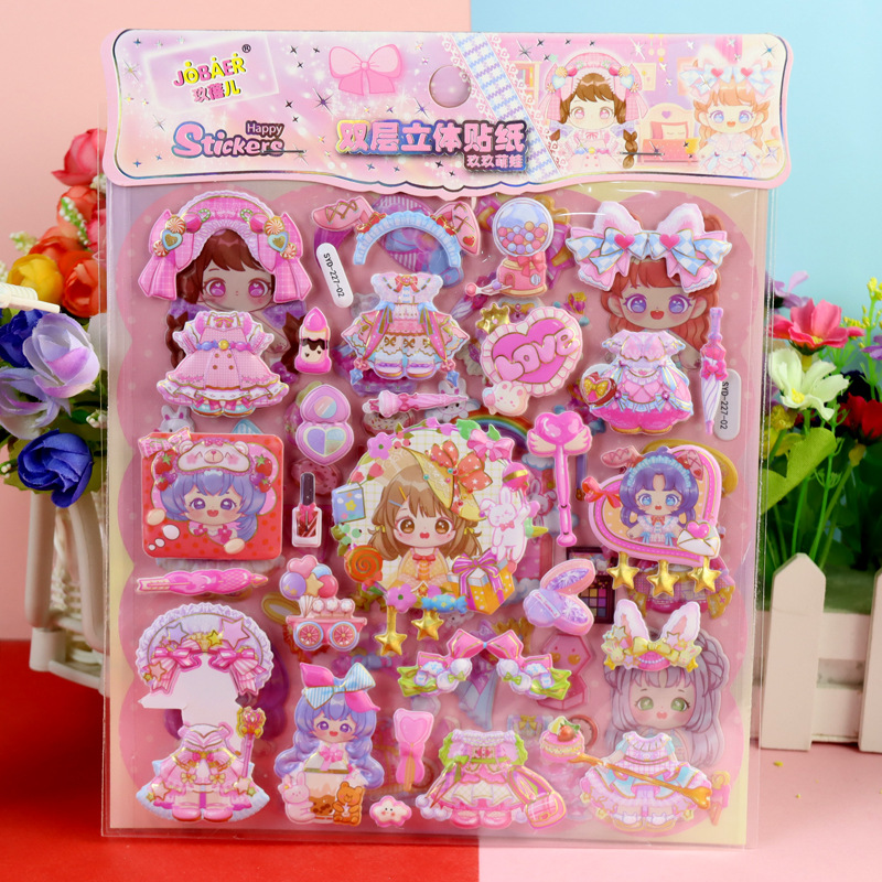 Jiujiu Moe 아기 원피스 업 스티커 소녀 만화 3 차원 거품 스티커 더블 레이어 어린이 냉동 공주 딸기 곰스토어 가기
